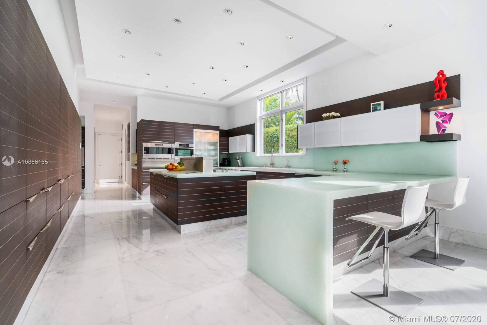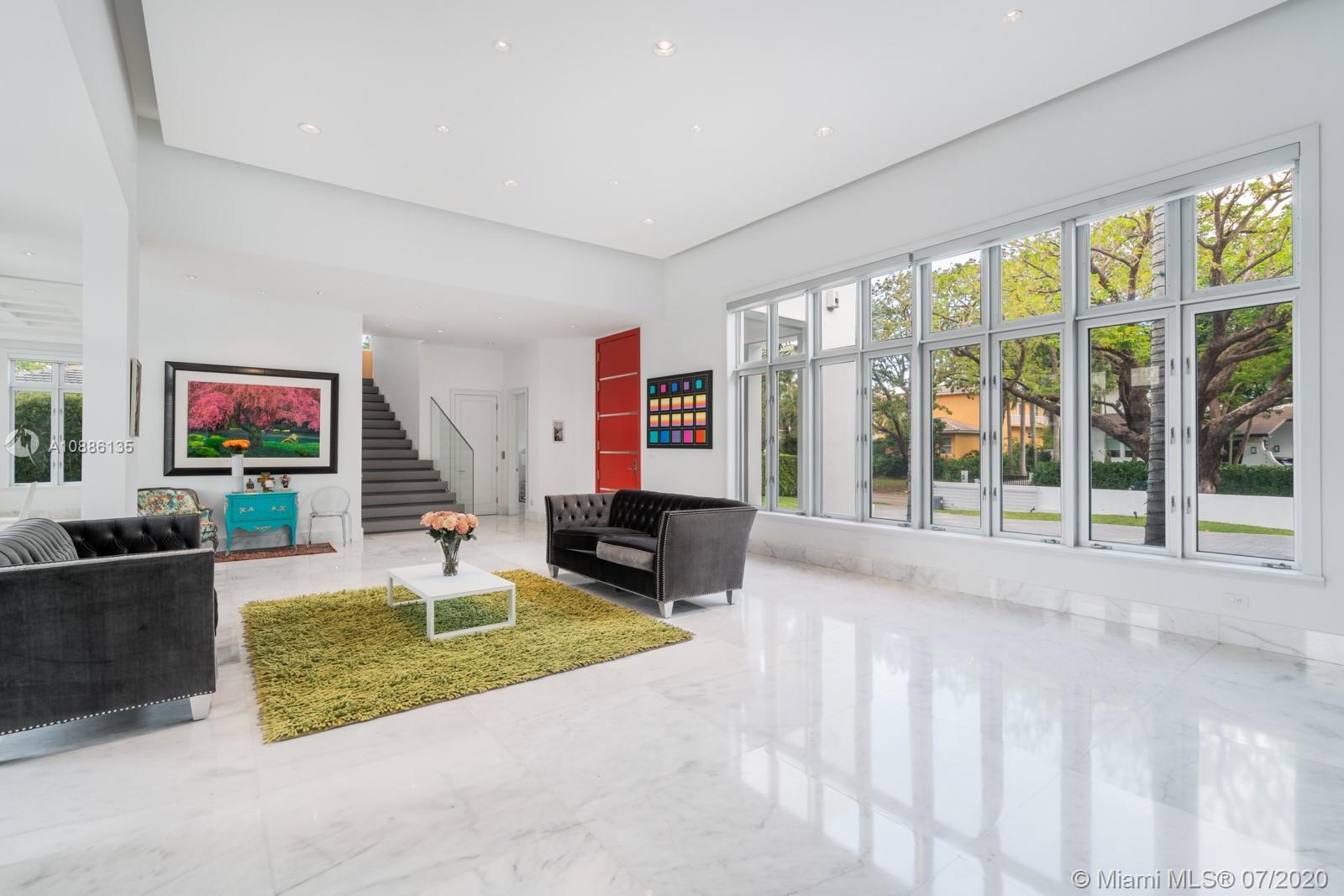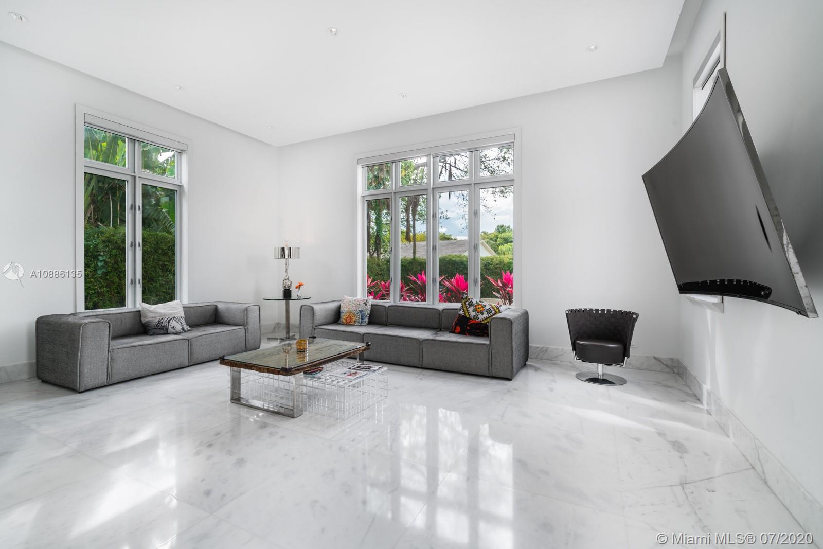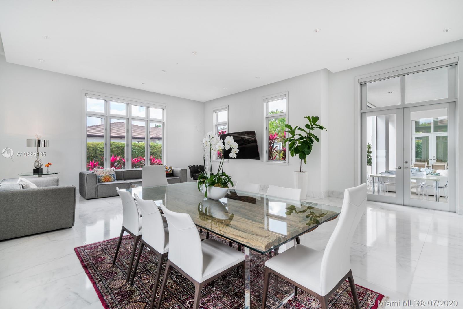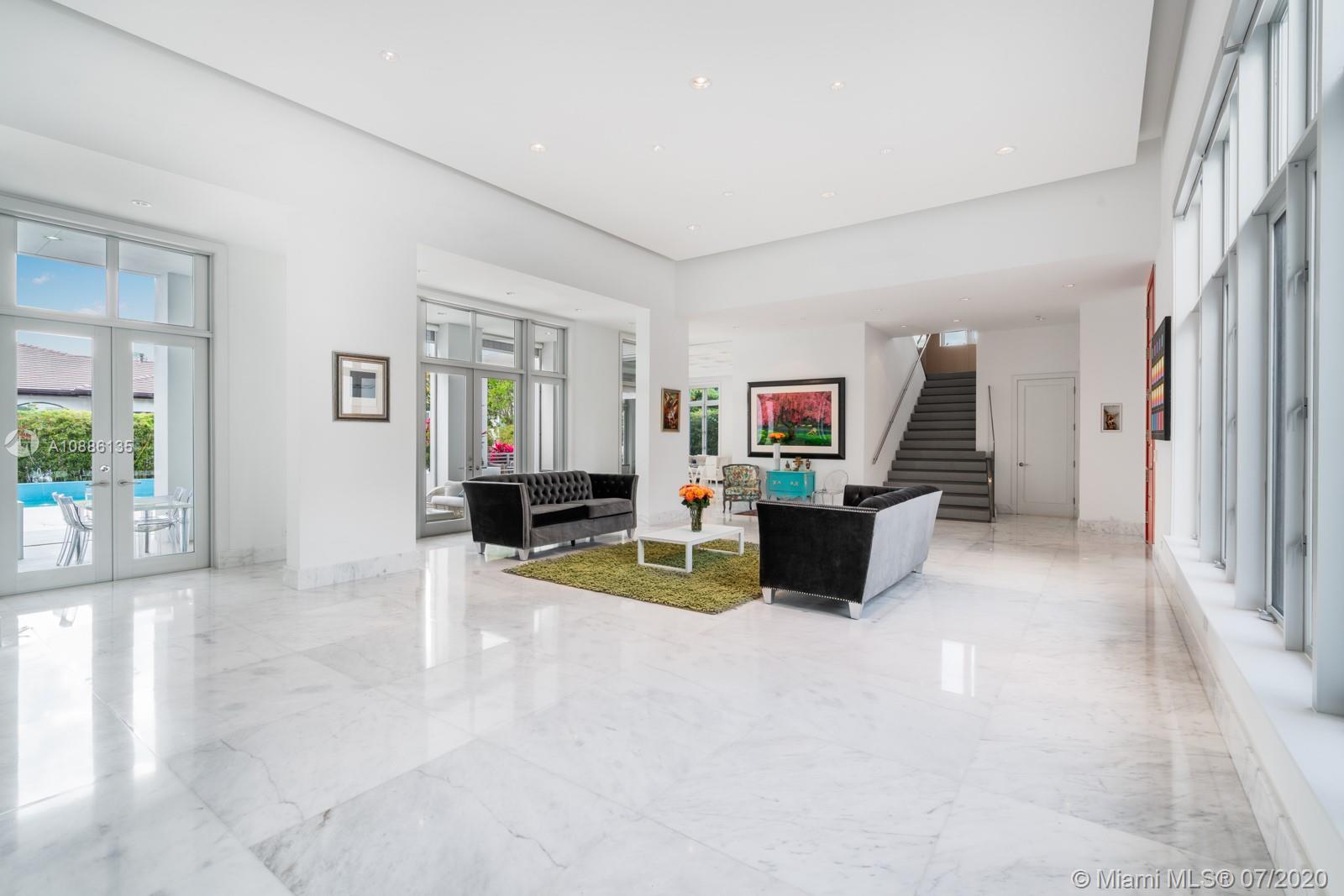 Tucked away in the prestigious gated community of Cocoplum in south Coral Gables, this custom-built 6-bed, 6-bath modern family home offers flawless upscale living. High ceilings, extra-tall impact windows, and gleaming white marble floors fill the home with light. Open layout flows directly to huge covered terrace, patio, and large salt-chlorine heated pool with spa for indoor/outdoor living at its finest Oversized chef-grade kitchen features top-of-the-line cabinetry, fixtures, and appliances, and connects to main family room for entertaining. Billiard room, bar, guest suite and maid’s quarters all on 1st floor. Family bedrooms (all suites) and lavish master suite with sun deck on 2nd floor. Whole home generator, smart tech with mobile controls, elevator, and utility room also included