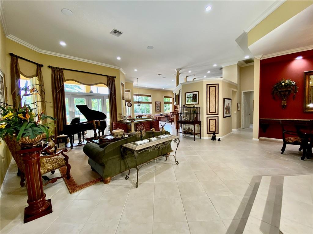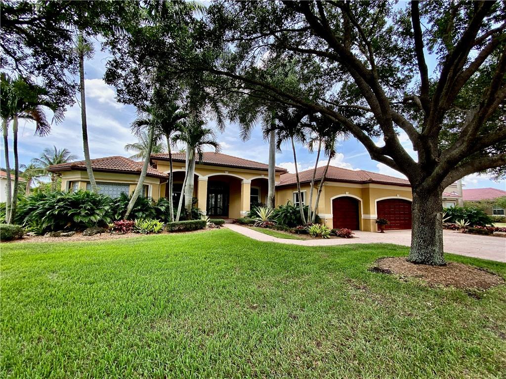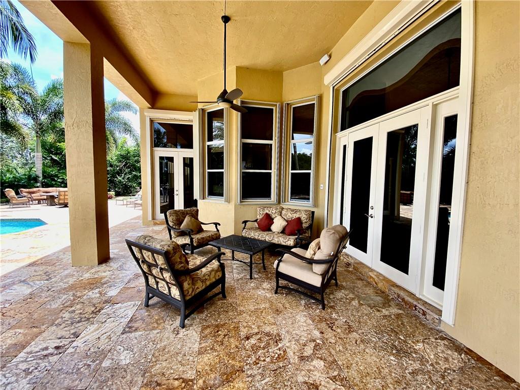 Virtual Tour has video, floor plan, survey and more. This is a magnificent find which is a rare 6 bedroom Hanover model. The home is just 3 houses from the end of the cul-de-sac street. The ideal northern rear exposure overlooks the water and one of Davie's many equestrian trails. The front is host to lush landscaping including 3 very mature Oak trees. The fenced back yard is gorgeous, with a pergola, covered summer kitchen, huge travertine marble pool deck which leads to step down trail where you can sit down near waters edge.. All windows have accordion shutters, and the glass rear french doors are protected by roll down shutters. A 32,000 Watt (32KW) emergency generator powers the entire house during power loss. The inside offers 5 full bedrooms and a den. See Virtual Tour for details