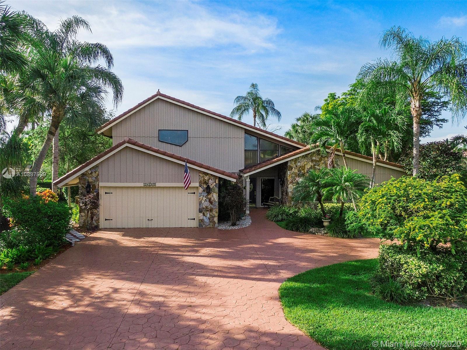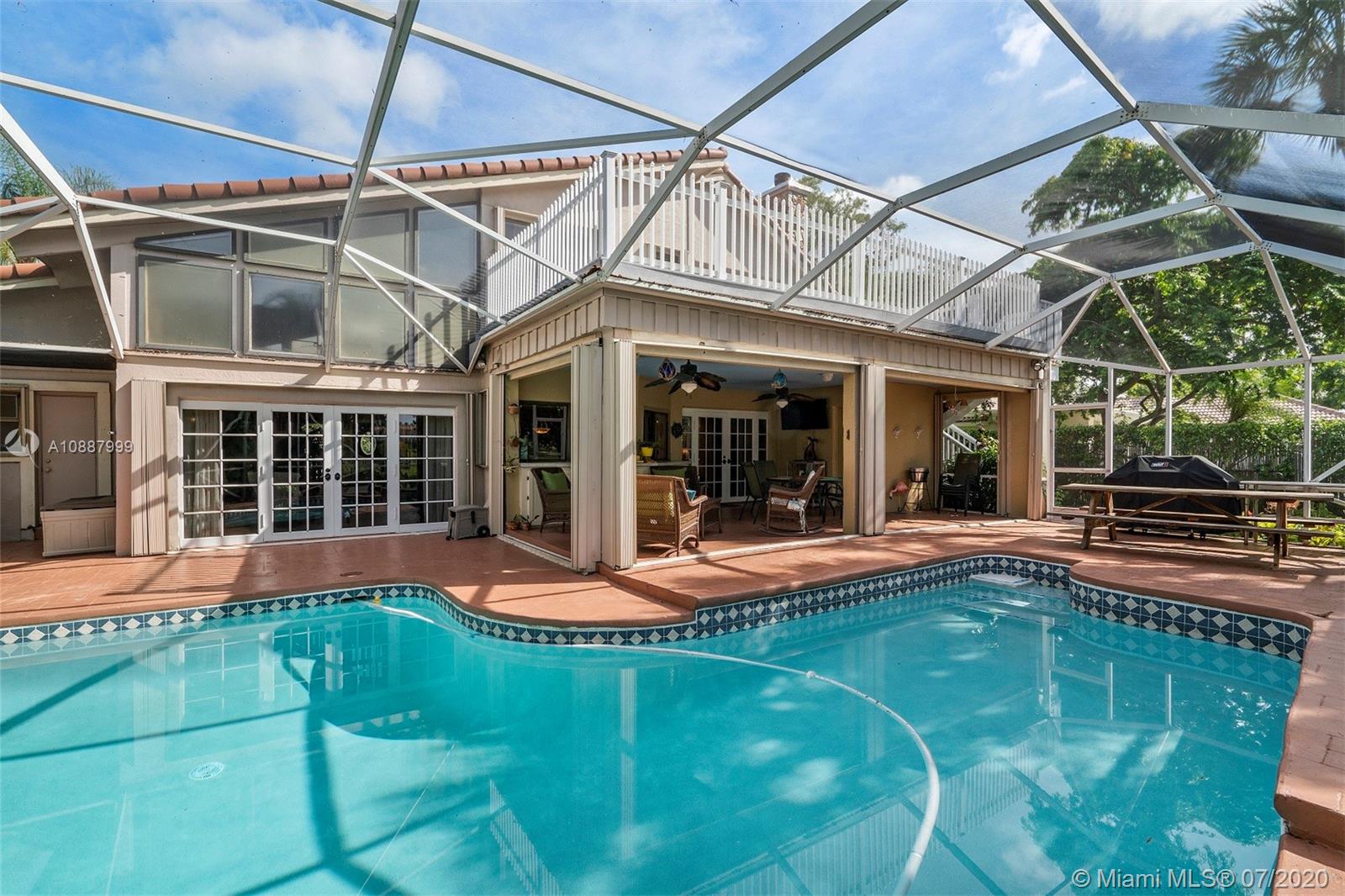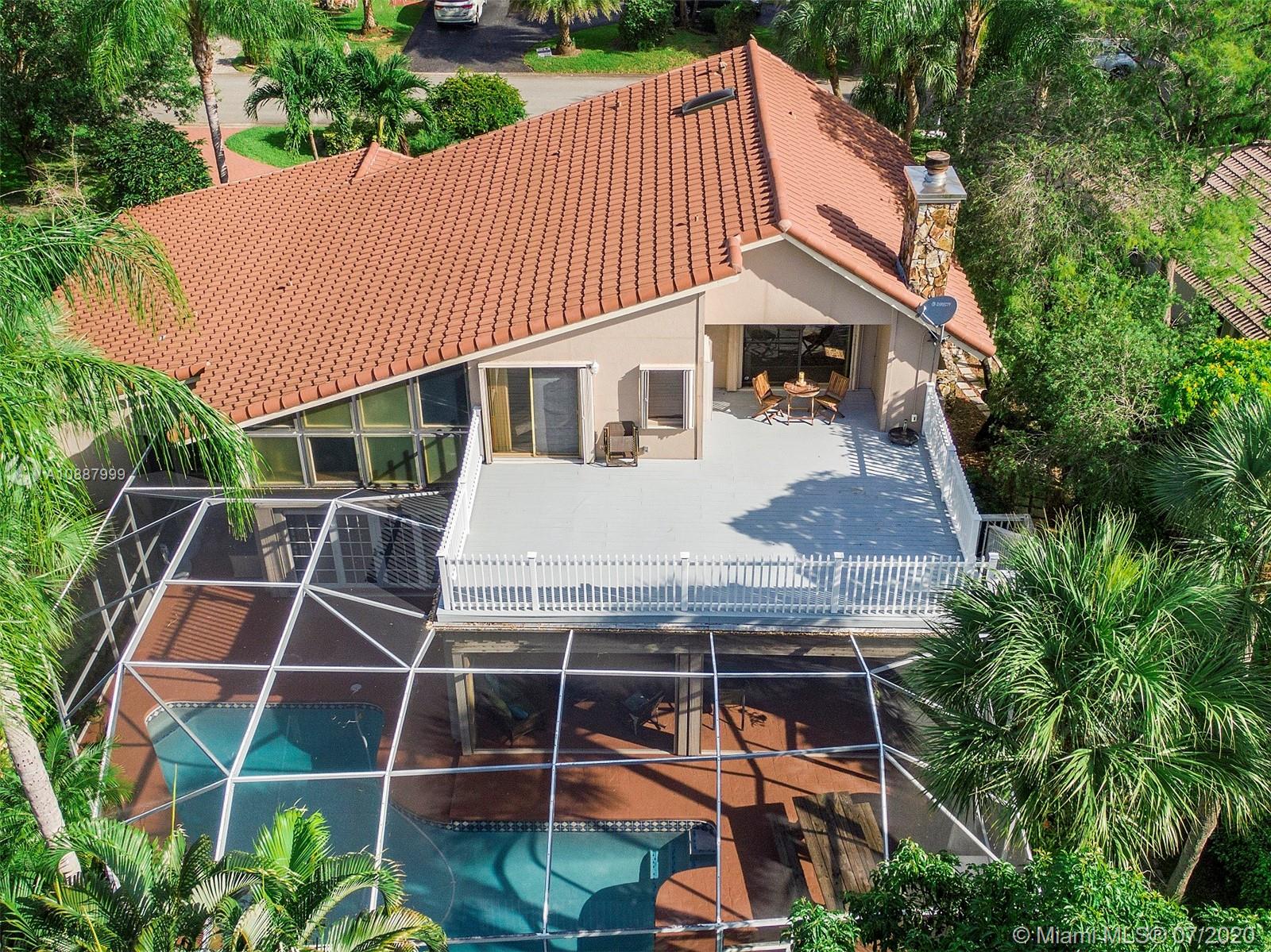 One of the largest 4/3 Coral Springs homes located in"The Oaks"with NO HOA! Circular driveway & 2 car garage leads to the front entry, living & family rooms french doors lead to covered patio-pool area & views of water. Take side stairs to large deck on 2nd level off Master suite, loft & home Office. Enjoy this home all yr pool & patio or make a fire in Flagstone wood fireplace in the cooler months New roof 2019, 2 A/C's,Water purification system, New 2020 pool resurfaced & eqpt, Custom built bar-sink, Kitchen & 2 baths remolded in '17-'18. Master bath separate private tub,shower & bidet area. Lush landscaping including butterfly garden, several seating areas & custom outdoor lighting. This home offers many options to meet your needs. Top rated schools and close to all major shopping.