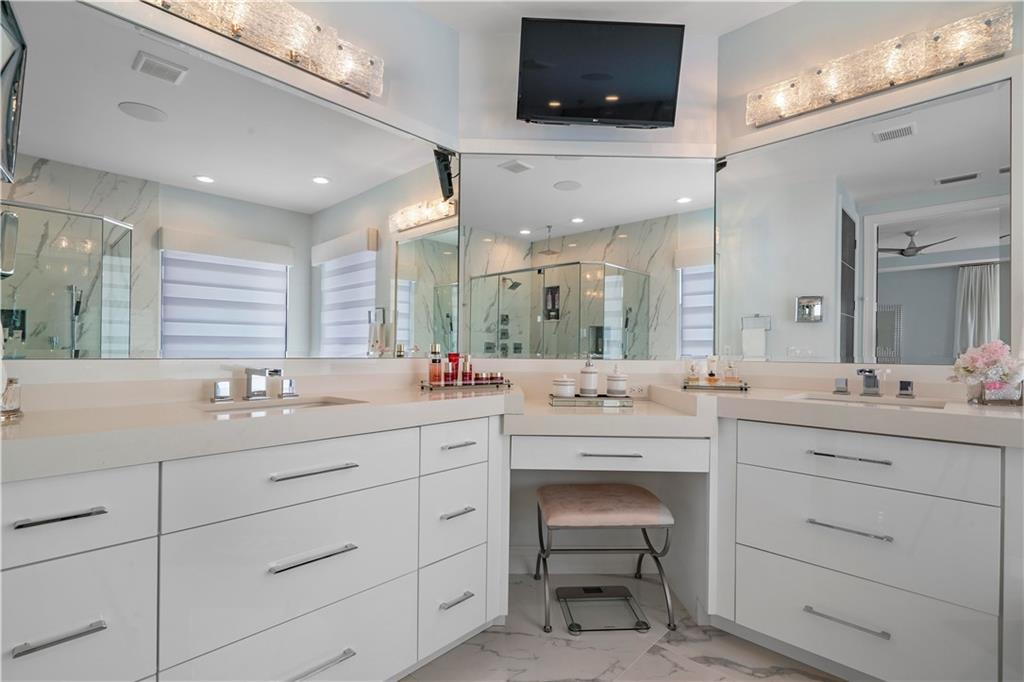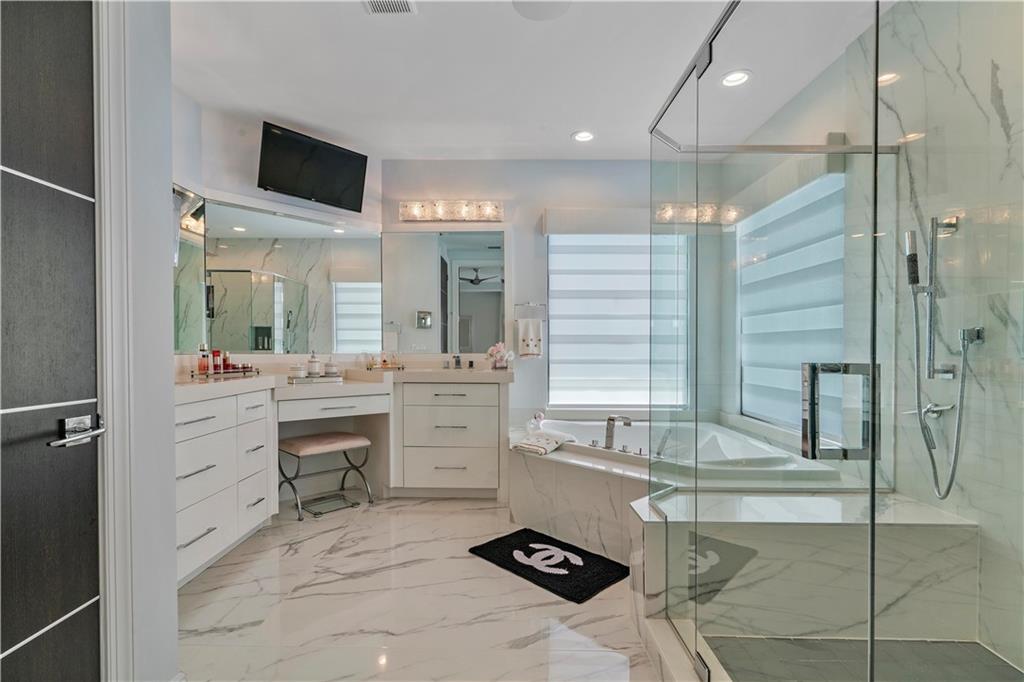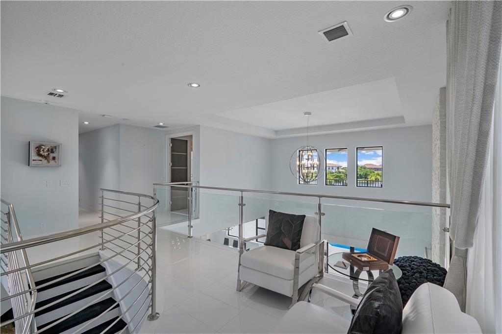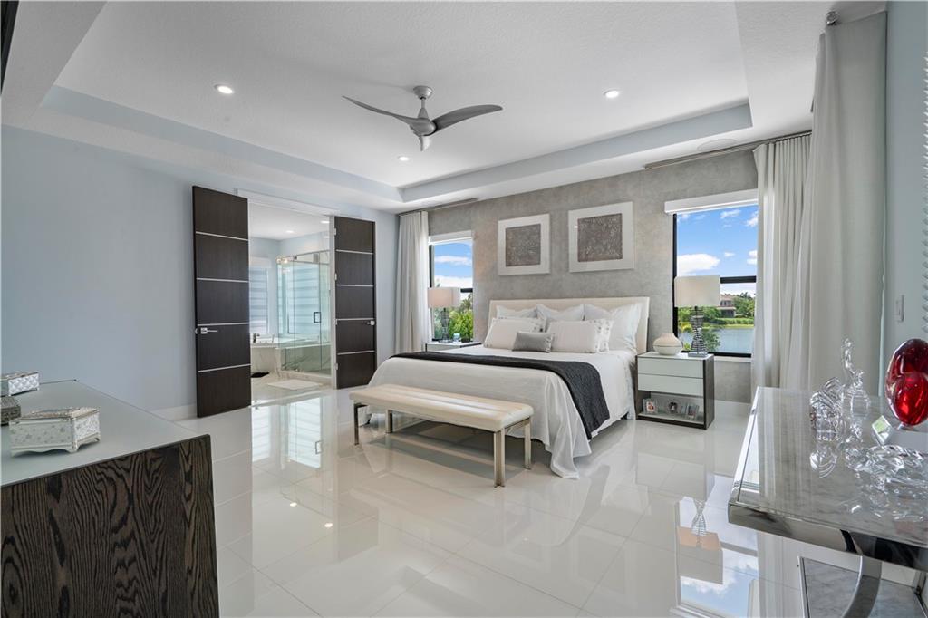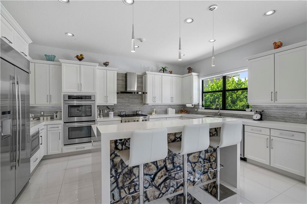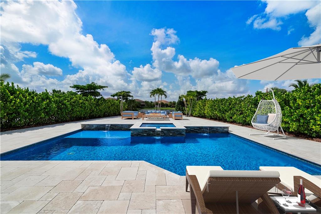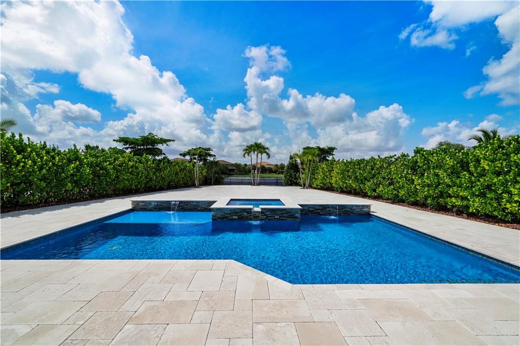 Move right into this 5 bedroom, 4 1/2 bath pool home on water in Parkland Golf and CC community. Home has very spacious driveway and gated front porch. 24" white tile throughout living area. Gourmet kitchen has waterfall quartz counters, onyx, illuminating center island and Jenn Air appliances, gas stove and all soft close cabinets and drawers. Rock wall feature in family room, under the stairs library, surround sound throughout, remote shades, impact windows and doors, wired for smart house, outside security cameras, led lighting, lots of built ins, solid espresso doors with Emtek hinges and handles, glass panel on stairway with chrome tubular railings. Privacy fenced yard with salt water pool/spa. Please see Virtual Tour https://my.matterport.com/show/?m=8usL1TbKgF8&brand=0