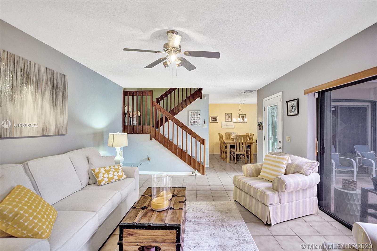 FANTASTIC & WELL MAINTAINED 3/2 TOWNHOME IN THE HEART OF COOPER CITY, 2 ASSIGNED PARKING SPOTS RIGHT UP FRONT, HUGE FENCED PATIO AREA, ONE BEDROOM AND HALF BATH DOWNSTAIRS! ACCORDION SHUTTERS, REMODELED KITCHEN W/ SOFTCLOSE WOOD CABINETS/QUARTZ COUNTERS, ACCESS TO PATIO FROM KITCHEN, LR AND DOWNSTAIRS BEDROOM. WASHER/DRYER (NEWER) ALL INSIDE, LARGE WALK-IN CLOSET IN PRIMARY BEDROOM, LOW MAINTENANCE FEE, ONLY 2 OWNERS, CURRENT OWNER PURCHASED 27 YEARS AGO! COMMUNITY POOL, KIDS PLAYGROUNDS, BEAUTIFULLY LANDSCAPED COMPLEX WITH TONS OF GRASSY AREAS. ONE PET 30 LB MAX ALLOWED.