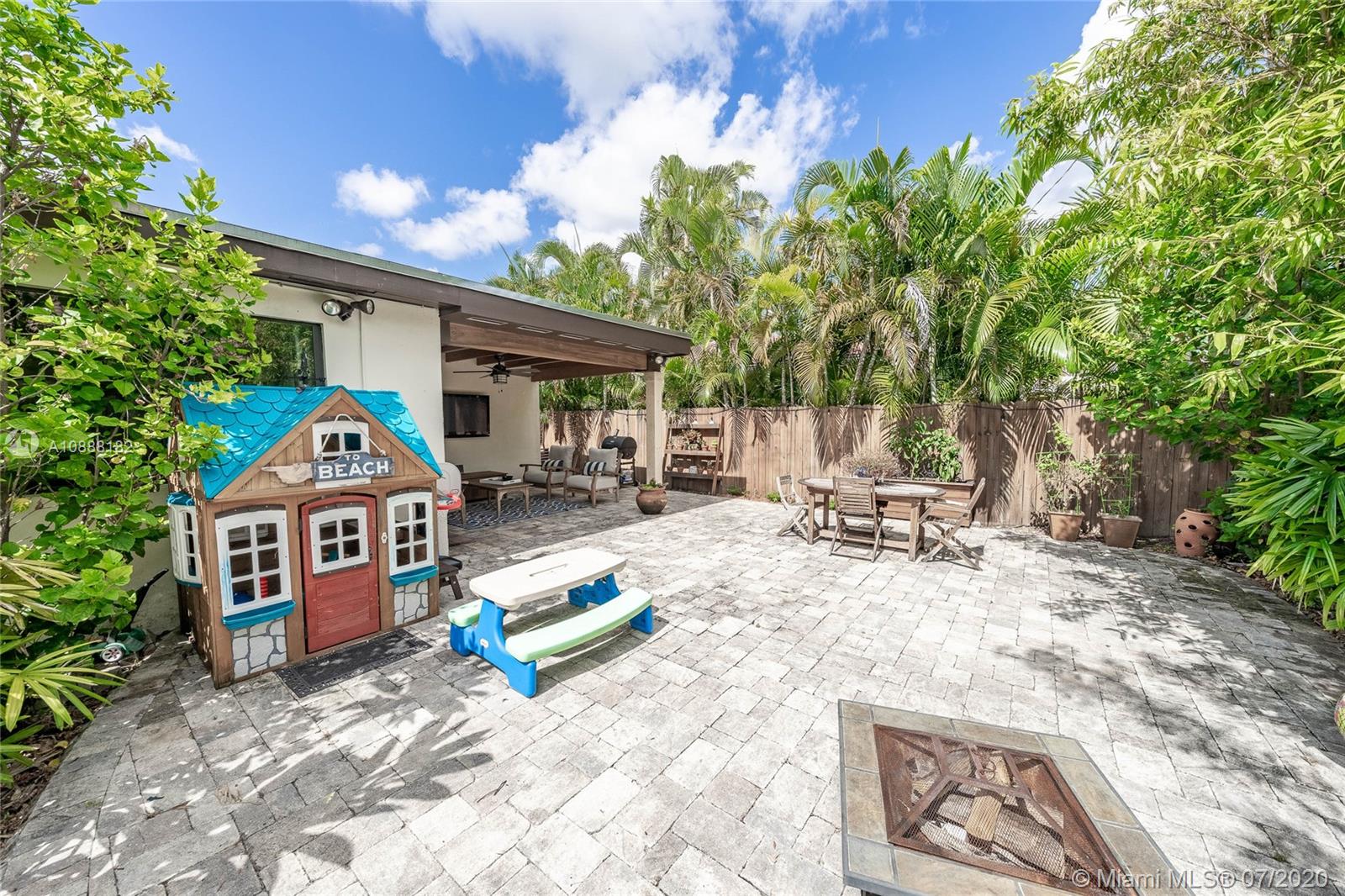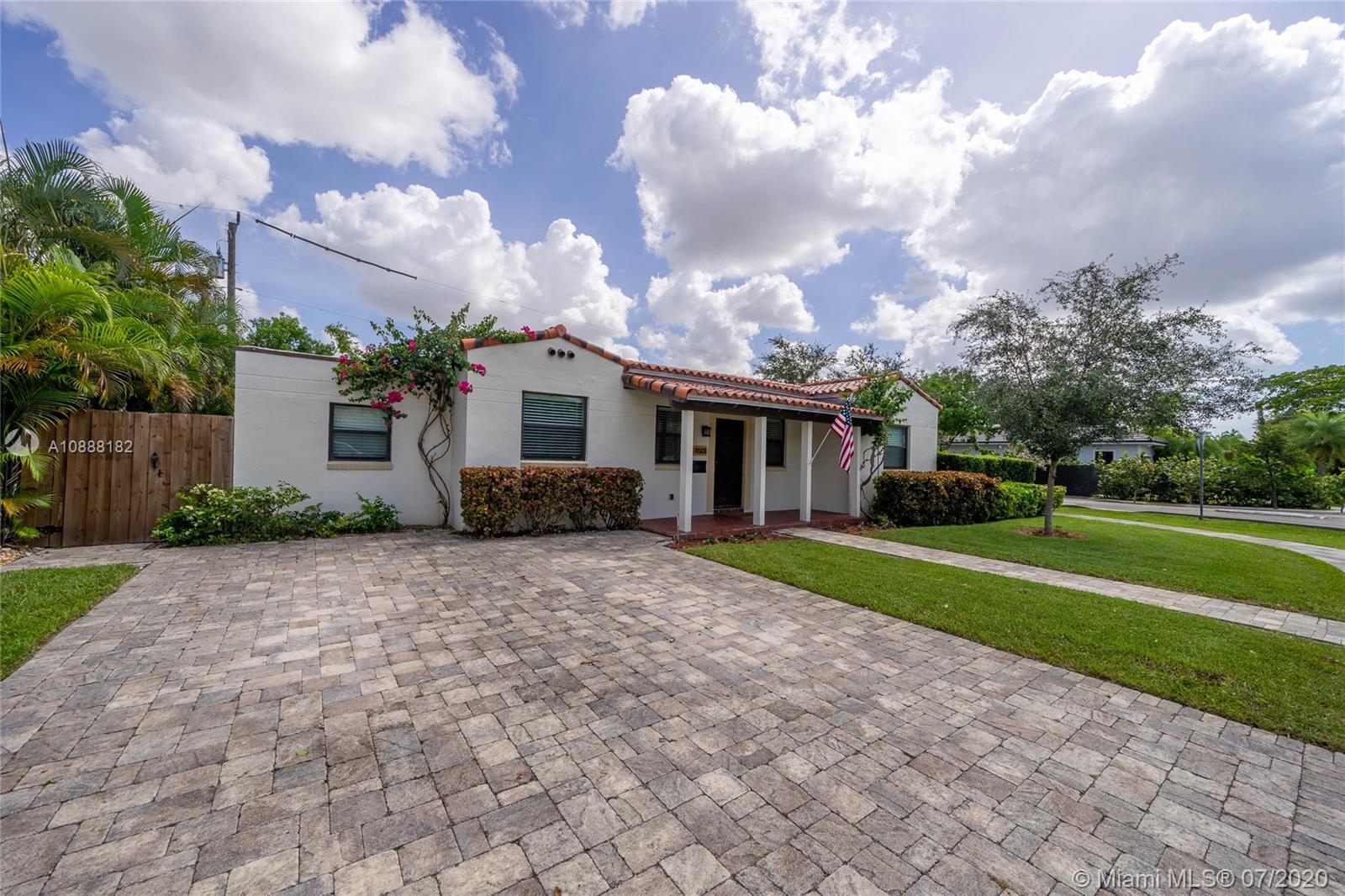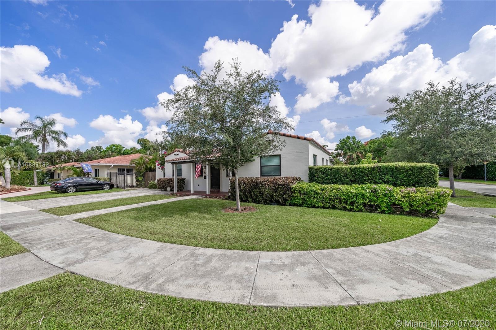 Charming 2 bdrm/ 2 bath, plus office, home perfectly situated in Little Gables. Impact windows and doors, PVC plumbing, newer roof and many other recent upgrades. Delightful living room with fireplace, exposed wood beam, vaulted ceilings. Kitchen opens to dining area and access to the office/playroom/den. Indoor laundry/utility room with storage. Florida room perfect for formal dining or family room. Lovely wood flooring in the living areas and bedrooms. Master has large walk in closet. Guest bedroom is spacious. Room to add on or put in a pool. Fenced back yard with covered paver patio. Paver driveway, corner lot. Steps from Coral Gables. A fantastic investment. Visit https://my.matterport.com/show/?m=SJtBPh9HfDF&brand=0 to view the 3D virtual tour and floorplan.