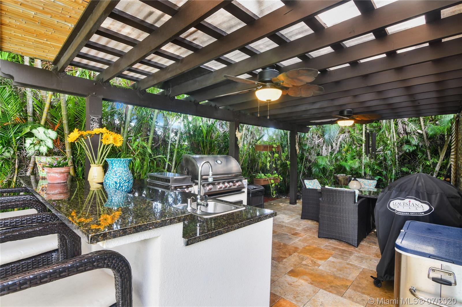 Beautiful 3/2 pool home in Pasadena Lakes. Freshly painted and boasting brand new roof June 2020. All windows and doors are new w hurricane shutters. Upgraded sewer lines w the city from cast iron to PVC. Entrance has a lovely Koi pond and circular driveway. Breathtaking private backyard w full custom kitchen and BBQ perfect for entertaining. Solar heated pool panels. Lush landscaping. Top of the line upgraded kitchen w SS appliances by KitchenAid. Granite counter tops w build in bar and wine chiller. Authentic wood cabinetry. Gas stove. Security system throughout w tv monitoring. Fully upgraded master w custom closets and gorgeous seamless shower w jet system. Side of the home is equipped w 8x12 shed and space for boat or RV along w power. The list is endless. This home is a MUST SEE!