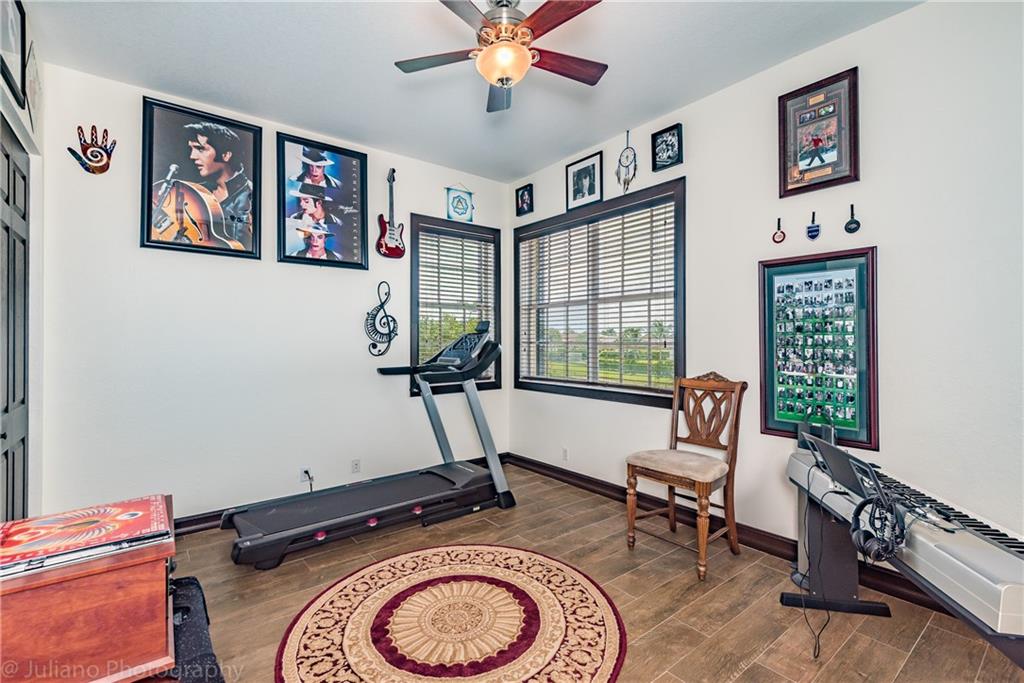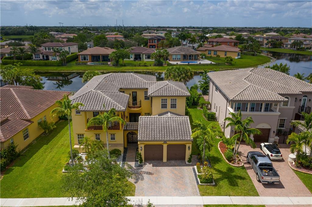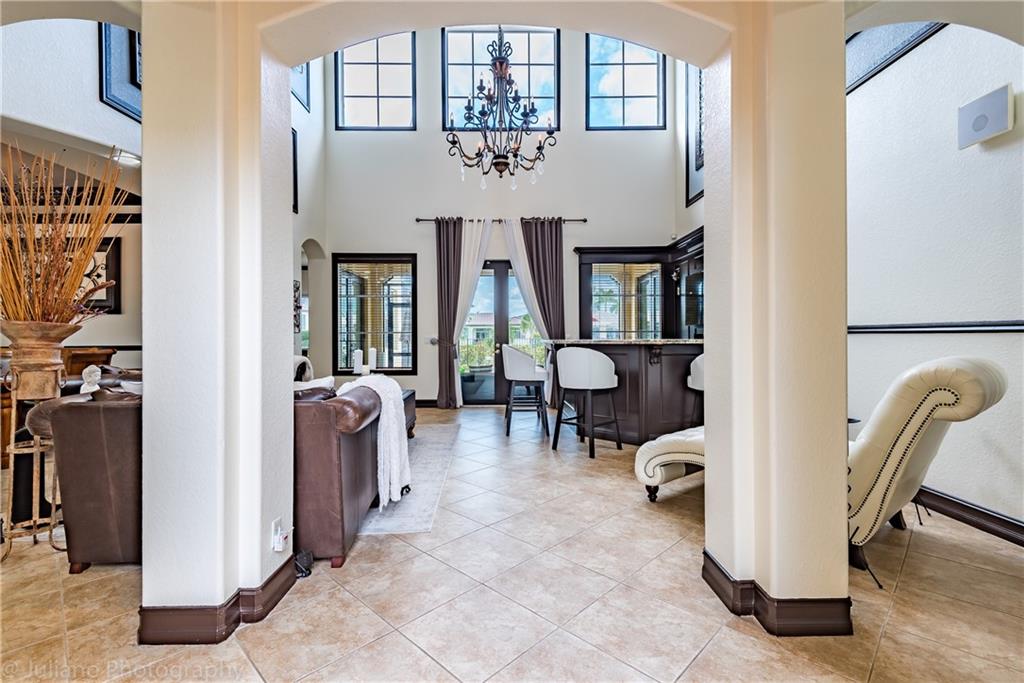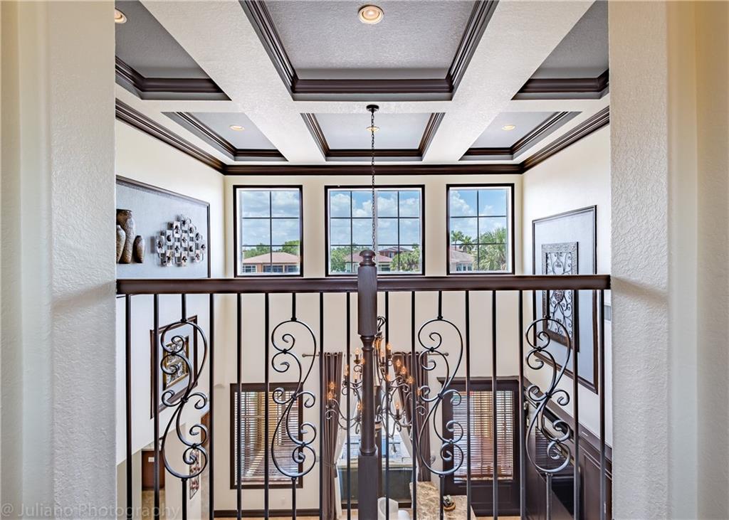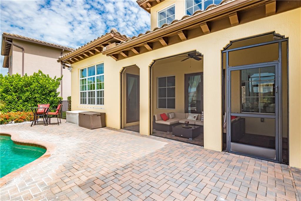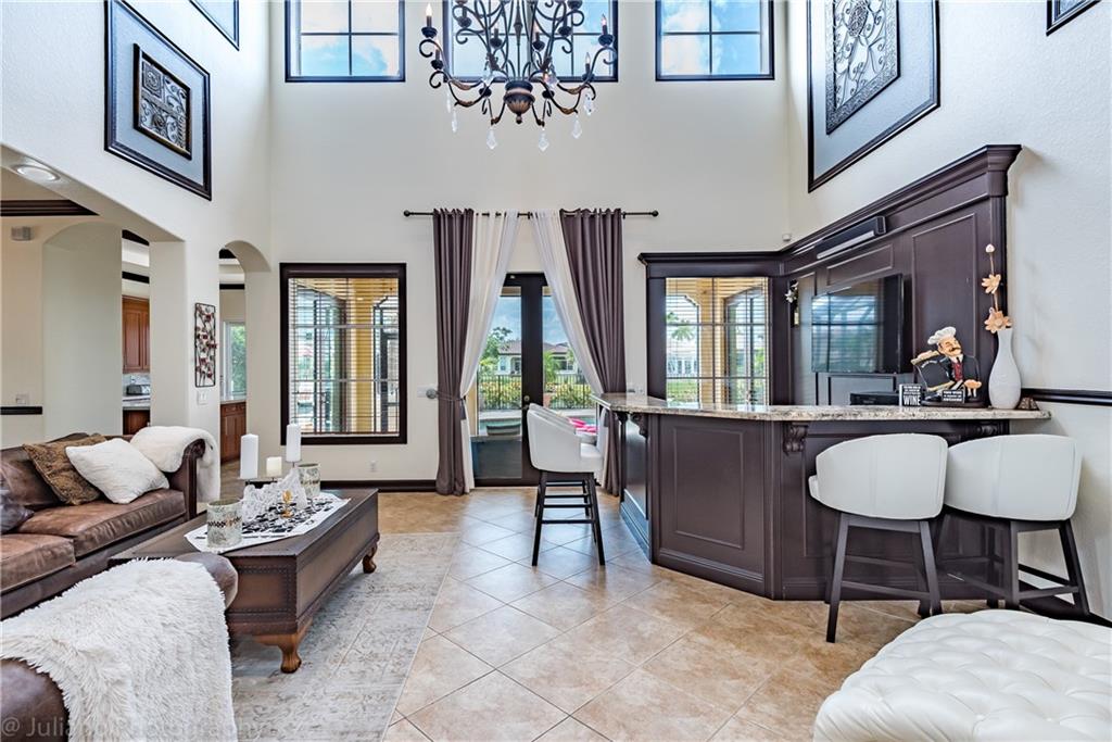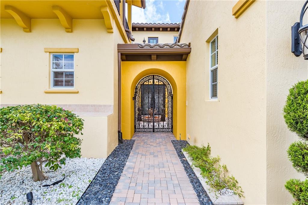 Fabulous waterfront 5/3 Spanish style pool home.Fifth bedroom has a media game room. Wow!!! Stunning courtyard with custom impact double front doors. Living room has 22 foot coffered ceilings with crown molding and a custom bar with granite for great entertaining. Downstairs master suite and secondary guest suite. All rooms have custom closets. Kitchen has been upgraded with quartz counter top and brand new stainless steel appliances. All windows have blinds and custom molding.Upstairs has a media/game room with custom floating cabinetry and stone tv wall. Upgraded landscaping with automated lighting, 10 foot privacy bushes on both sides. Pool has a raised deck. Screen patio leads to the kitchen with impact resist sliding door. Impact windows and shutters on all upstairs windows.