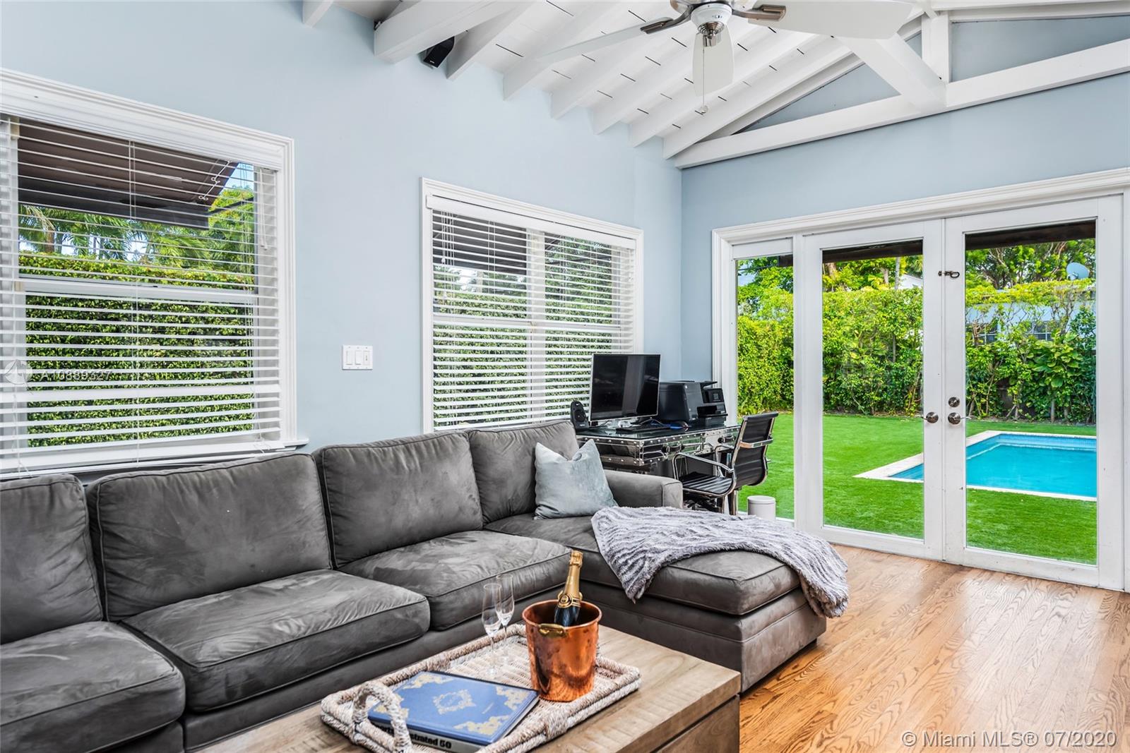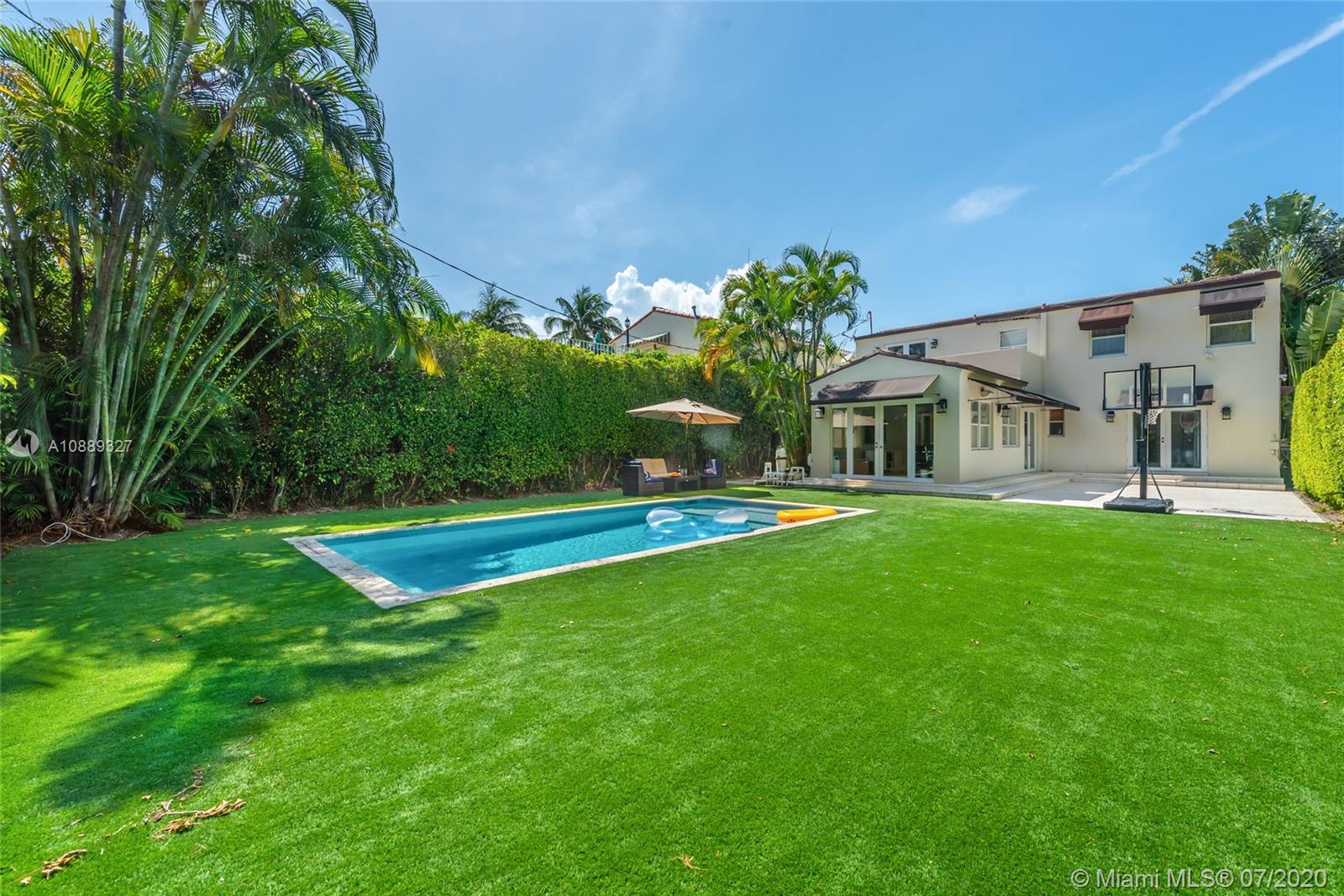 Rarely available 5 bedroom, 2,700 SF per appraiser, renovated pool home situated on great street near Surprise Lake & new Ritz-Carlton Residences. Tastefully appointed w/ contemporary flair & modern luxuries such as high-end finishes throughout, gourmet gas eat-in kitchen, updated bathrooms, partial impact glass & stunning outdoor living areas. Bright window lined family room features built in surround sound system, high vaulted ceilings & opens up to lush tropical backyard oasis. New astro turf for easy maintenance. Great floor plan w/ 2 bedrooms down, includes staff quarters, + 3 bedrooms upstairs. Prime location minutes to the beach, great schools & 41st street corridor. Easy access to major highways & Mainland Miami..