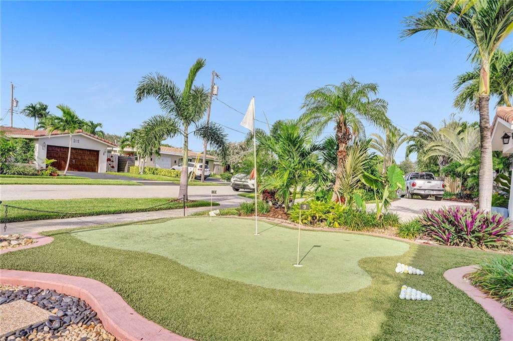 Highly Desirable "Imperial Point" Waterfront, Pool, 2 Car Garage Home w/ Great Curb appeal & Immaculately Maintained Grounds. Corner Lot w/ Plenty of Parking for Entertaining ( 2 separate driveways). Now Popular; Terrazzo Floors Preserved under the carpet in Main Living Areas & 2 Bedrooms; Ready for You to Reclaim The Mid-Century Look! Wide Open Floor Plan; Walk in Front Door & see Expensive Curved Wall of Windows Overlooking Pool. Plenty of Room for a Baby Grand Piano! Remodeled Large Eat in Kitchen w/ Espresso Toned Cabinets & Brushed Steel Pencil Hardware, Granite Counter Tops, Built in Wine / Beverage Cooler, & Walk in Pantry. Split Bedroom Plan. Master Bedroom has Walk in Closet, Remodeled Bath w/ Double Sinks, Separate Shower & Spa Tub. Also Has a Custom Putting Green
