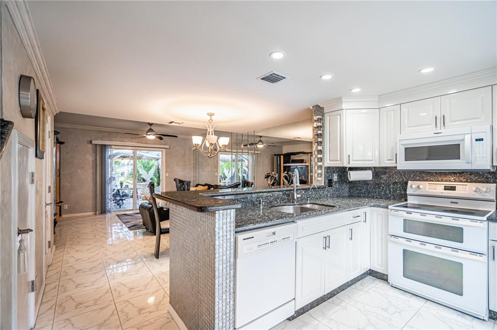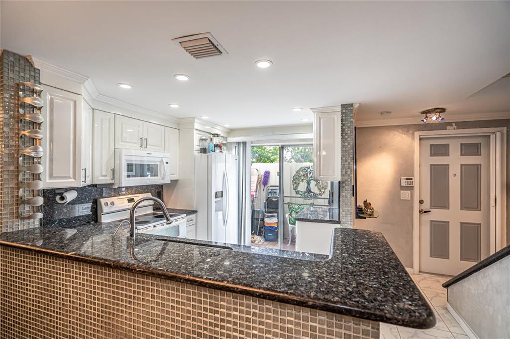WOW! Stunning townhome in Lakebridge! Top to bottom remodel. Granite counters, imported 1 inch tiles on bar, new appliances make this well lit open concept kitchen any chefs dream! Granite stairs lead to an oversized master bedroom with your dream bathroom, full sized washer & dryer, and a second bedroom perfect for kids, an office or a roommate. Hurricane shutters for all windows and doors. Tropical foliage & fence gives you privacy on your own personal patio overlooking the pond. All ages welcome. Large pets welcome with a maximum of two dogs per unit. Two car limit per unit. Rent right away... an investors dream! minimum lease 4 months. Thus is an estate sale.