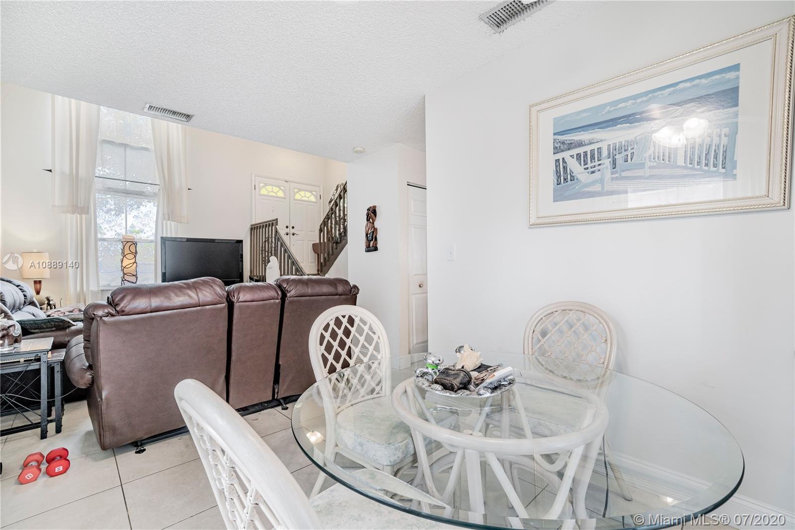 HARD TO FIND SINGLE FAMILY HOME IN A DECENT PRICE. THIS CORNER HOME OFFERS HIGH VAULTED CEILINGS IN THE LIVING AREA. TILE IN THE FIRST FLOOR AND BERBER CARPET ON THE SECOND FLOOR EXCEPT FOR ONE BEDROOM THAT HAS LAMINATED WOOD. ALL BEDROOMS ARE UPSTAIRS. THIS HOME OFFERS HURRICANE SHUTTERS.THE BACK PATIO IS COMPLETELY FENCED. THE COMMUNITY OFFERS POOL AND PLAYGROUND WITH A VERY LOW HOA. THE HOA CUTS THE FRONT LAWN, AMENITIES, AND COMMON GROUNDS. A/C 2006 AND WATER HEATER 2011