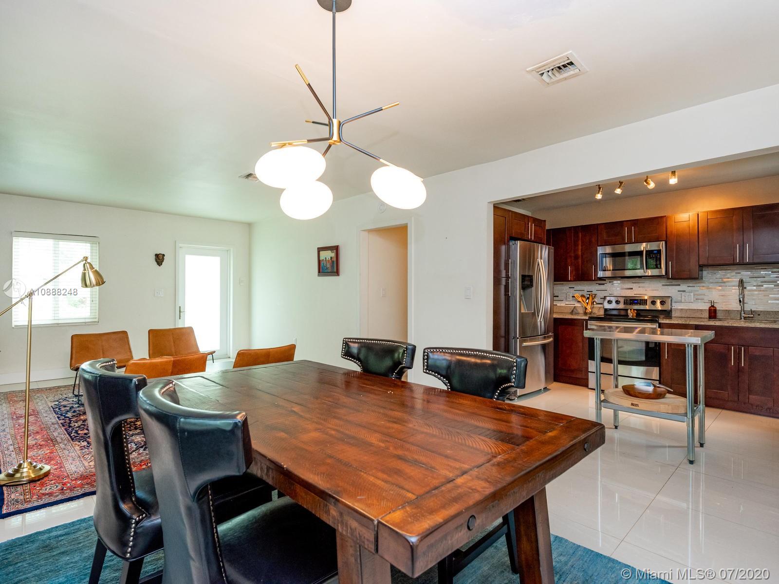 Buy this beauty while you can! Tastefully remodeled with new kitchen, new bathrooms, 4 full bedrooms with a split plan and master bedroom & bath en suite plus a great walk-in closet! Picture perfect with porcelain floors and decorative fireplace. Large family room overlooking a spacious fenced back yard, with plenty of room for a pool and large patio to entertain! AND a BONUS! ... even better...a detached over-sized garage - with entry from fabulous Miami Shores 'service road' -- could be home office or art studio or home gym! The septic system is new.ROOM FOR POOL and ROOM FOR BOAT!