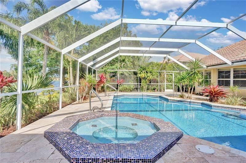 Located on a quiet cul-de-sac, this lakefront, .76 acre estate offers Cypresshead's finest opportunity! Outstanding features incl: split BR plan with #2 adjacent to MBR & used as office;Master suite w/hardwood floors, plantation shutters & his & her walk-in closets; exquisitely updated bathrooms; stunning LR w/dramatic, high volume ceiling & vanishing sliding glass doors opening to pool & lake view; gorgeous kitchen w/rich wood cabinets, granite counters, gas cooktop & st. steel appliances; spacious FR w/beautiful fl-to-ceiling fireplace; pool table/game room area; custom wetbar w/access inside & out; expansive, screen-enclosed patio w/spacious covered area, & oversized, gas htd pool & spa; '07 roof and all impact windows and doors!! Private yard boasts fruit trees & breathtaking views!!