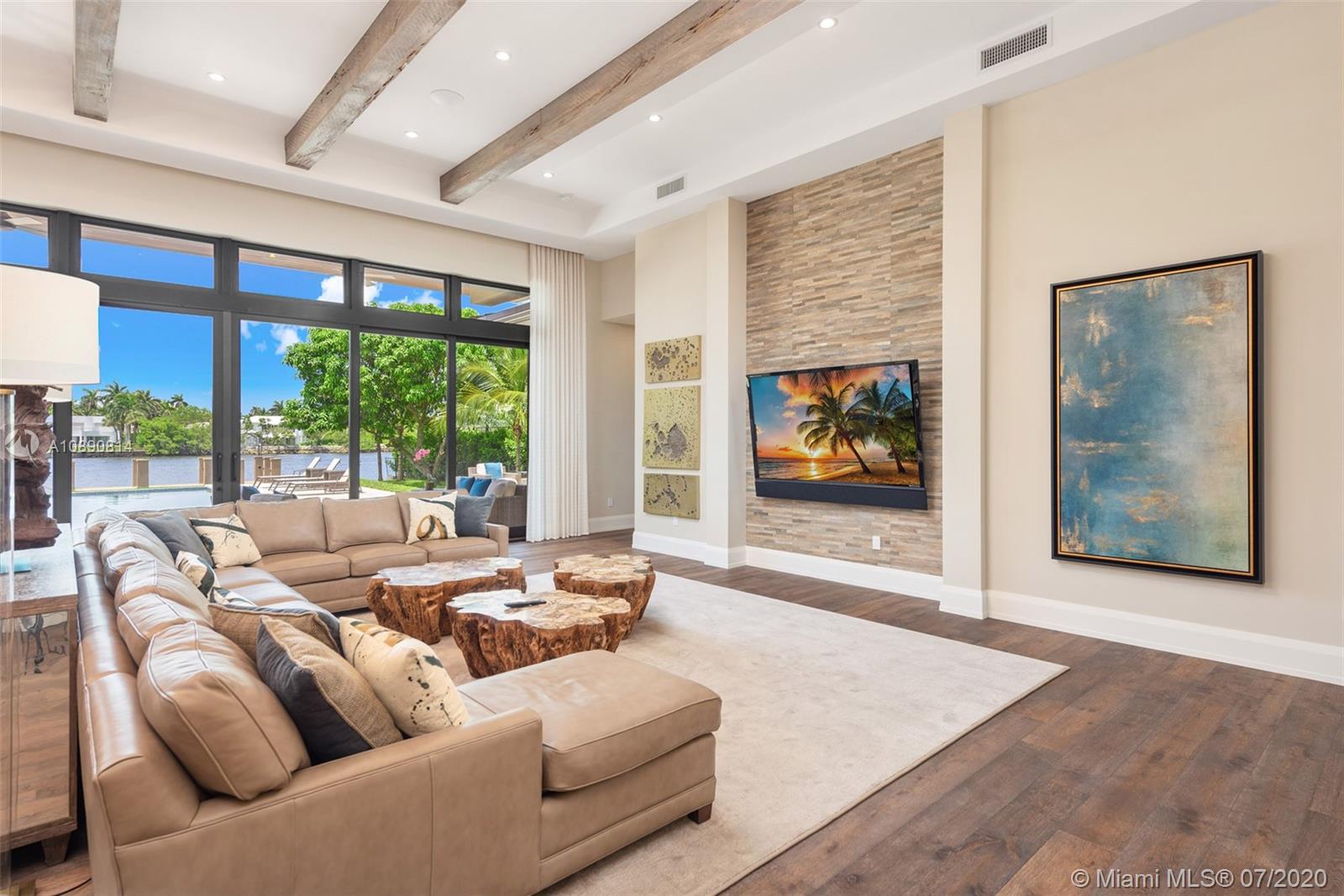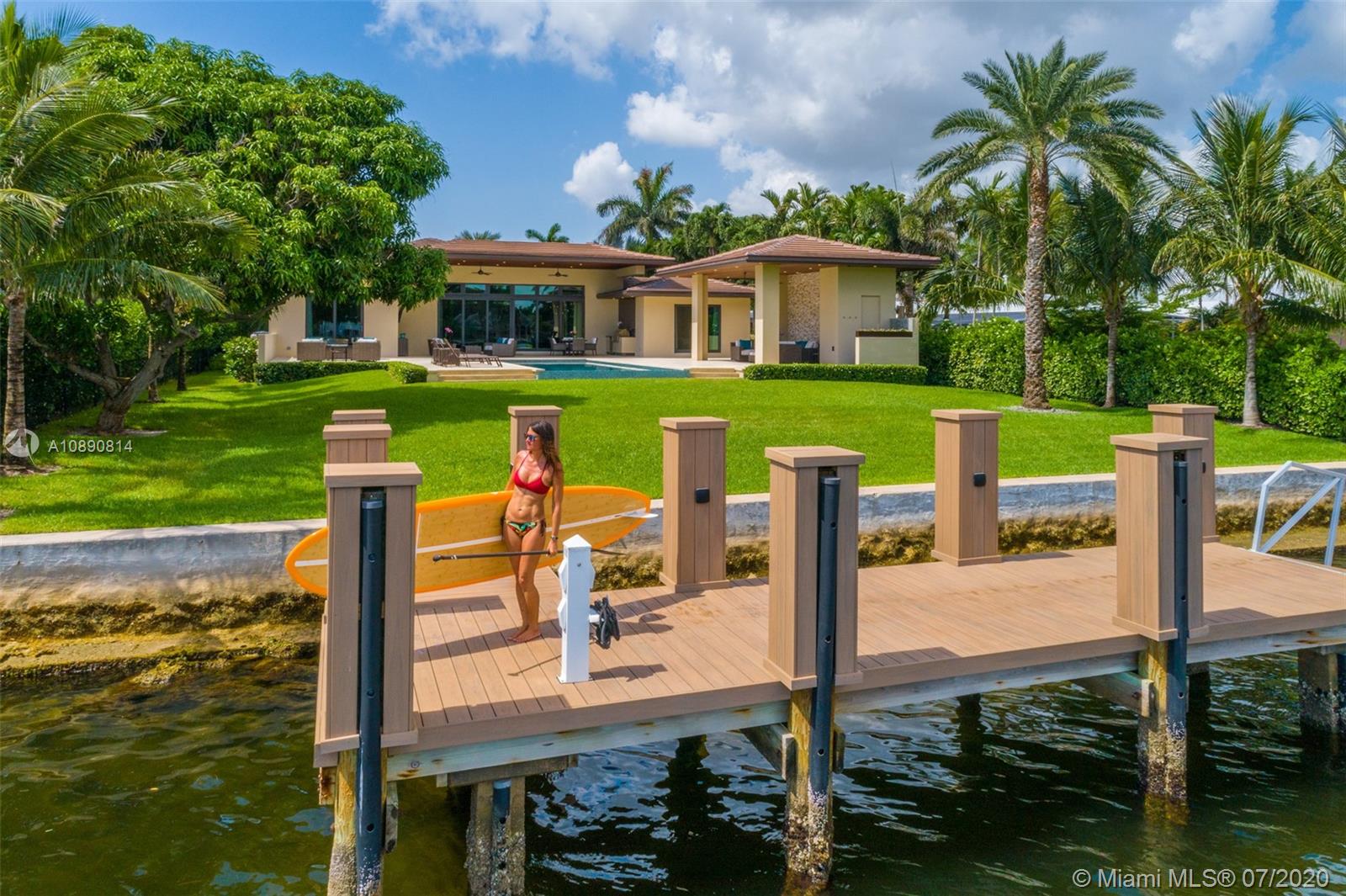 2018 one-story waterfront home, elegantly appointed with state-of-the-art finishes the residence captures the essence of South Florida’s waterfront lifestyle. Home offers large sunlit and inviting living spaces complemented by hardwood flooring and moveable walls of glass that seamlessly transition from interior to exterior living spaces. The impressive kitchen features a large center island, walk-in pantry and bar seating area. Meticulous attention to detail is evident throughout the home. Owner’s suite features a spa-inspired bath and dual custom walk-in closets. Outdoors, a remarkable pool, covered terrace, summer kitchen, yacht dockage and wide-open water views offer endless options for entertaining.