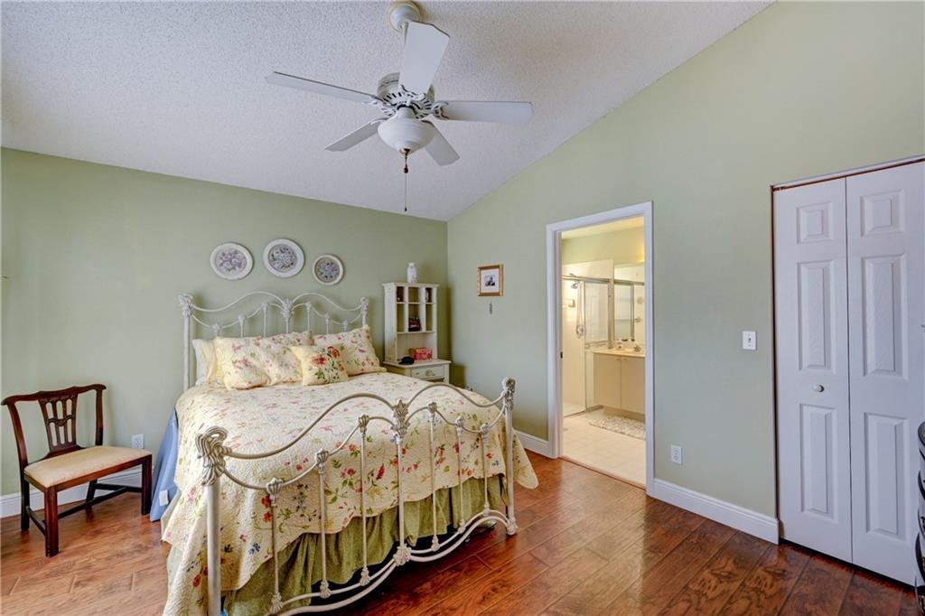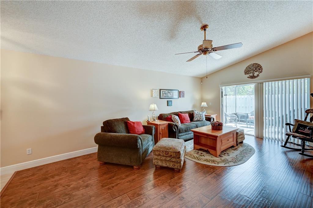 Beautifully cared-for single family home in Silver Lakes*enjoy the private and extended screened patio with no home directly behind*accordian shutters thoughout*vaulted ceilings enhance the living areas and the master*check out the barn doors on the third bedroom, currently being used as a craft room*hand-scraped wood-plank design laminate floors with updated baseboards*light-filled kitchen, with room for cafe table, is open to living area*updated A/C*highly rated schools*great walking paths and amenities throughout Silver Lakes. Open houses Sat July 11th 2-5 pm and Sun July 12th 1-4 pm.