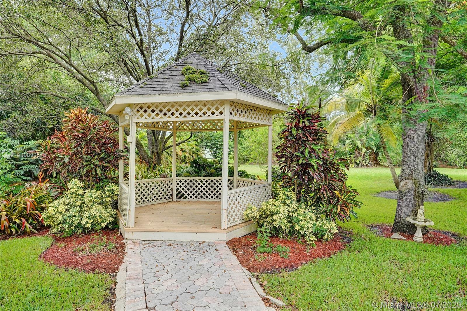 Spectacular 4 beds 3 baths estate home; nestled away on over an acre with secured gated entrance. Tastefully upgraded & meticulously maintained; the pride of ownership shows. Home features a triple-split bedroom floor plan. Boast gourmet kitchen with high-end stainless steel appliances & granite countertops. Fabulous over-sized master suite with 3 walk-in closets and attached exercise room. Beautifully upgraded bathrooms. Bonus sunroom (460 sq ft) Opens to a breathtaking tropical paradise perfect for entertaining with gazebo. The lush backyard is completed with mature oak & poinciana trees. Located in desirable Southwest Ranches. The community offers equestrian lifestyle, No HOA, great schools. Ask about $20K buyer's credit. Too many features to list, schedule an appointment to view today!