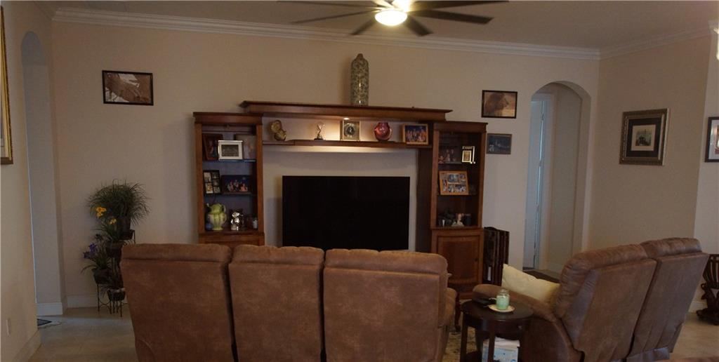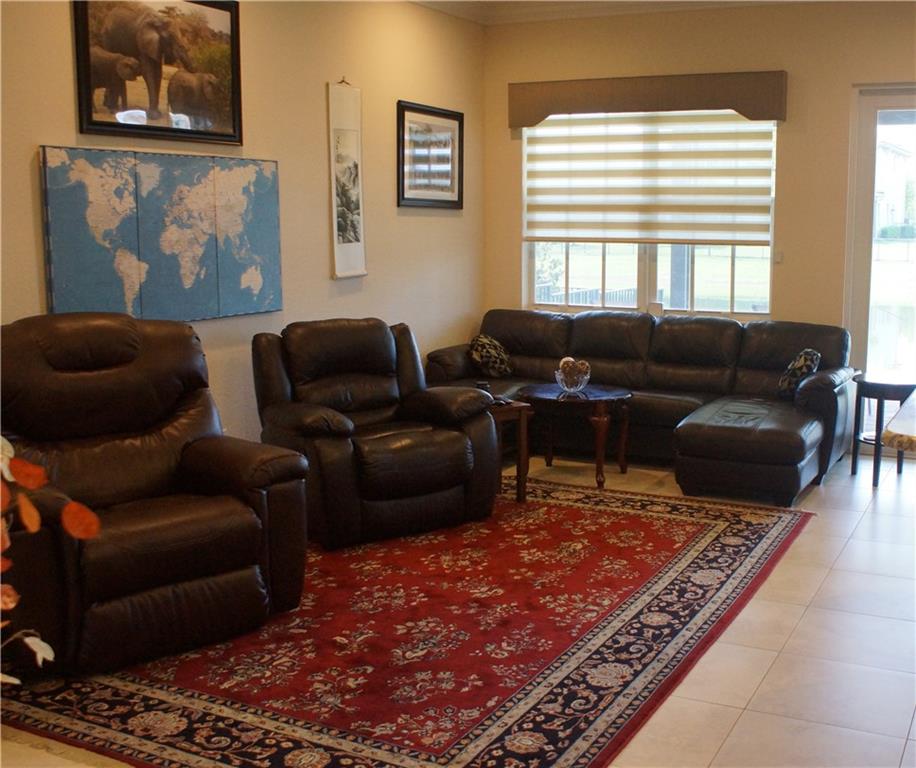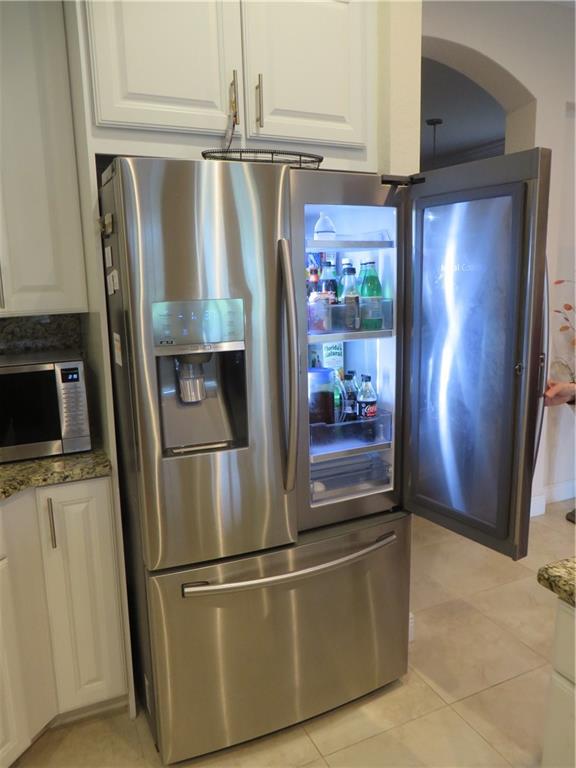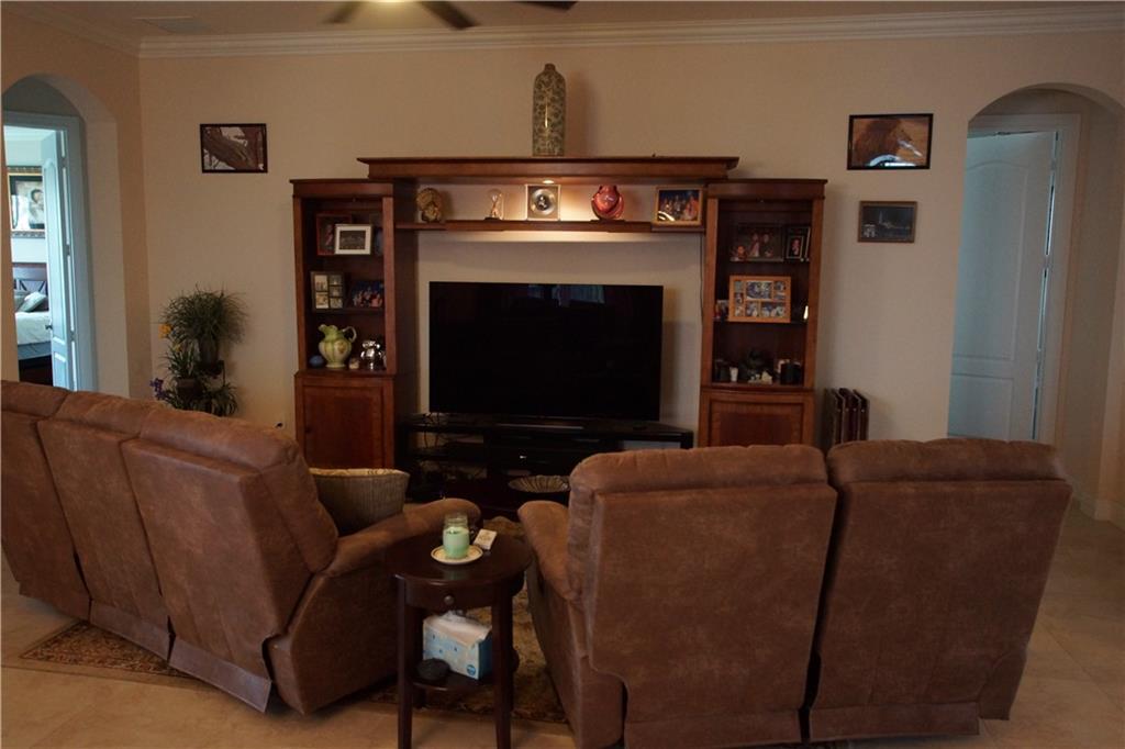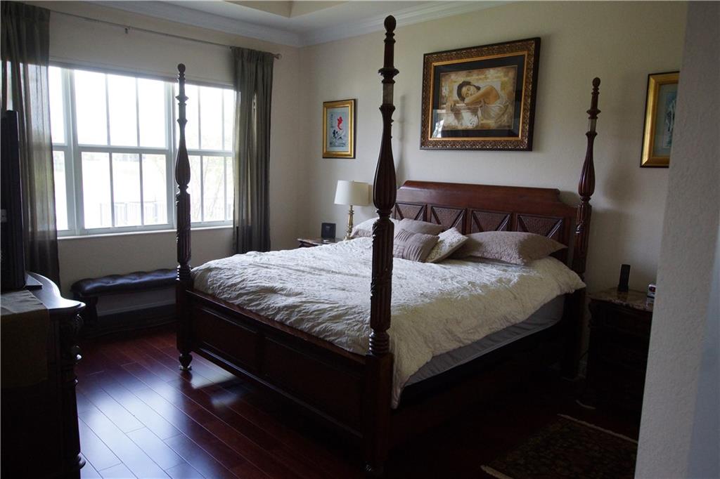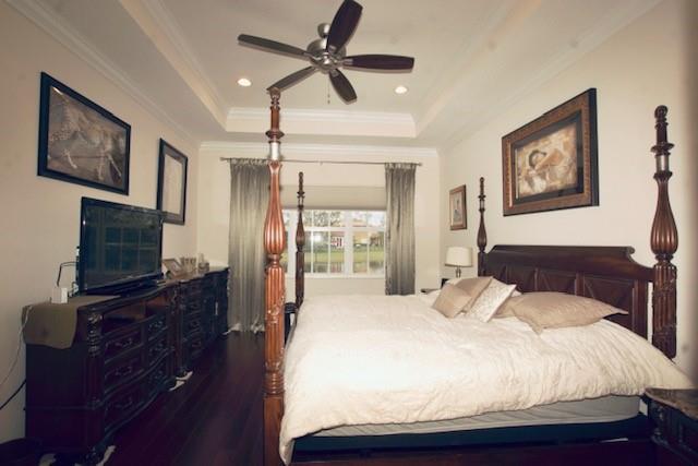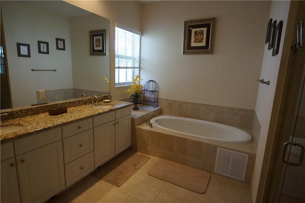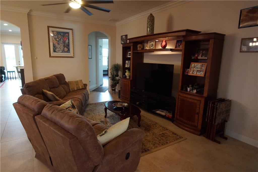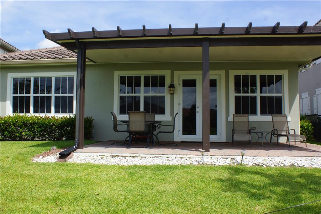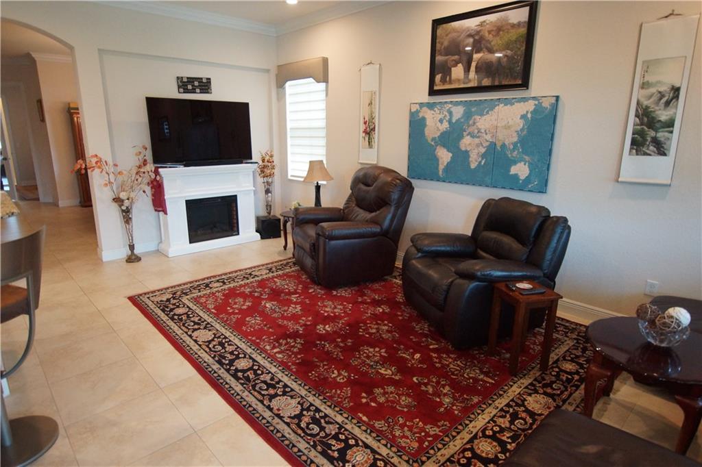 Mira Lago 4 B/R, 3 Bath, 2 Car Garage, Waterfront. Carlyle Model with Stone elevation, Exterior just repainted in June. 42” white kitchen cabinets with glass fronts, granite counters/backsplash, just added ductless range hood and stainless island counter tile, 30 cu ft Samsung refrigerator and 5 burner gas cooktop. 20” porcelain tile and Brazilian Cherry wood flooring in all bedrooms. Large master suite offers 2 walk-in closets, glass-enclosed shower with NEW upgraded Shower Massage Panel & Jacuzzi Roman tub. Crown molding throughout. French doors on office (4th b/r). All impact windows and glass front door! 12x24 Pergola attached to relax on great view of the lake. Gas for cooking, dryer and tankless hot water heater. Buyer to pay one time Capital Contribution of $1,000 to HOA at closing
