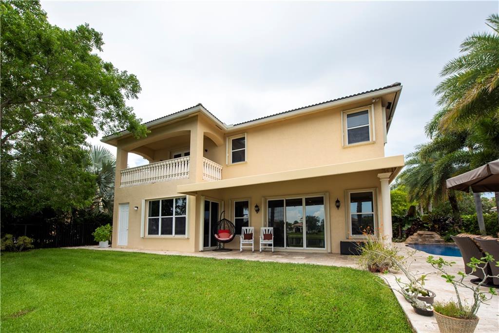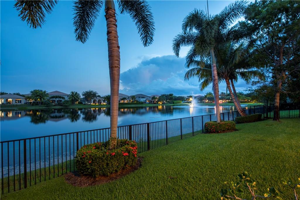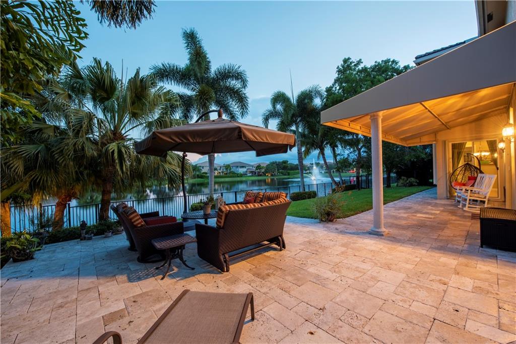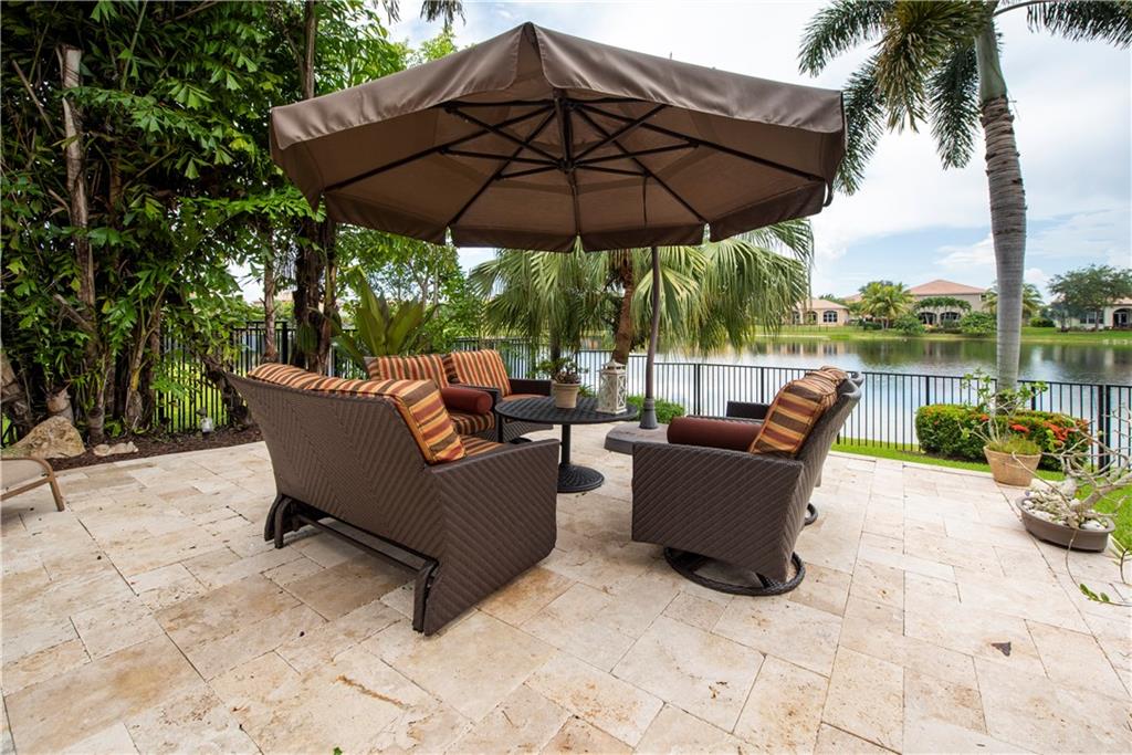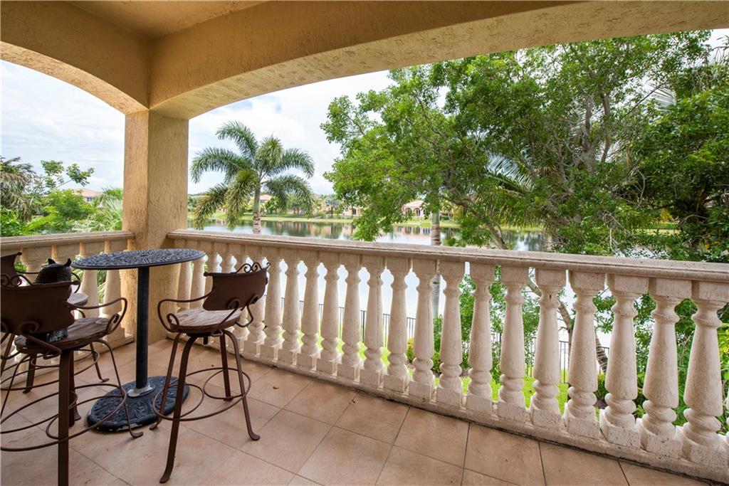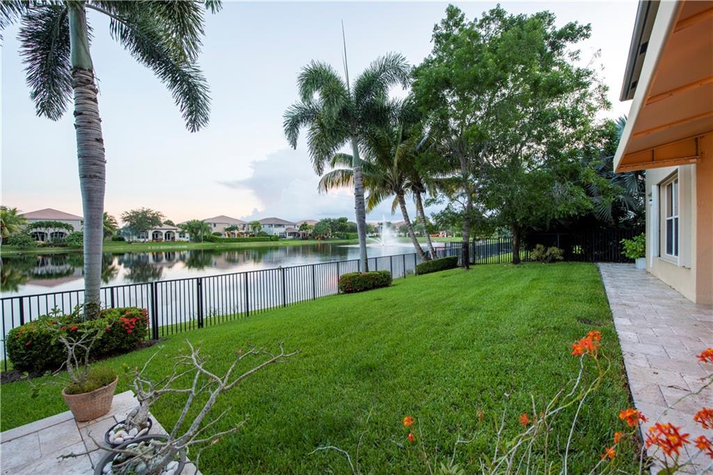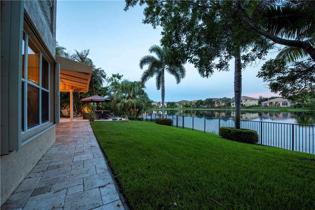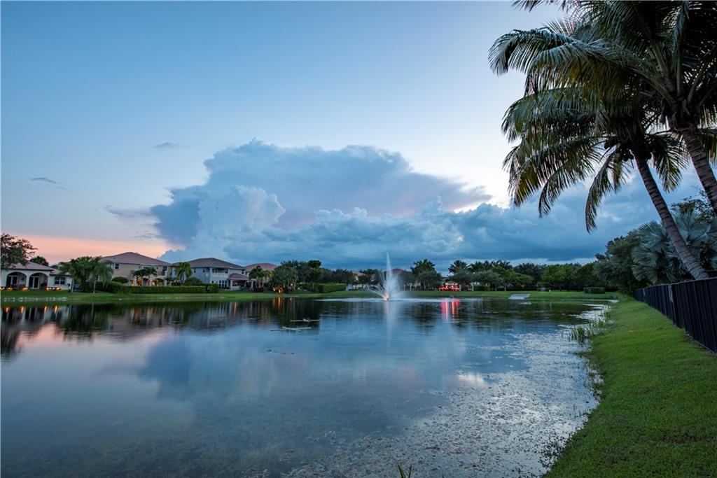 Elegant 6 bedroom, 4.5 bath, huge waterfront beauty with waterfall pool, patio & beautiful lawn overlooking lake & fountain. Largest 2-story model w/ soaring ceilings & foyer featuring a stunning circular staircase foyer with wrought iron hand rail & gorgeous wood floors. A regal living room, dining room, & gourmet kitchen with butler pantry all highlight this spectacular entertaining home. A large ensuite 6th bedroom, family room & extra den round out the lower living area. Upstairs is an expansive master suite w/ double vanity bath, office, & large private balcony over-looking the lake...along with an additional 4 bedrooms/office. Lush landscaping/lighting, SWAT mosquito system & solar-heated saltwater pool make for resort living! Full accordion shutters. Private, gated w/ A schools.