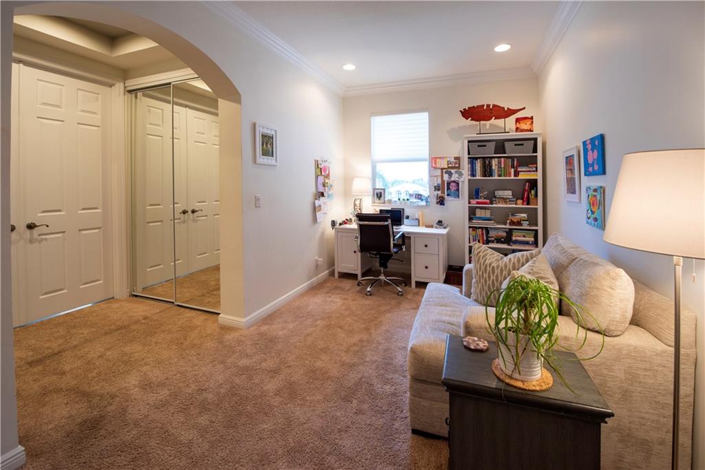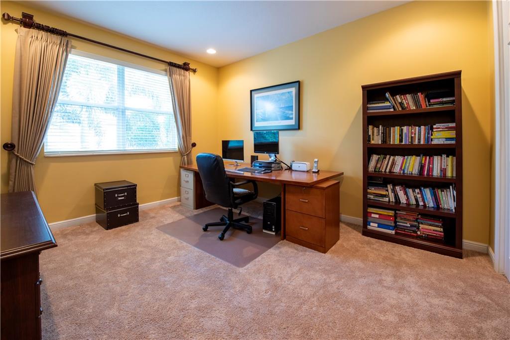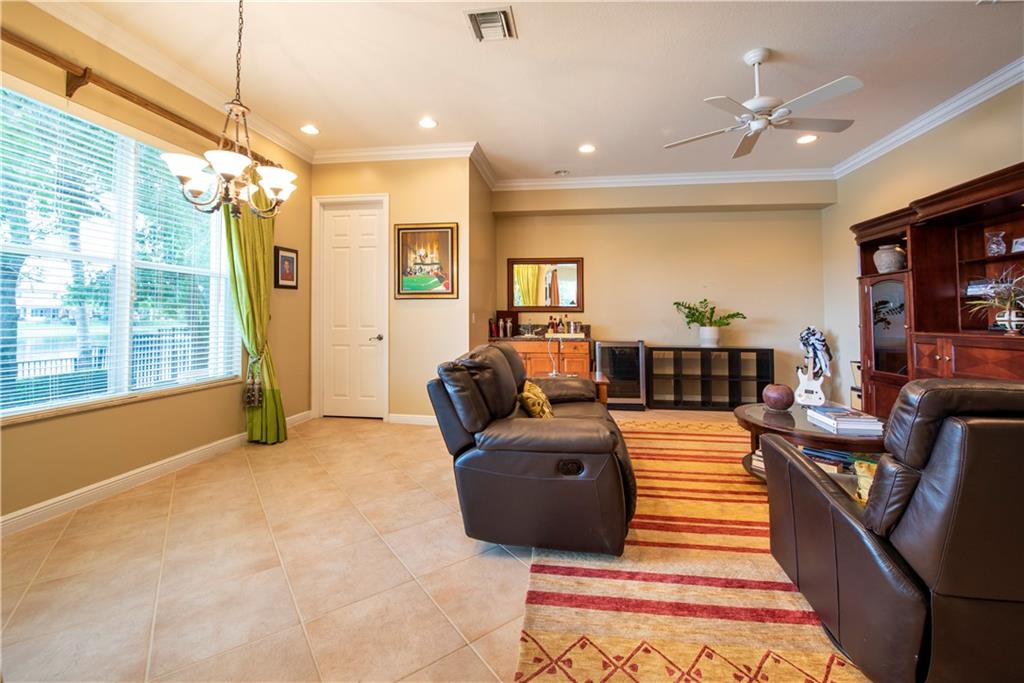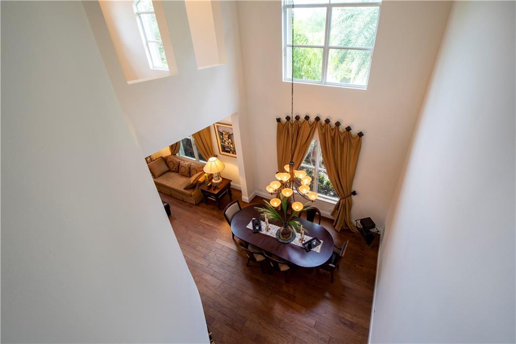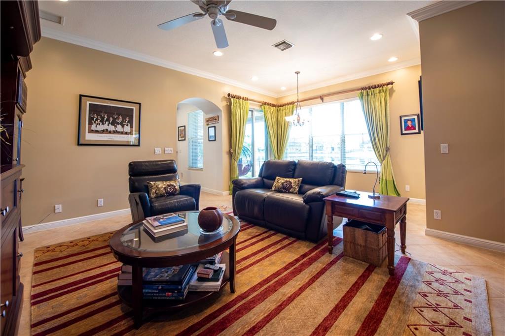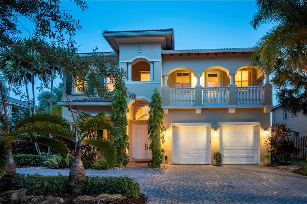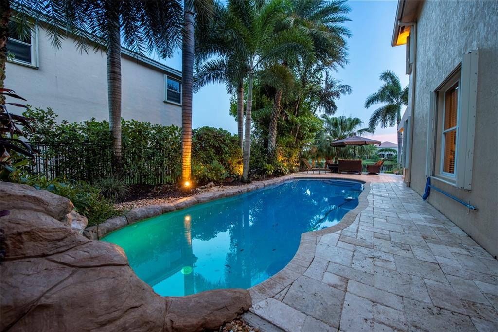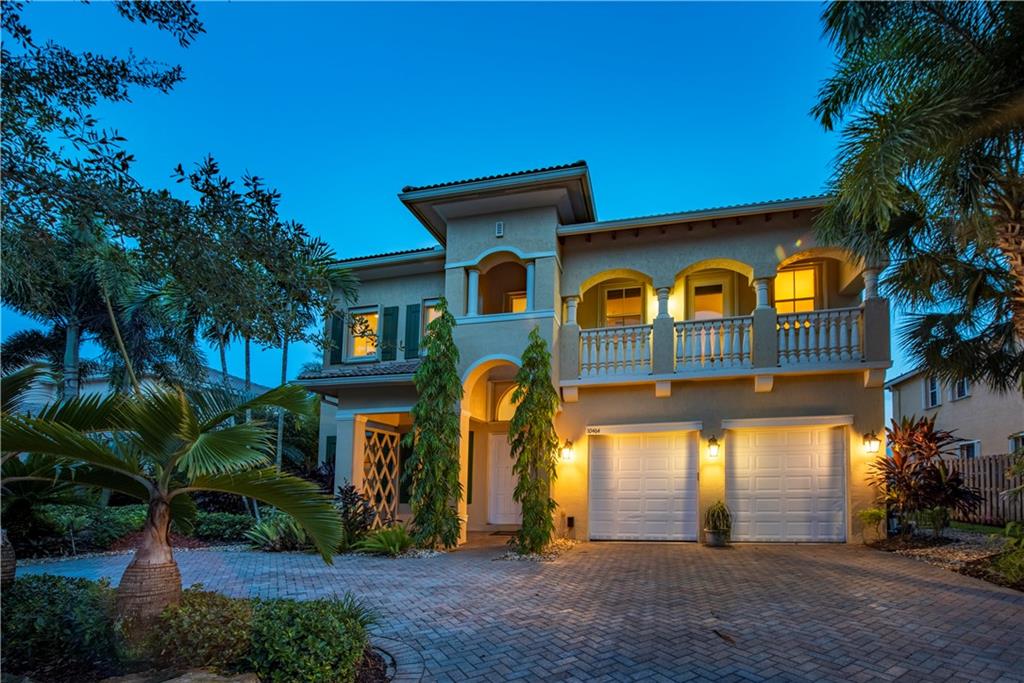 Elegant 6 bedroom, 4.5 bath, huge waterfront beauty with waterfall pool, patio & beautiful lawn overlooking lake & fountain. Largest 2-story model w/ soaring ceilings & foyer featuring a stunning circular staircase foyer with wrought iron hand rail & gorgeous wood floors. A regal living room, dining room, & gourmet kitchen with butler pantry all highlight this spectacular entertaining home. A large ensuite 6th bedroom, family room & extra den round out the lower living area. Upstairs is an expansive master suite w/ double vanity bath, office, & large private balcony over-looking the lake...along with an additional 4 bedrooms/office. Lush landscaping/lighting, SWAT mosquito system & solar-heated saltwater pool make for resort living! Full accordion shutters. Private, gated w/ A schools.