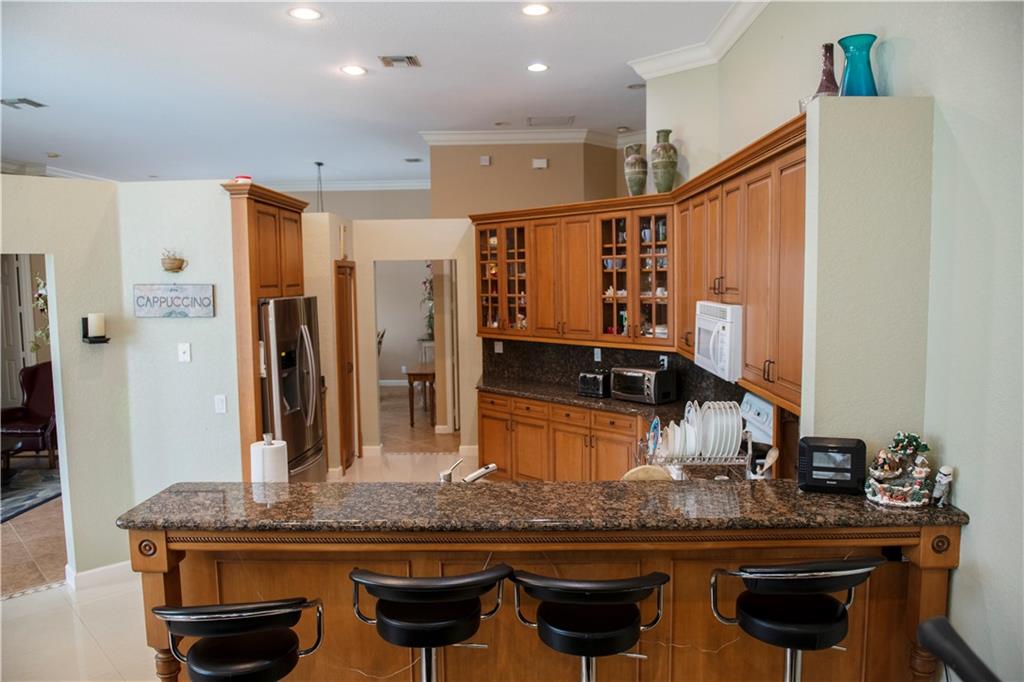 Beautiful Home in the Gated Community of Pelican Isle features an Open, Airy Floor Plan that overlooks a Beautiful Pool & Lake. Home features Four Bedrooms plus a Den/ Office, Large Formal Dining & Living Room, and a Triple Split Bedroom Plan. Kitchen boasts Wood Cabinets, Granite Counters, Counter Seating and Breakfast area open to the Large Family Room along with the view of the pool & Lake. Spacious Master Bedroom also overlooks the pool and water and has two large walk in closets. Master Bathroom features Dual Sink Vanities, Linen closet, Roman Tub and Separate Enclosed Shower. Guest Suite has it's own private Bath and exterior door to the private wood deck that overlooks the water. The two other Bedrooms share a Bath. High Volume Ceilings and Neutral Flooring throughout.
