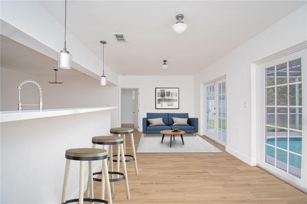 Totally redone from top to bottom new roof, new a/c, new h/w heater, new appliances, all new kitchen with quartz counters and stainless steel appliances, stainless sink, eat in area, overlooks family room with doors out to pool.One bedroom could be in law suite or au pair Wood look tile throughout. All new lightings and hi hats in kitchen. Wall oven and microwave. All new baths and walk in showers with cabana bath to pool. Fenced yard and additional road behind home with entry and additional parking in back. So many extras must be seen to appreciate. Close to schools and shopping. Seller in process of getting hurricane shutters for all windows and doors.