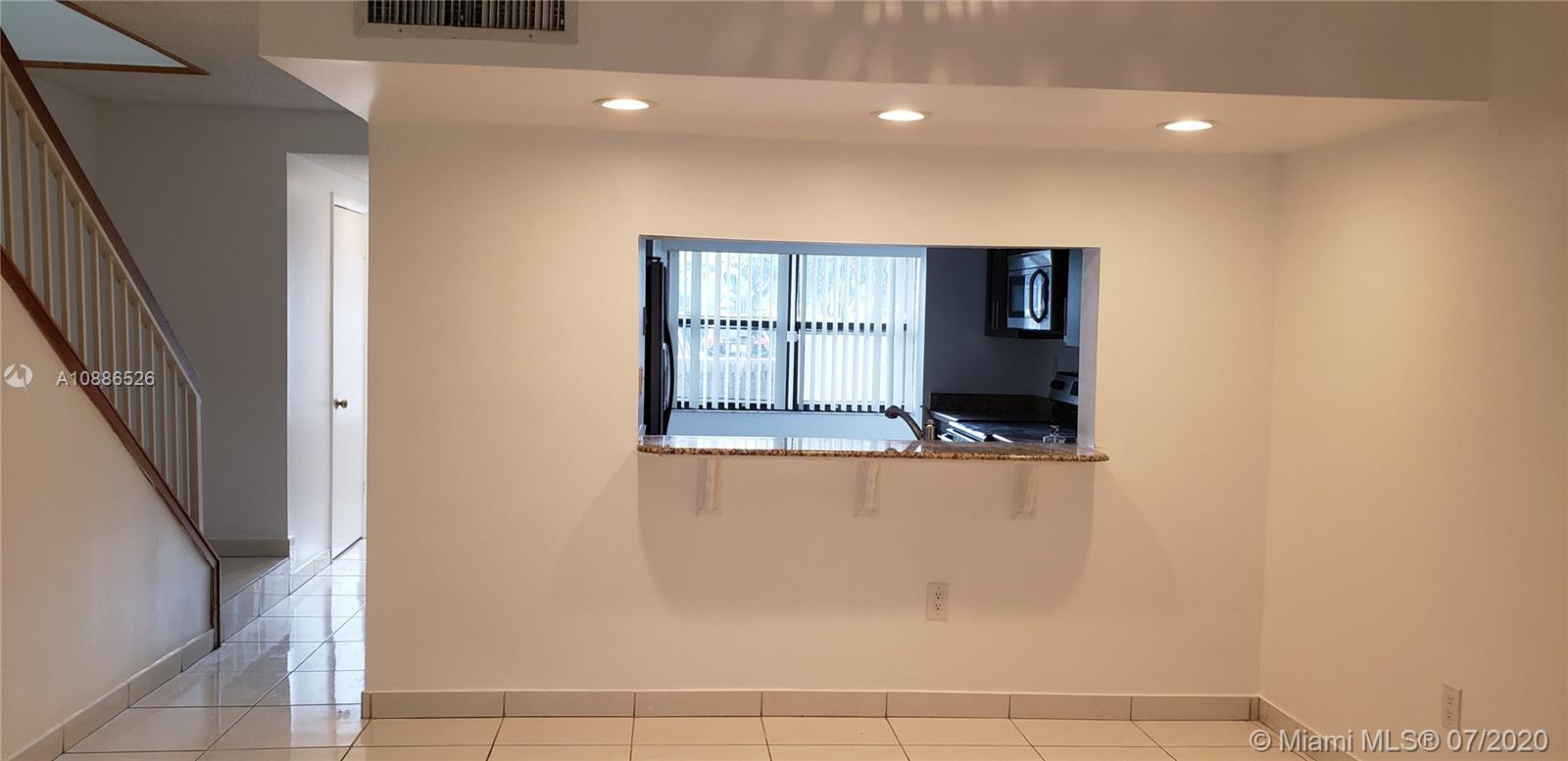 Gated Villas of Amberwood! Nice location, 2 story, 2 bedrooms and 2 1/2 baths. Townhome has over 1,350SF, updated kitchen with bar counter opening up to the Dining and Living room! The unit has been freshly painted, tile. Window Shutters. The washer/dryer are in the upstairs hallway. The living room has sliding glass doors that open to the patio & green belt area. The unit has its own reserved parking space near the front door.
