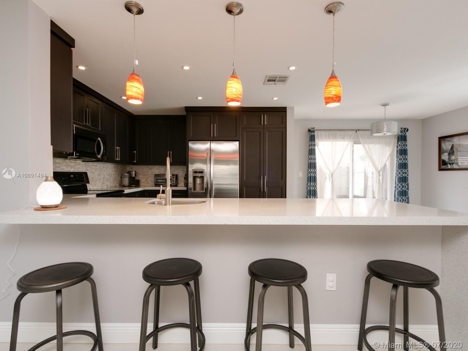 Open, Modern & Spectacular 3 Bedroom 2 1/2 Bathroom two-story townhome in Pembroke Pines. The ground floor has new 32in porcelain tiles. The remodeled kitchen is breathtaking with Stainless Steel appliances, quartz countertops, & endless space to move around, cook and entertain! The sliding doors lead to the private brick-layered area with a storage unit. Perfect for BBQ’s or relaxation. The Master suite is very spacious with two closets! The upstairs also has new laminate floors. This home is also fitted with accordion shutters.Images townhomes is a tranquil community with a community pool and plenty of guest parking with a very low maintenance fee! Location is ideal near shops, restaurants, and more! This beautiful townhouse will not last.