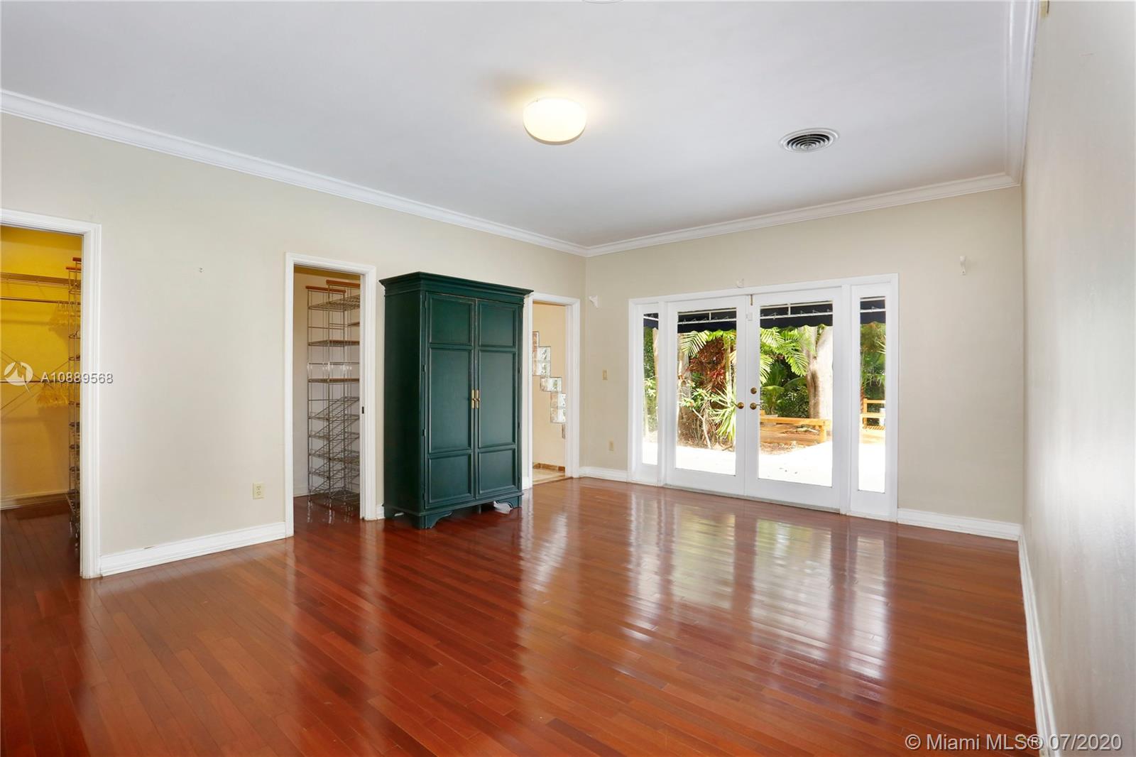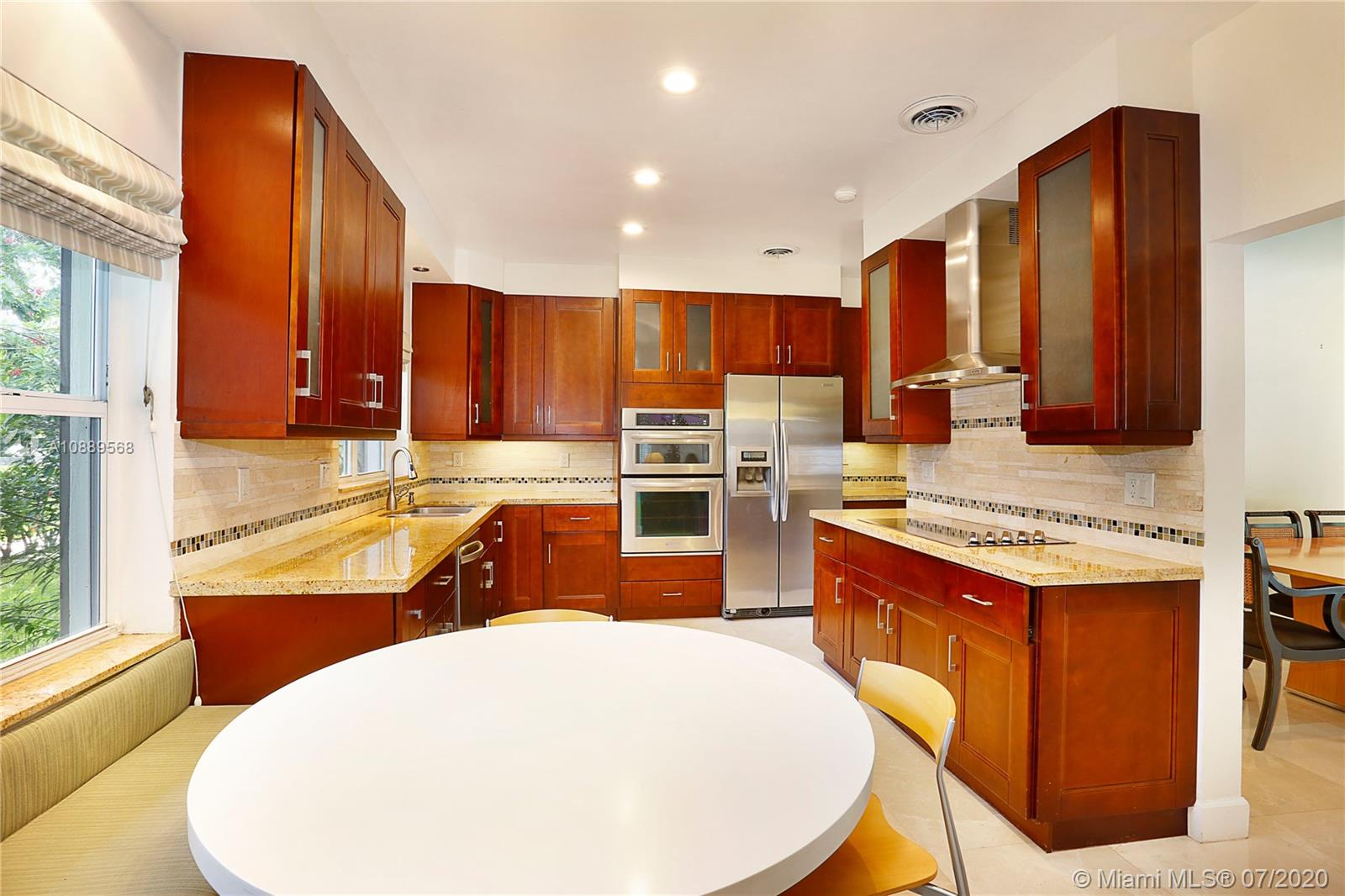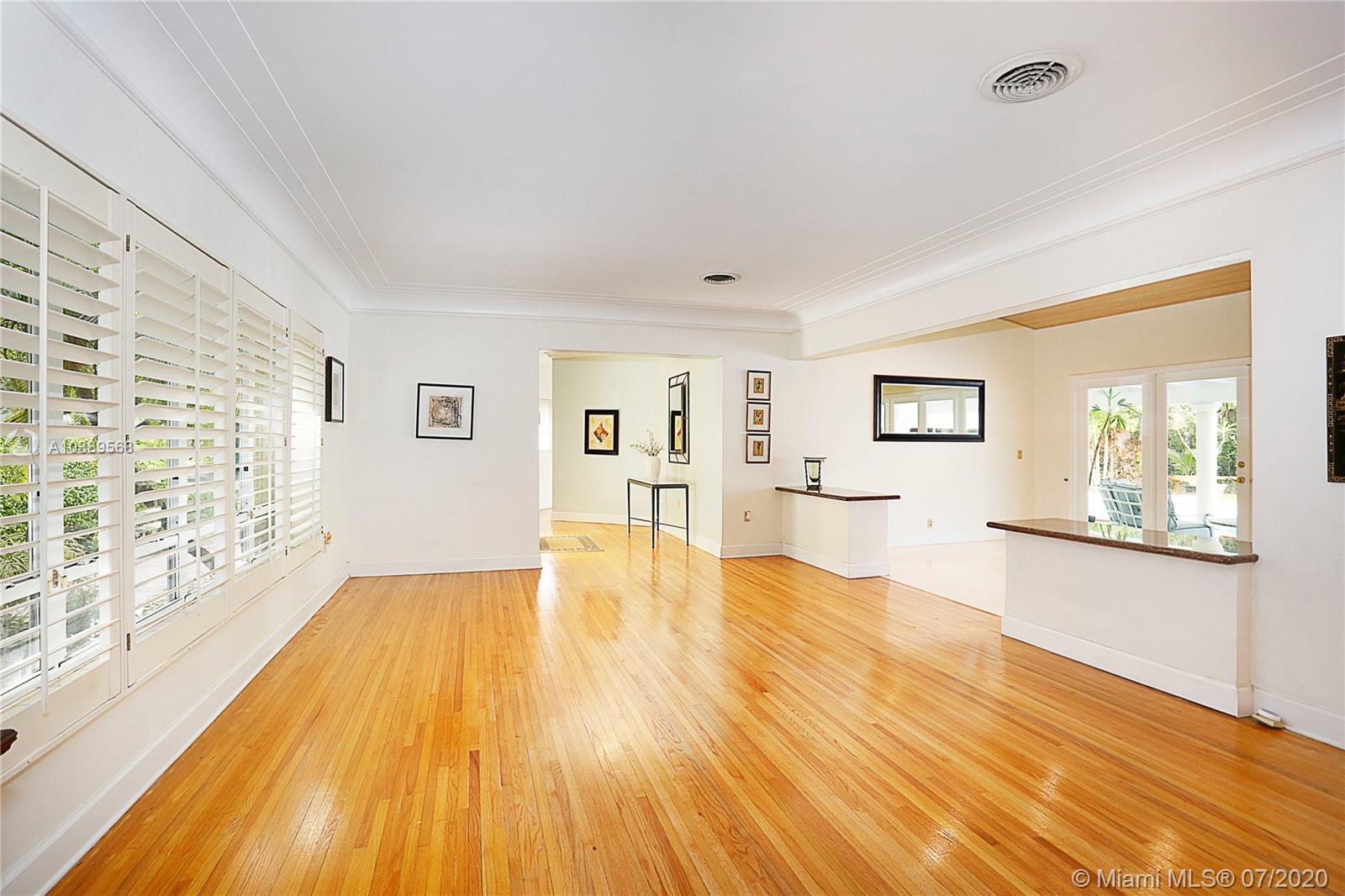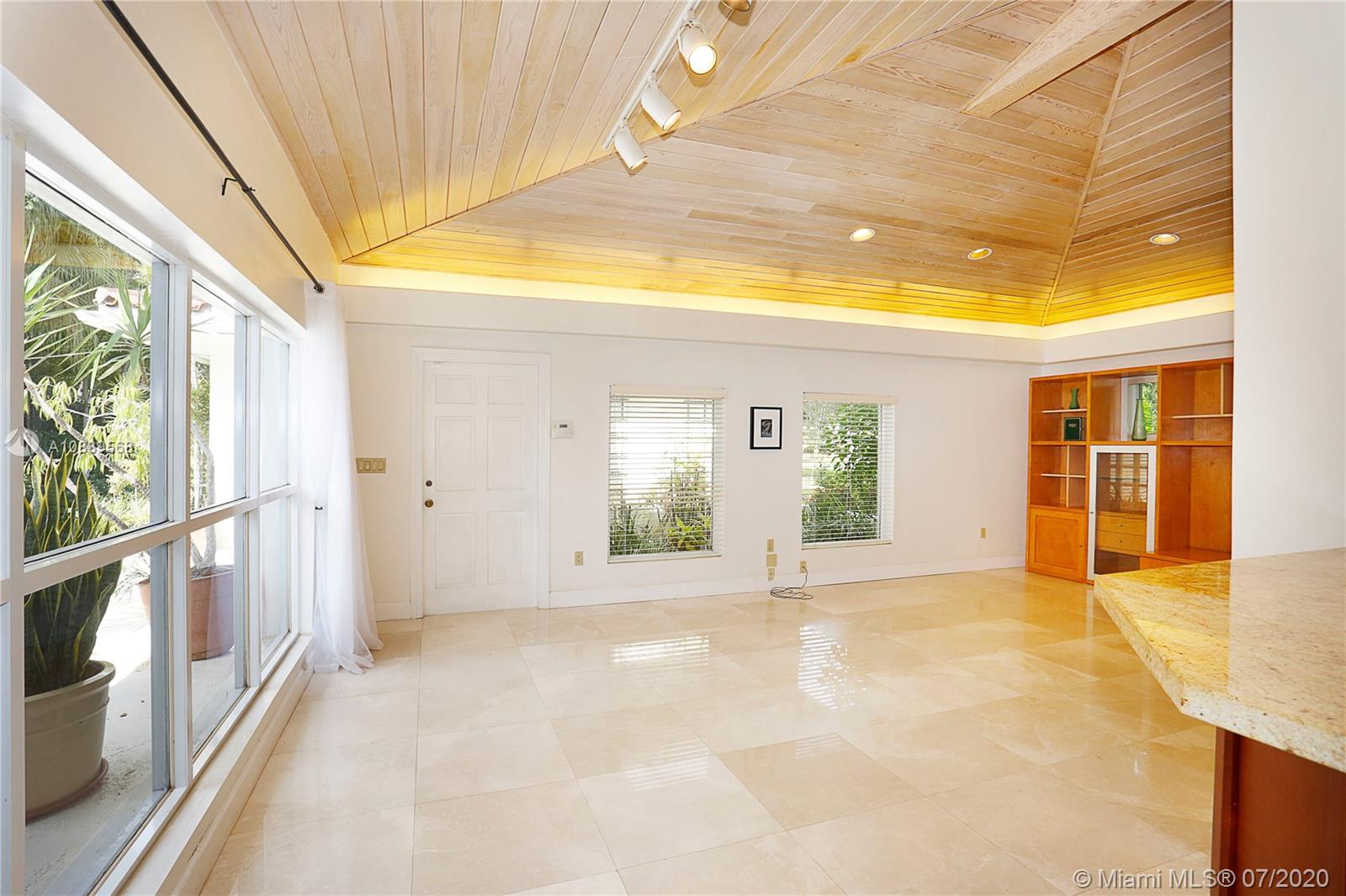 This lovely, spacious, & well maintained 4 bed/4 bath corner home with pool nestled in South Coral Gables sits on a half-acre lot (19,200 sq ft lot). With an open living to dining area featuring wood high ceilings, it naturally flows out to a spacious terrace accessible from many points. Features: marble & wood floors, fireplace, split floor plan, an oversized 2-car garage equipped with an electric vehicle charging station. Updated kitchen with s/s appliances, granite countertops, breakfast nook & an adjacent laundry room. The Family room has a built-in wet bar & an updated bathroom. The Master Suite has 2 large walk-in closets. Two of the bedrooms share a Jack & Jill bathroom. The lush backyard has a built-in deck surrounding beautiful gumbo limbo trees, perfect to relax & entertain.