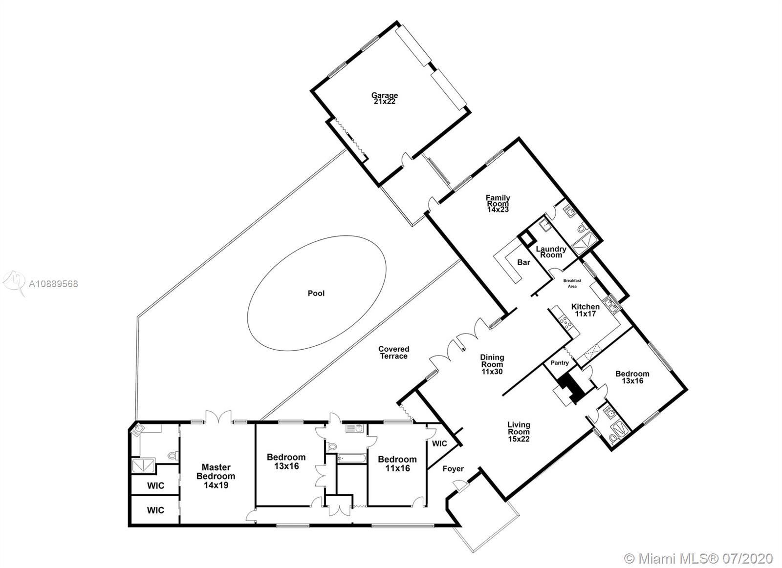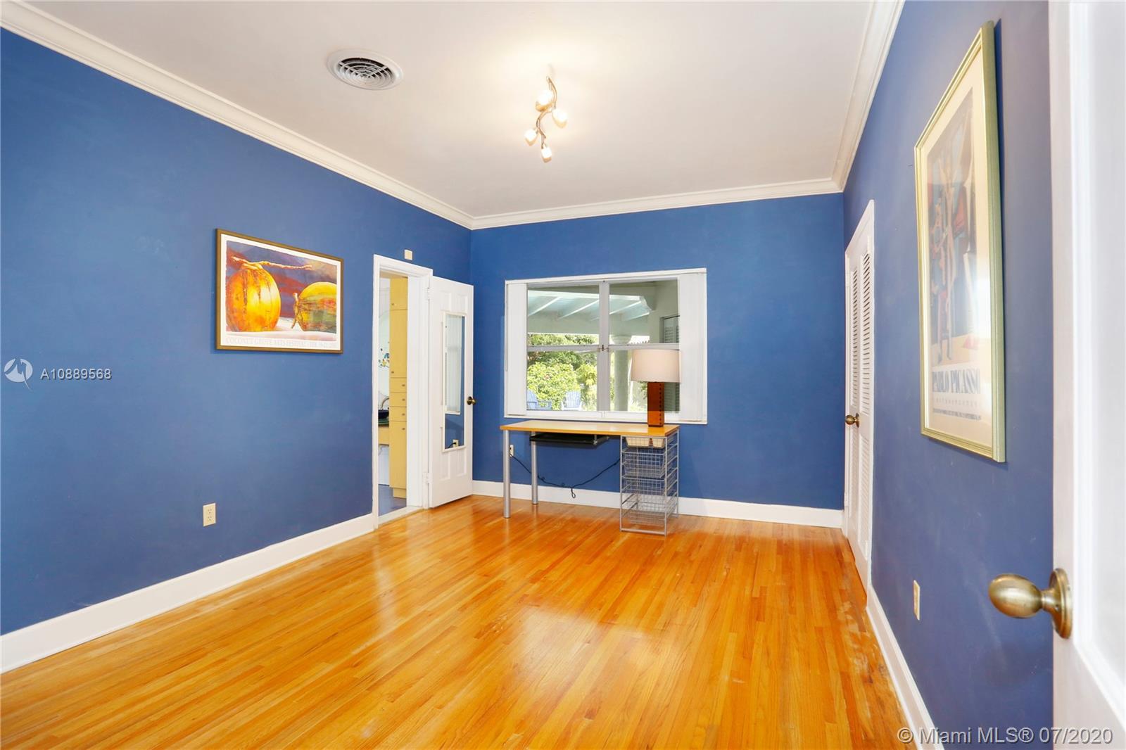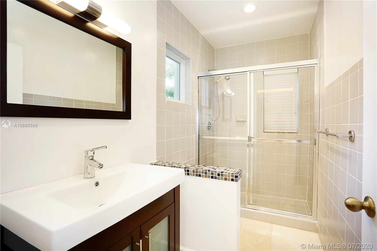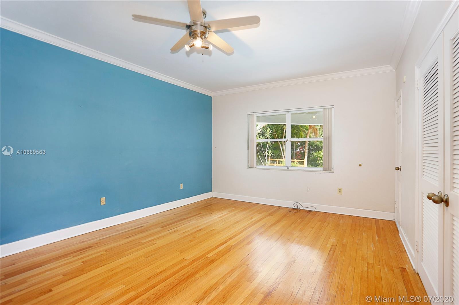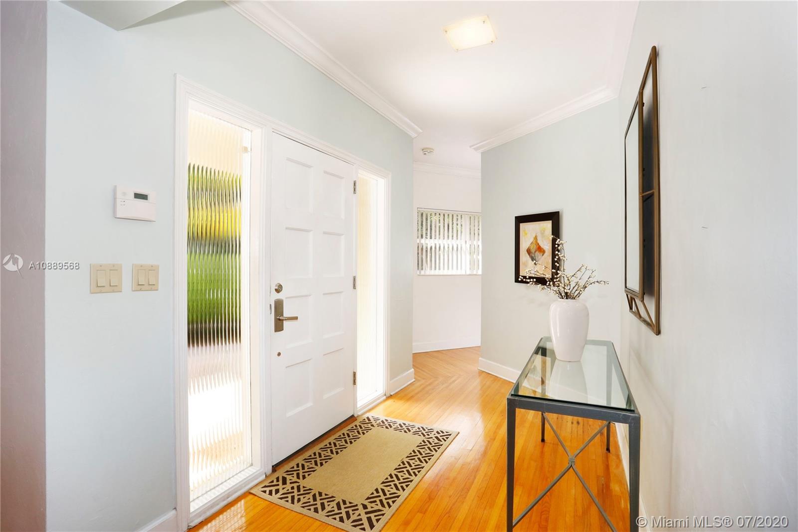 This lovely, spacious, & well maintained 4 bed/4 bath corner home with pool nestled in South Coral Gables sits on a half-acre lot (19,200 sq ft lot). With an open living to dining area featuring wood high ceilings, it naturally flows out to a spacious terrace accessible from many points. Features: marble & wood floors, fireplace, split floor plan, an oversized 2-car garage equipped with an electric vehicle charging station. Updated kitchen with s/s appliances, granite countertops, breakfast nook & an adjacent laundry room. The Family room has a built-in wet bar & an updated bathroom. The Master Suite has 2 large walk-in closets. Two of the bedrooms share a Jack & Jill bathroom. The lush backyard has a built-in deck surrounding beautiful gumbo limbo trees, perfect to relax & entertain.