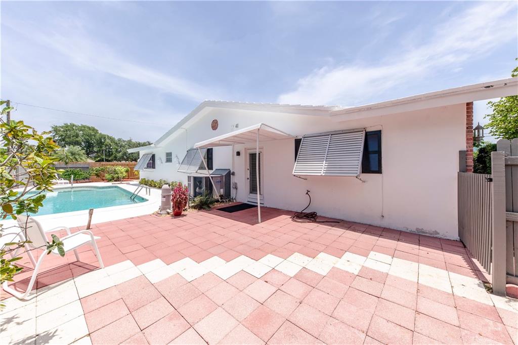 Special Opportunity! One owner home in excellent condition and location. Large corner lot home with four bedrooms, two bathrooms, and inviting 18x34 pool. Lush landscaping and mature trees decorate the exterior. There is a circular drive and a two car garage. (currently converted into a den) When you walk into the home, you enter in the foyer. There is a spacious living and dining area. A central kitchen that connects to the dining area and two family rooms. There is a private office off of the family room. The master bedroom has ample closet space and an upgraded vanity and counter top. There is a shed on the side of the home for tools and projects. Awesome wrap around patio with new awning. Terrazzo floors under the carpeting. Superior floor plan.
