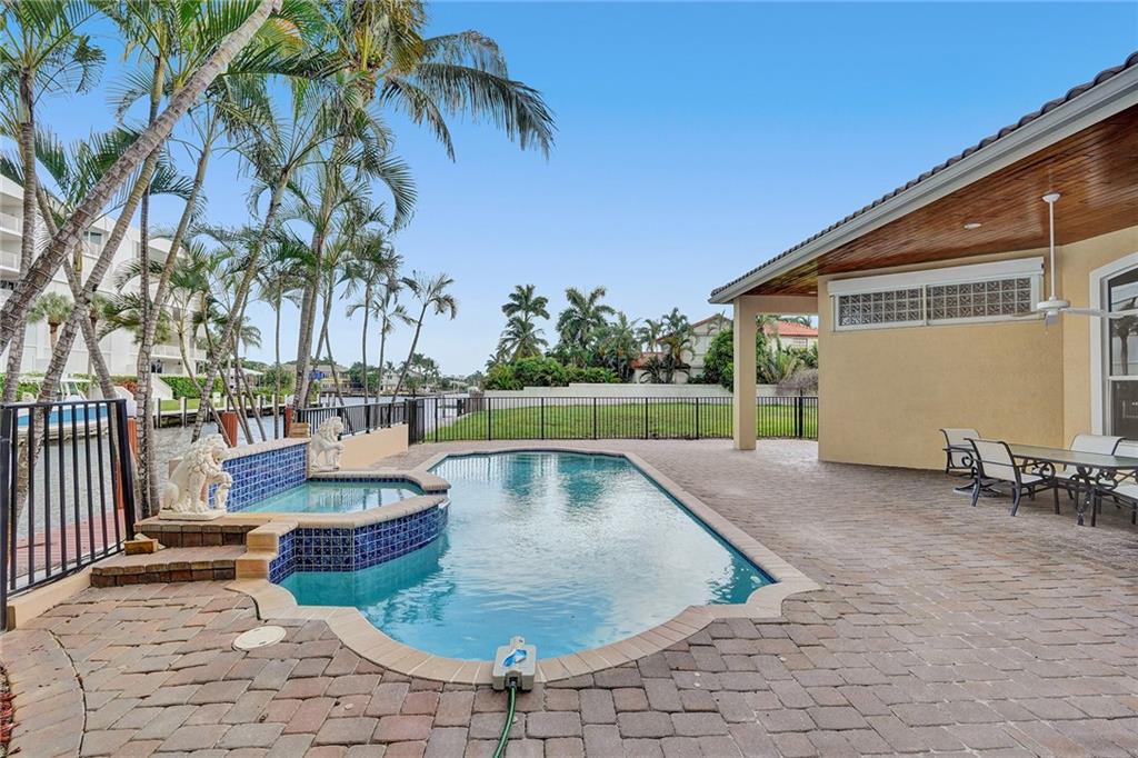Fantastic 6 bedroom 4.5 bathroom waterfront estate in Coral Ridge Country Club built in 2001. 85’ waterfront with no fixed bridges and ocean access and just 2 from the point. Spacious floorplan with volume ceilings, crown molding, marble flooring, impact windows and ample storage space. First floor master suite with beautiful water views, coffered ceilings, walk-in closet and spa-like bath with dual vanities and separate tub and shower. Spacious secondary bedrooms. Large outdoor space with saltwater pool, covered patio and dock. 3 car garage!