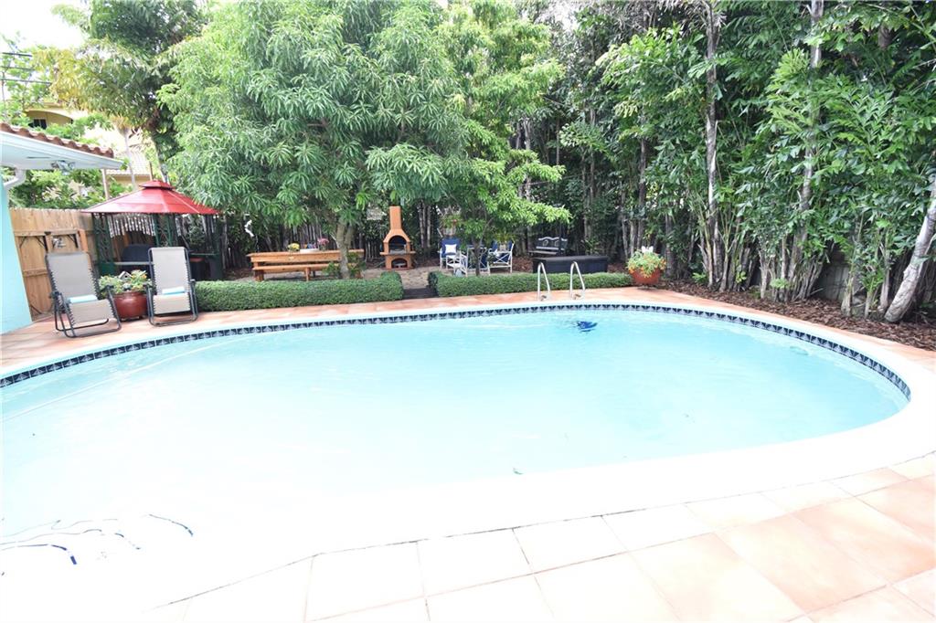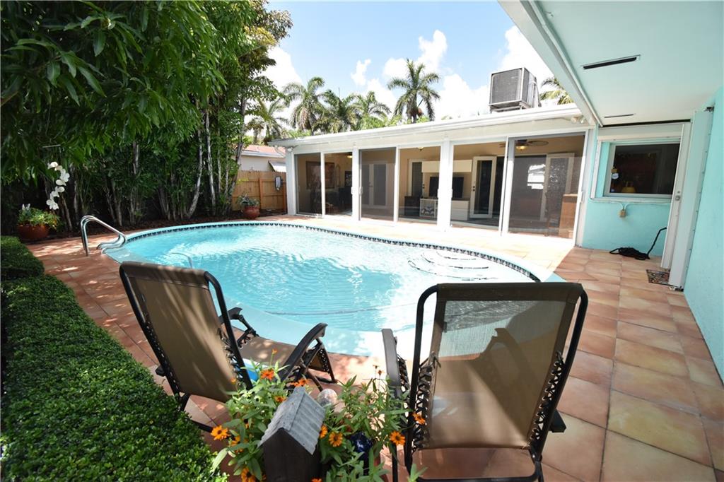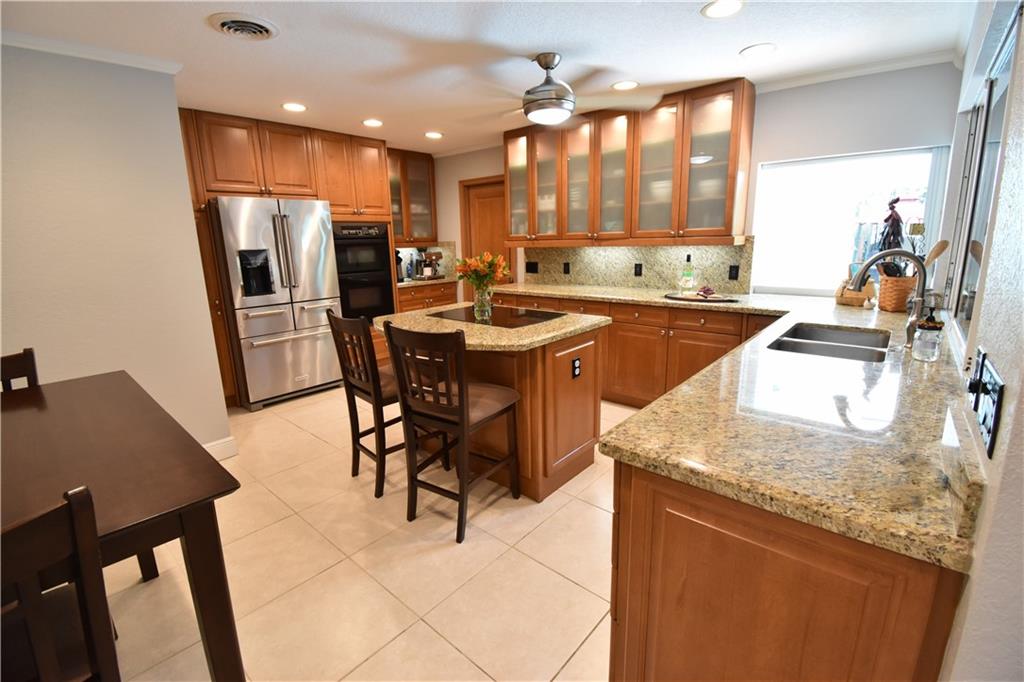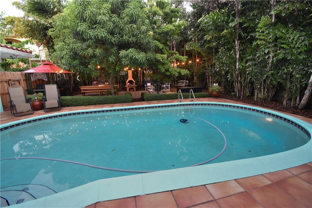 ENTERTAINMENT AND ZEN MASTERPIECE!. See this remarkable home only a few miles from the beach! This home has it all, including a picture-perfect backyard ready for some yoga sessions during the day and some entertaining or peaceful nights in the pool under the stars. Enjoy the outdoor oven and picnic table for family or friends and make some great memories. Mr. and Mrs. Clean live here with an open layout and modern touches with plenty of bright light through the upgraded shutters on all windows. Enjoy upgraded bathrooms and kitchen with granite countertops and cooking island. Relax in your covered and secure patio with impact doors and separate a/c with electric shades and snack bar to the kitchen—great curb appeal with circular driveway in front and one car garage in the back.