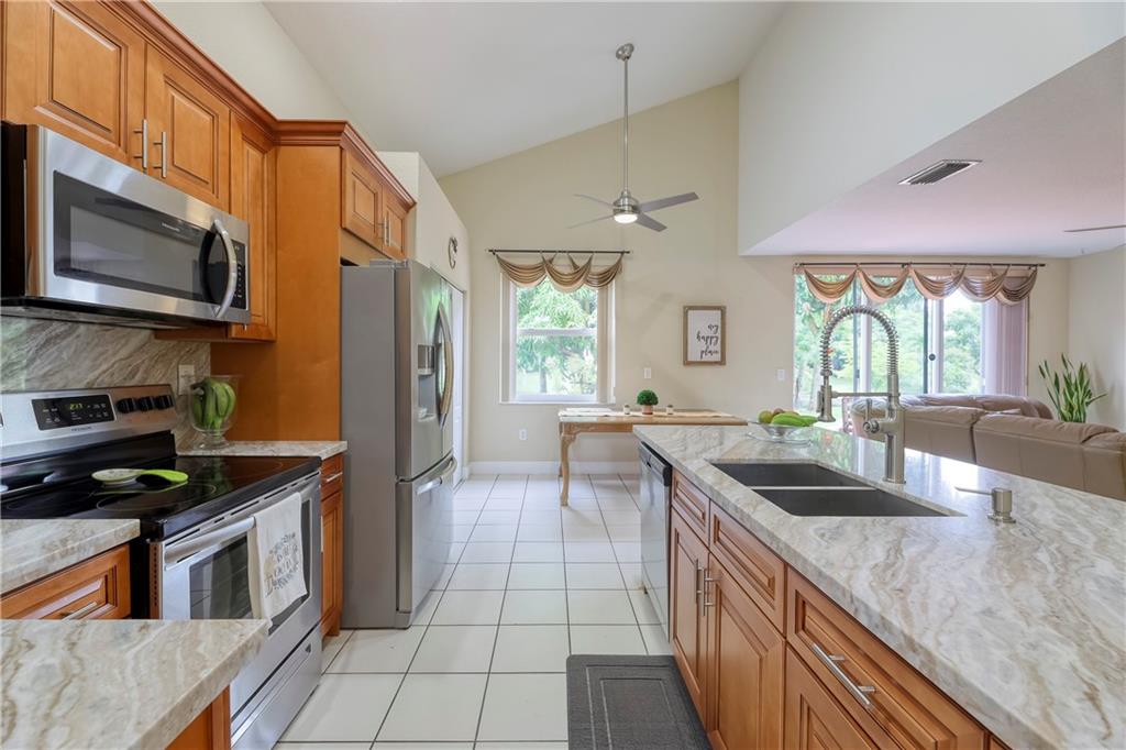 Large, light, bright & updated! Summer Wind in Coral Springs! Tranquil setting on the water w/excellent views from the house, yard & large paver patio deck. This home features beautiful custom cabinetry in the kitchen with spectacular solid surface counter tops & stainless steel appliances. Spacious rooms w/great natural light. Tile flooring throughout the ground floor and laminate flooring upstairs. There is a large bedroom and bathroom on the ground floor as well as the living room, family room, dining area, kitchen with snack counter and full size laundry room. Upstairs features; master suite with separate shower and tub, large master closet and two guest rooms and another full bathroom. Great community, convenient to all major roadways. Accordion shutters and storm panels on property.