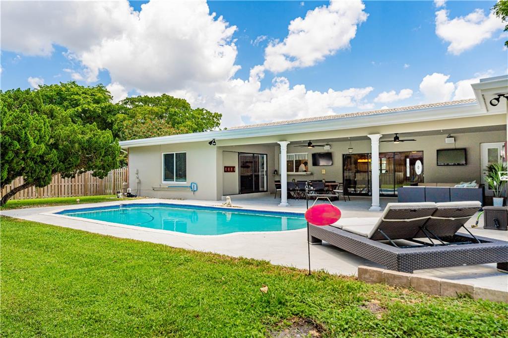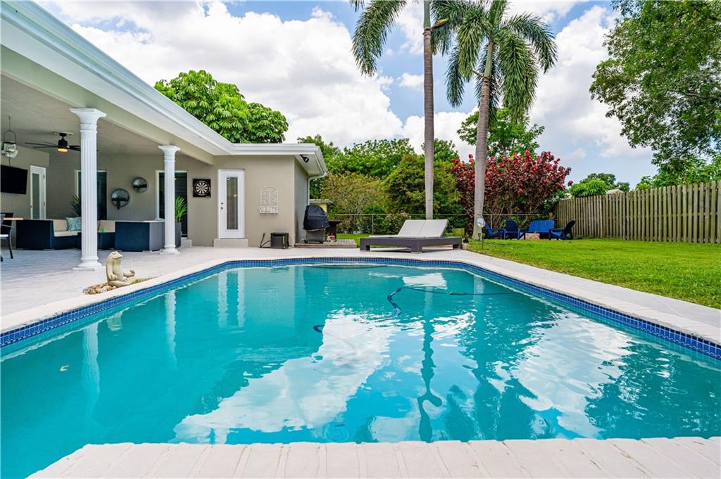 WOW! This 4 Bedroom 2.5 Bathroom home is turn key! On a beautiful corner lot! Home features updated kitchen w/ granite counters, tumbled marble backsplash, wood cabinets, and stainless steel appliances! Gorgeous real Brazilian cherry wood floors throughout the home! Master bedroom is spacious with pool views! All bathrooms updated! Most windows/doors impact glass! Numerous storage closets! Large laundry room is a dream! 2 Bathrooms have cabana doors to pool! Amazing fenced in backyard features spacious covered patio complete with Tvs & fans! Sparkling pool with new diamond brite! Roof replaced 2004. AC replaced 2014. Washer/Dryer: 1 year new! Amazing circular driveway AND additional driveway in front of coverage. Tons of parking! Showings start Saturday 7/18/20 2-4 pm Open House!
