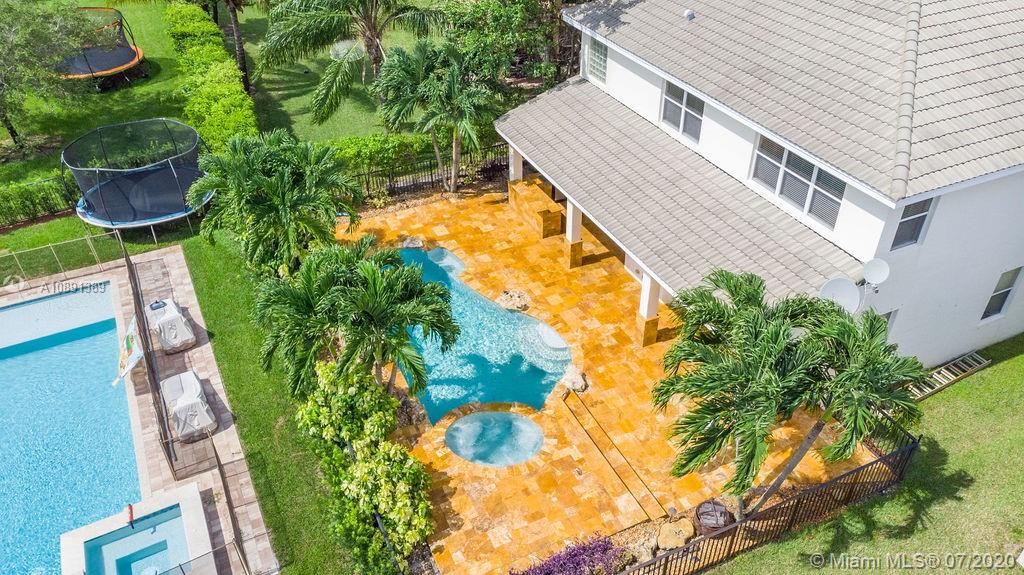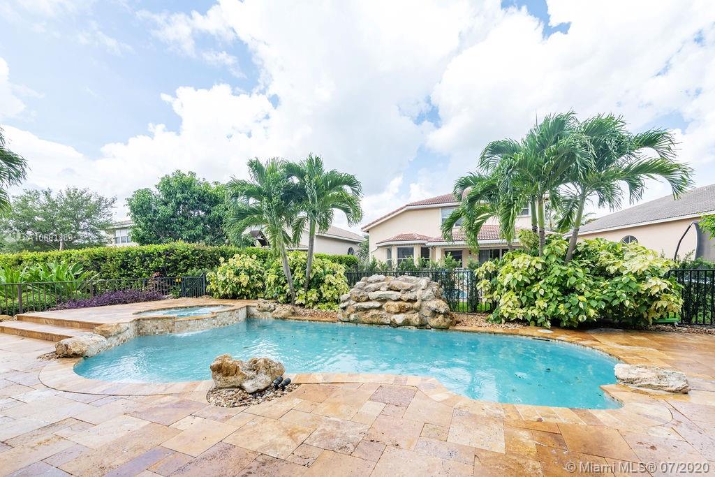 Gorgeous 2007 completely updated 5 bedrooms, 3 bathrooms, + office, bonus room/Gym with closet, Pool and Spa home, located in the desirable guard-gated community of Sunset Falls. Features a Large New Kitchen, with granite countertops, stainless appliances, double oven and wine cooler. Spacious master bedroom with large sitting room, 2 walk-in closets. His and Hers (2) master bathrooms with jacuzzi tub and shower. New Washer and Dryer. Two a/c (inside) units installed in 2018 and 2019 with Nest thermostats. Extended driveway parks 5 cars. Beautiful pool with waterfall, spa, and travertine patio with outdoor kitchen. Community offers guard gate, tennis, basketball, community pool, clubhouse, and playground. Home faces East.