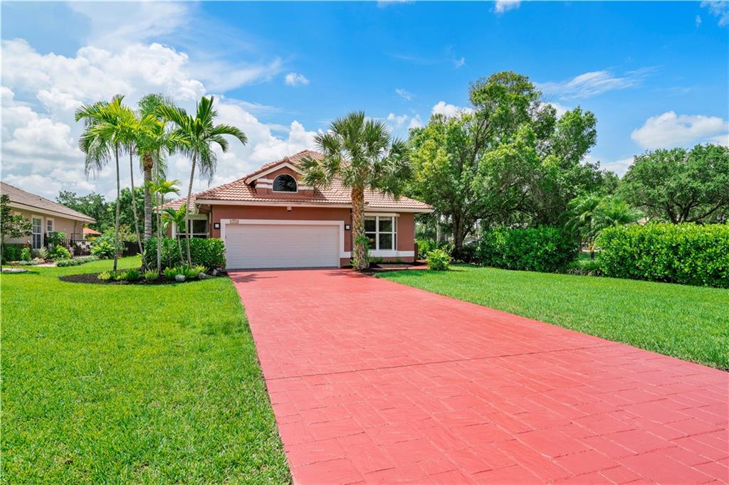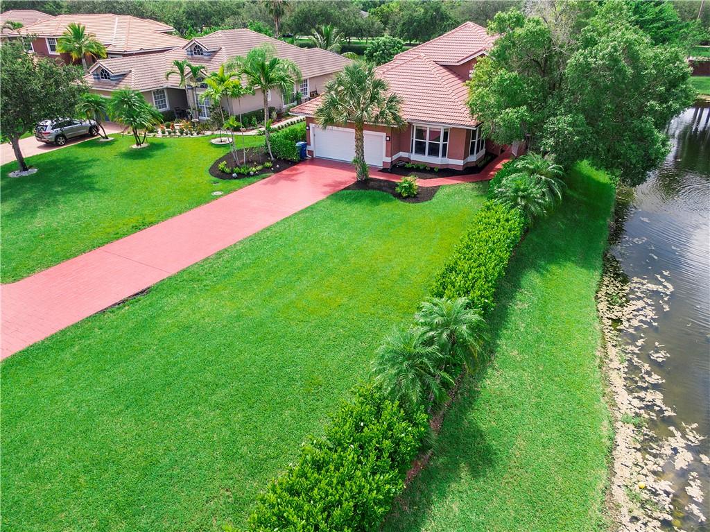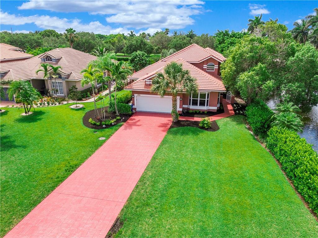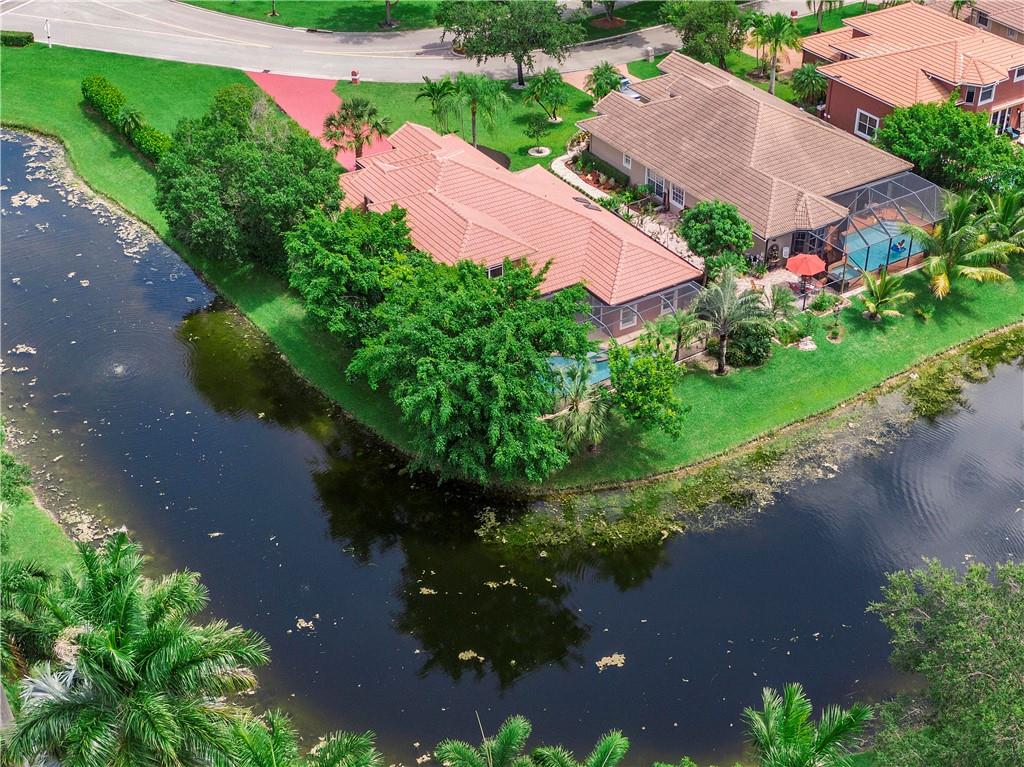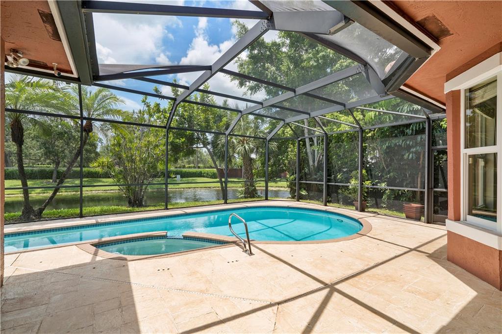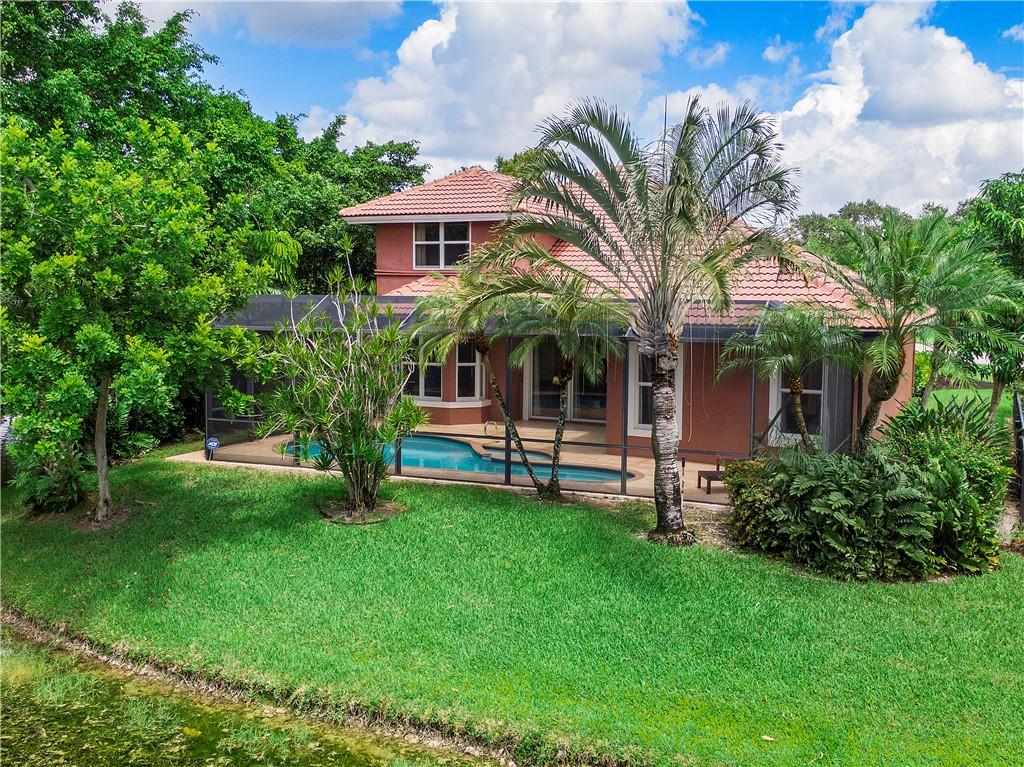 Impact windows throughout 3000 sq. ft of living area. South facing backyard on wide waterway. Heated pool & spa, child fence & dome screen enclosure. Master + large bedroom/bath downstairs. Versatile floor plan, big rooms, tons of large closets. Two big bedrooms upstairs with full bath & loft area. Updated kitchen, baths, contemporary window treatments, fixtures & fans. Roof 2010, two newer ac systems. 24-hour manned guard gates, community tennis & play ground. Walk to shopping, Exceptional value.