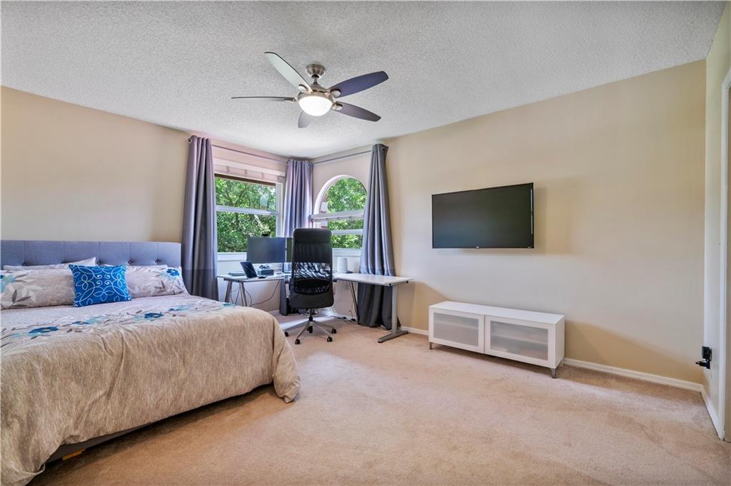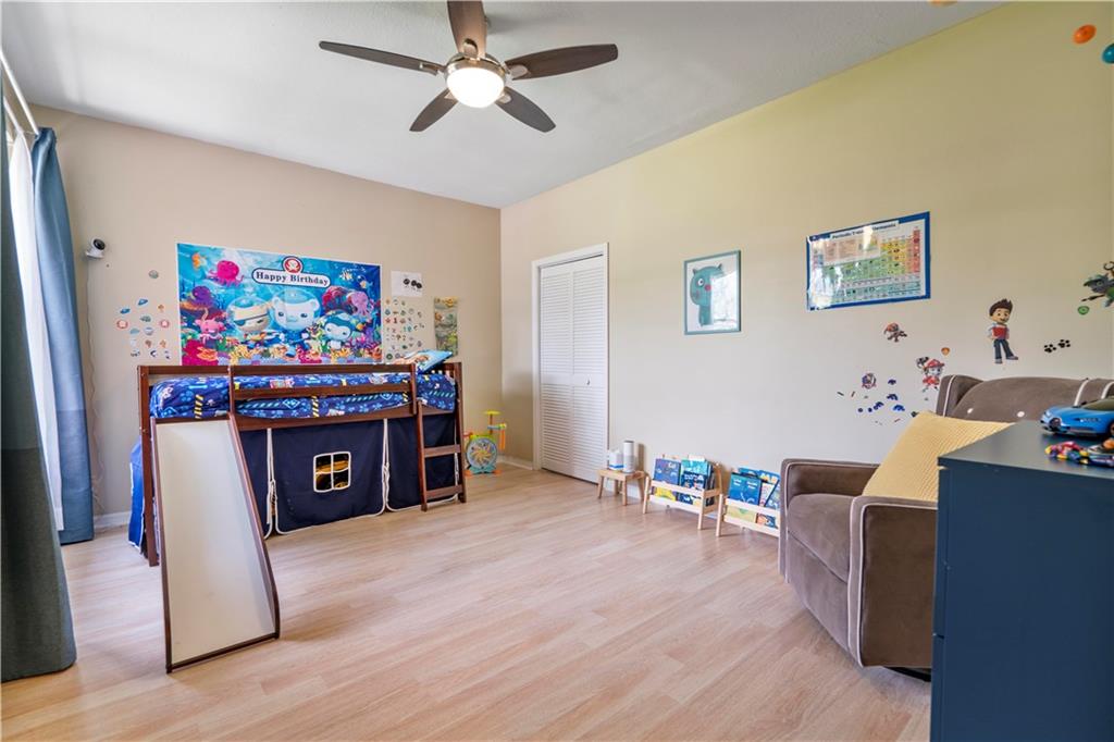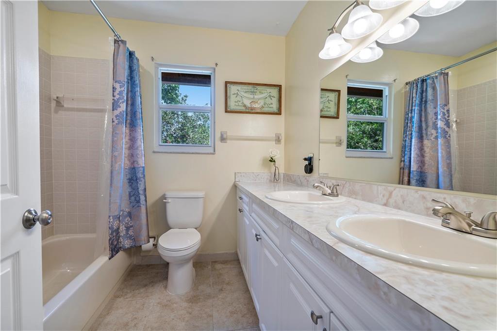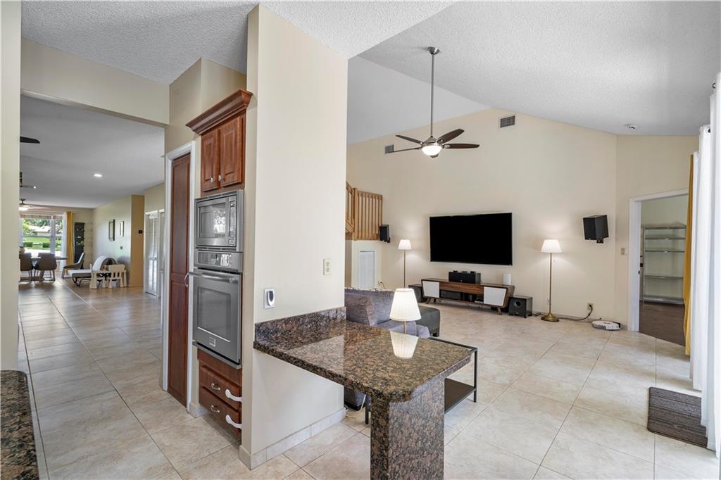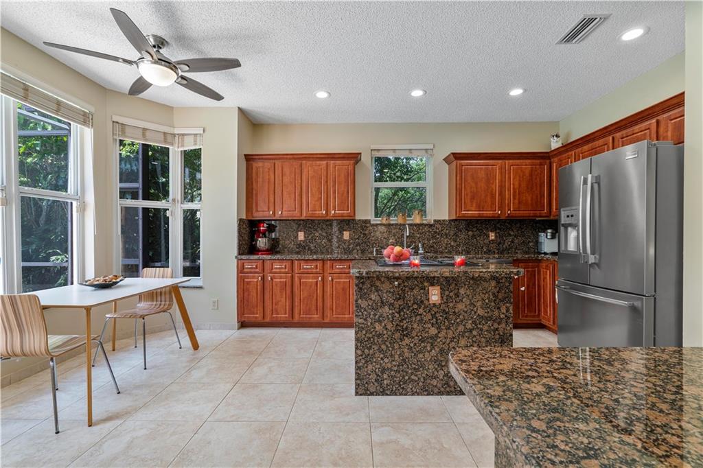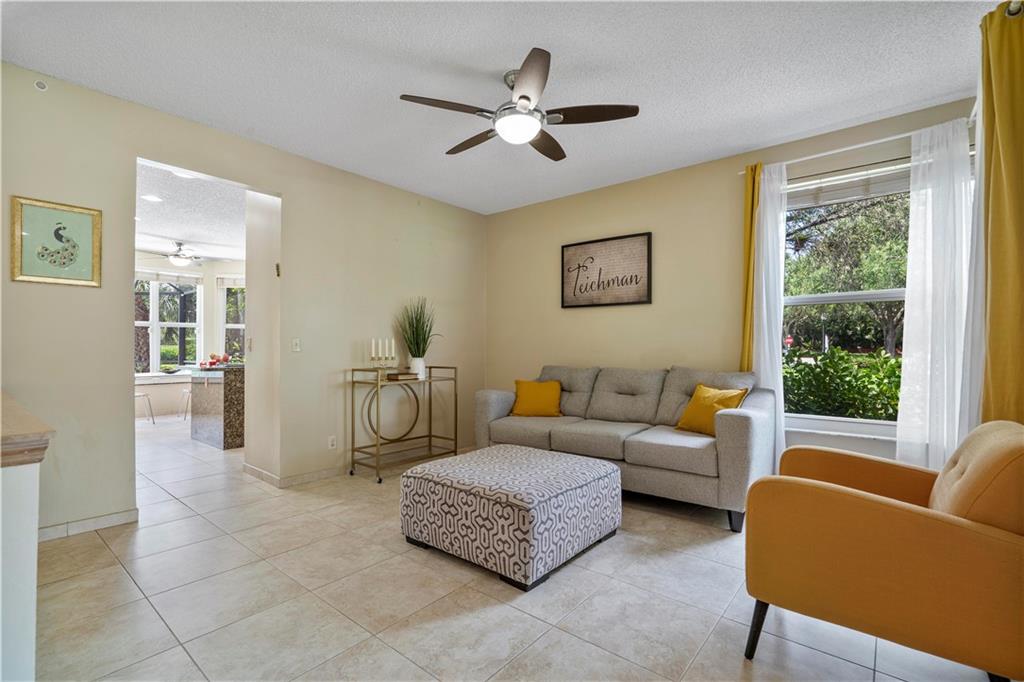 Impact windows throughout 3000 sq. ft of living area. South facing backyard on wide waterway. Heated pool & spa, child fence & dome screen enclosure. Master + large bedroom/bath downstairs. Versatile floor plan, big rooms, tons of large closets. Two big bedrooms upstairs with full bath & loft area. Updated kitchen, baths, contemporary window treatments, fixtures & fans. Roof 2010, two newer ac systems. 24-hour manned guard gates, community tennis & play ground. Walk to shopping, Exceptional value.
