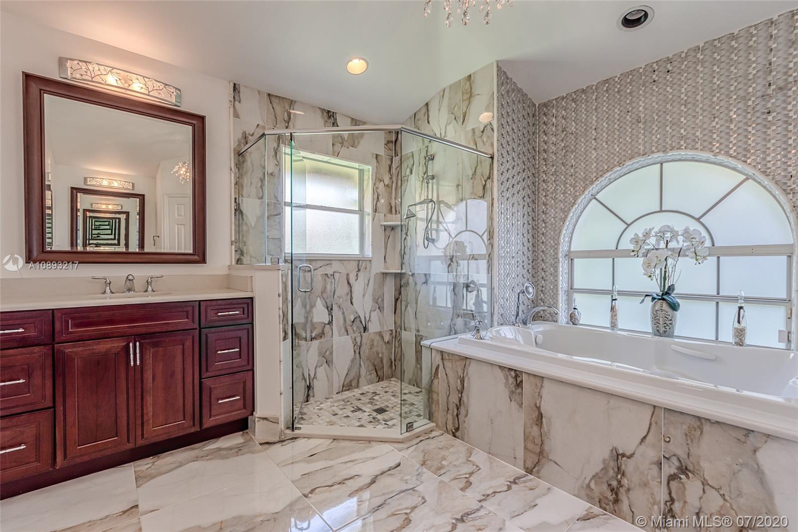 THIS GEM HAS BEEN FULLY UPGRADED WITH POLISHED PORCELAIN TILE FLOORS THROUGHOUT, GRANITE COUNTERS AND NEWER CABINETS IN THE KITCHEN, TOP OF THE LINE SS APPLIANCES, ROOF 5 YEARS OLD, AN EXQUISITE MASTER BATHROOM, HEATED POOL...THE SELLER HAS BEEN REMODELED FROM A TO Z . THIS IMPECCABLE HOME HAS AN OPEN FLOOR PLAN WITH A FORMAL LIVING ROOM, DINING ROOM, AND FAMILY ROOM THAT CONNECTS TO THE KITCHEN, AND A SPLIT BEDROOM CONCEPT. THE BACKYARD IS PERFECT FOR ENTERTAINING WITH A WIDE OPEN DECK AREA WITH A HEATED POOL. THIS JEWEL OF A HOME WILL SELL ITSELF!