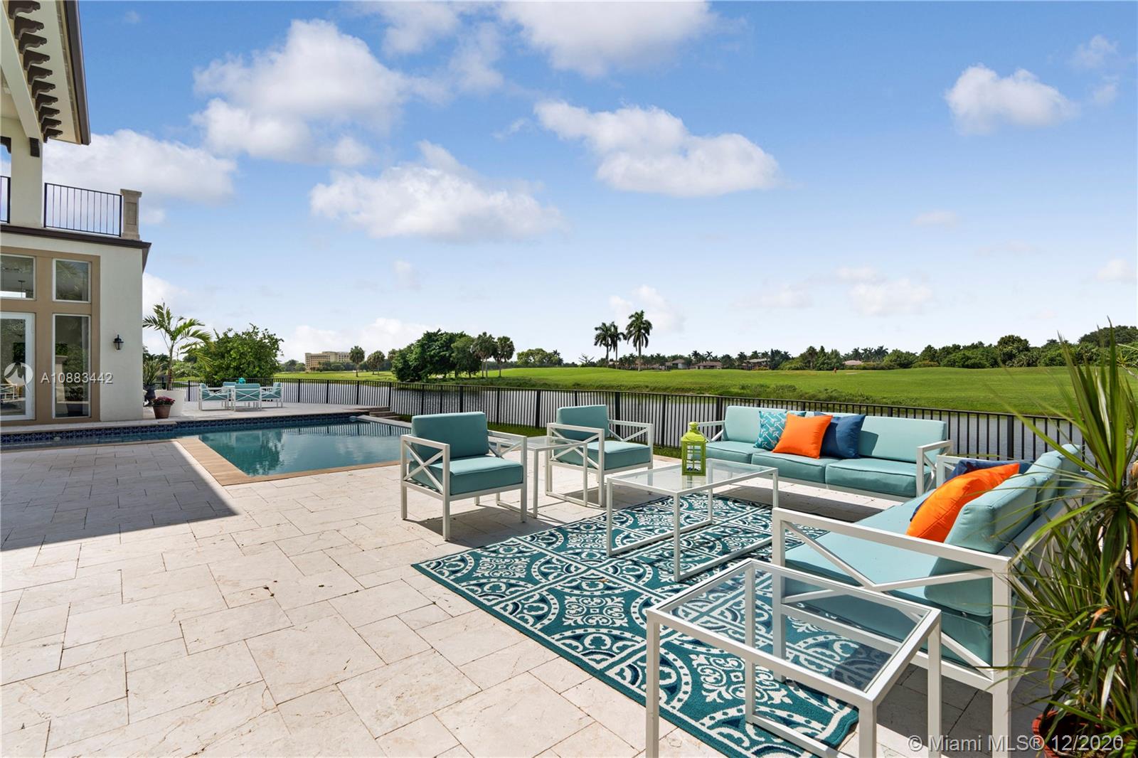 The Ideal Estate built in 2016 on arguably the best waterfront lot with open Golf Course views in the exclusive gated Heron Estates division of Heron Bay community with no rear neighbors. This unique home boasts an expansive smart layout with a grand entrance, dramatic staircase & sprawling living areas. Featuring 7 bedrooms with a large private master suite, 6 full baths and 2 half baths, separate office, additional upstairs family room, maid’s quarters with oversized laundry room and more. Enjoy panoramic views from every room with floor to ceiling impact windows and over 1,500 sq ft in outdoor terraces. Experience unmatched sunset views lounging by the infinity edge pool & outdoor kitchen area. It is truly a must-see on a half-acre peninsula-shaped lot situated on a private cul de sac.