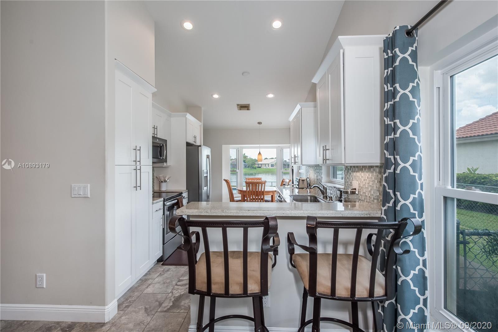Set big-ticket concerns & upgrades aside for years and check off the laundry list of Buyer's most wanted features! LAKEFRONT with diamondbrite surfaced POOL, new brick paver patio, and professionally installed 20 X 20 patio cover completed in 2018; roof replaced 2010; A/C replaced 2017; impact resistant / insulated windows installed 2009; custom kitchen and primary bathroom remodeled in 2014; wet-bar with granite counter; polished porcelain tiled living areas, laminate in bedrooms; recessed LED lighting; fenced-in yard; lake drawn sprinkler system; check, check, check! Wait, what? All of this in a guard gated community and conveniently located near I-75, A-rated schools, parks, golf, restaurants, hospital, and shopping. Check! And, a recently completed inspection is available for review.