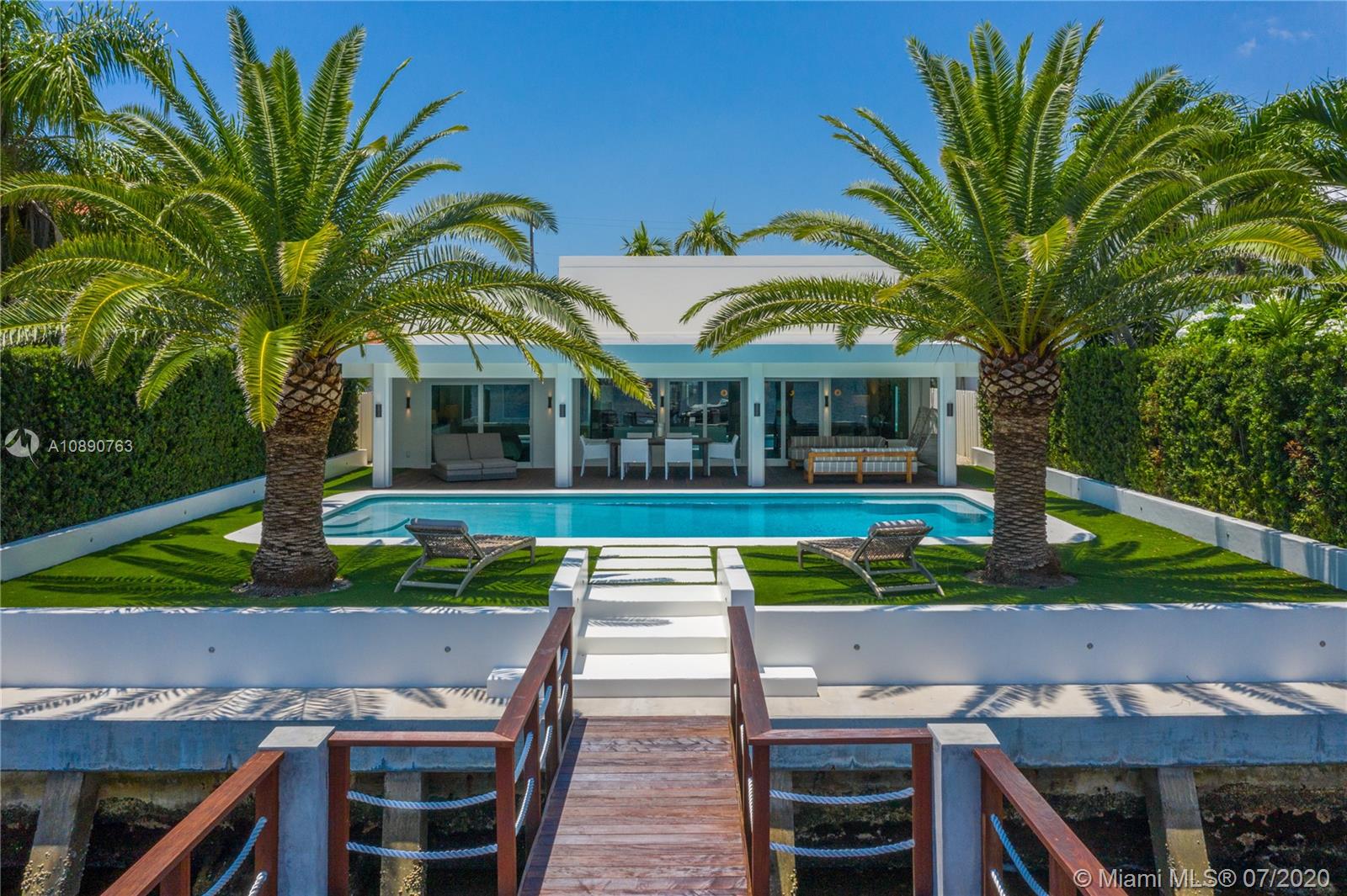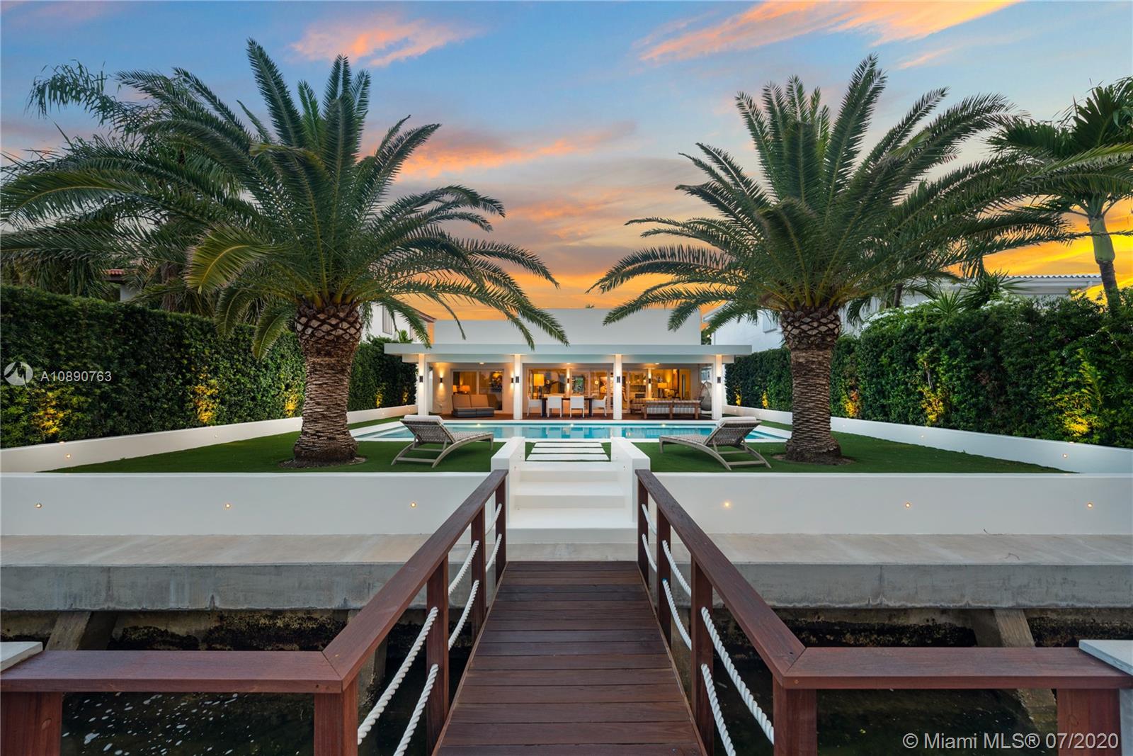 Facing Indian Creek, the most exclusive island in America, this 4 bedroom 3 baths home was completely rebuilt in 2014. It is 2700sqft of pure charm and luxury with high ceilings and the best finishes and high end fixtures. It features Wolf and SubZero, stone floors throughout, marble baths, a huge heated pool and 16,000lbs boat lift. Gated community and walking distance to the beach. Truly a rare find.