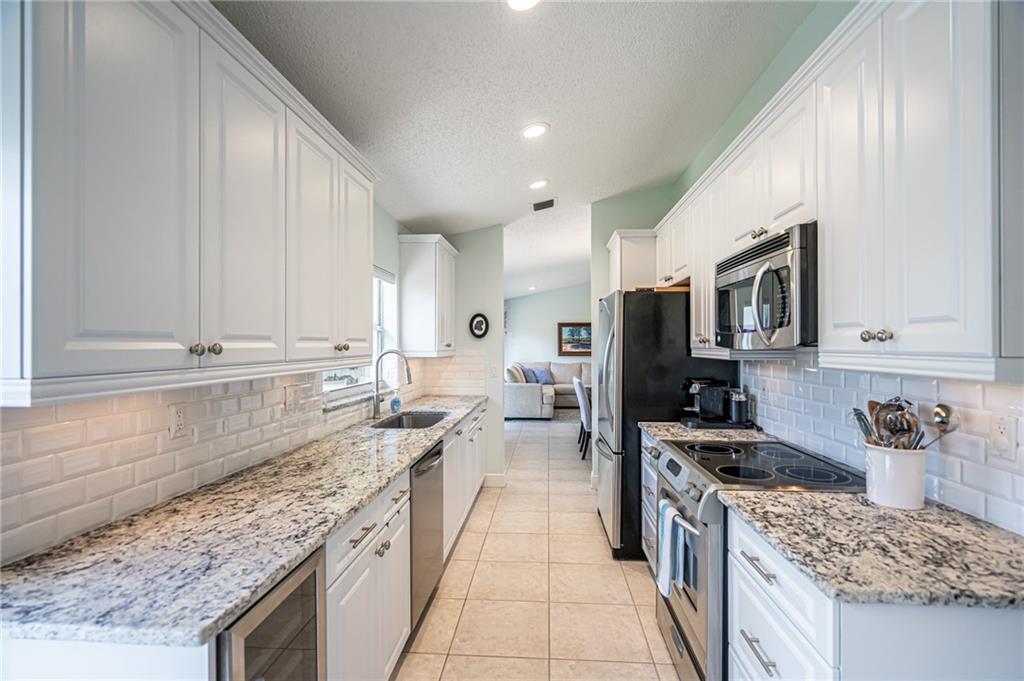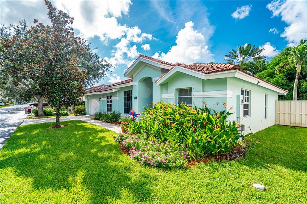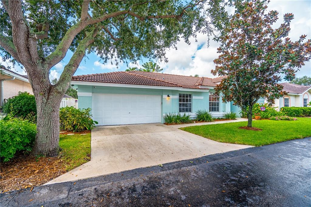 WELCOME HOME! Check out our Virtual Tour! This IMMACULATE home is located on a larger lot in a beautiful gated community. Upgraded kitchen, upgraded master bathroom, split bedroom floor plan, stainless steel appliances, granite counter tops, wine cooler, AC is 2014 with a UV light, front and back ring cameras, hurricane shutters, fully fenced larger backyard and more. It's located near all major highways with about a 10 minute ride to the beach. Thinking of buying a Single Family home and having to worry about the Lawn, the Lawn is taken care of by the HOA, both front and back! Also, there's a guard gate that is monitored 24/7, basic cable included, there's a gym, clubhouse, pool, tennis courts and a golf course right there. Bring your pickiest buyers! Hurry, this one won't last long!