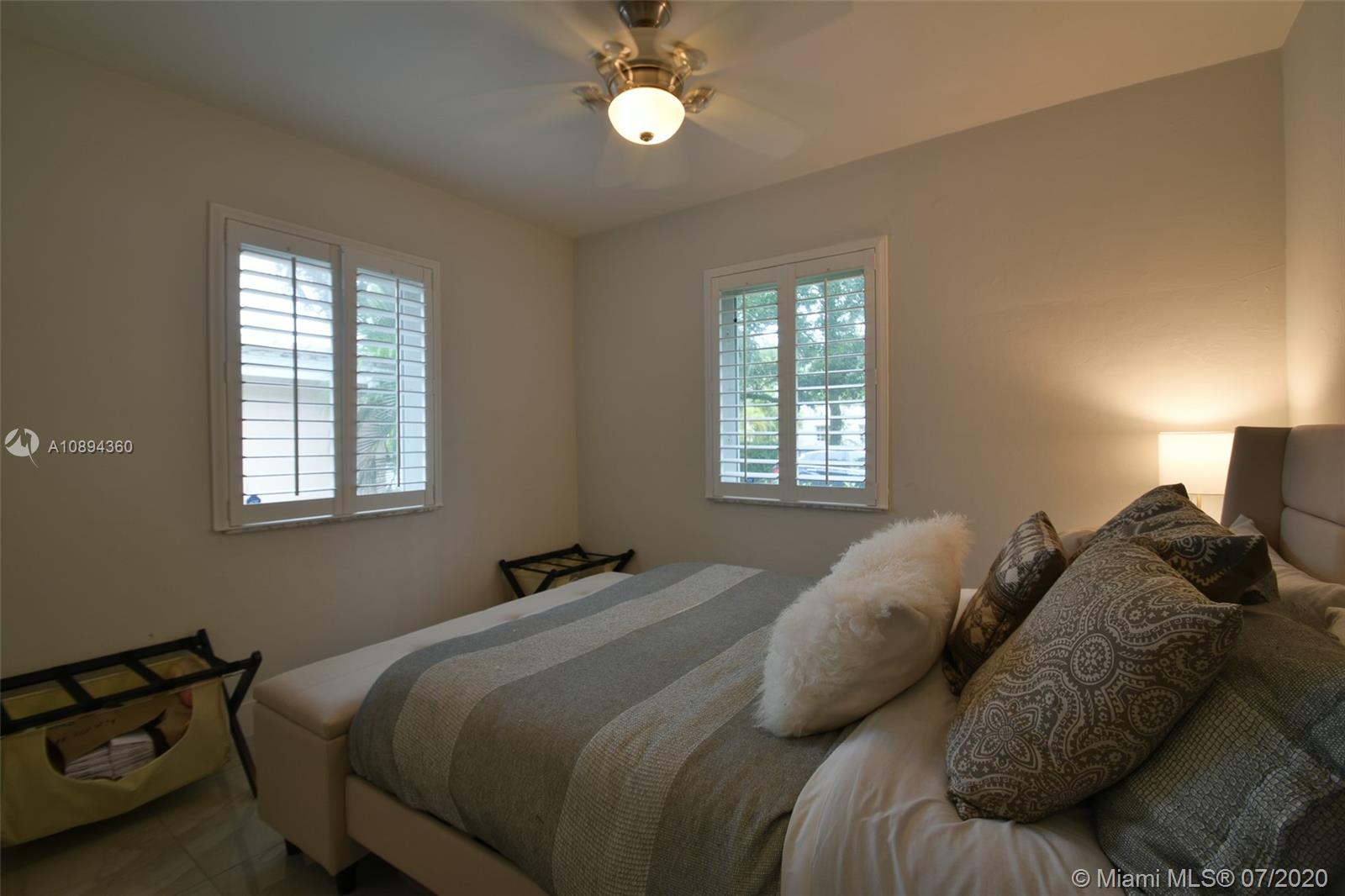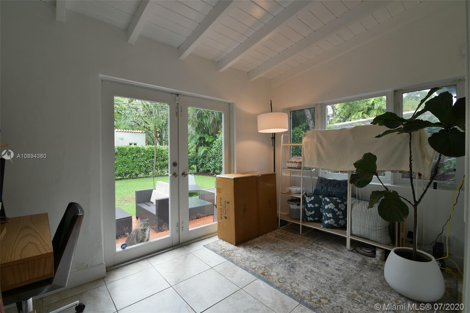 Beautiful 2 bed-1 bath single-family home in North Gables with enclosed yet luminous sunroom overlooking its spacious fenced back yard, perfect for entertaining. Upgraded bathroom, kitchen & floors, impact windows, french doors, plantation shutters, and 2017 new roof. Air-conditioned 1 car garage with Laundry closet, tiled floors & side entrance which could be used as a 3rd bedroom. Enjoy living in this peaceful and private dead-end street. Walking distance to Granada Golf Course and Miracle mile.