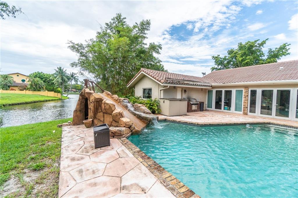 **Beautiful 4 bed 3 bath waterfront, pool home on cul de sac** 2 car garage** circular driveway**fenced yard**Impact glass all around***3 A/C units allow for energy efficiency**granite countertops and SS appliances** generator hook up** rock waterfall and slide in the pool area**private sitting area/fire pit under the natural shade of the trees** the air-conditioned Florida room is being used as an office/game room** One of the four bedrooms is being used as a study can be easily converted back** schedule your showing today.