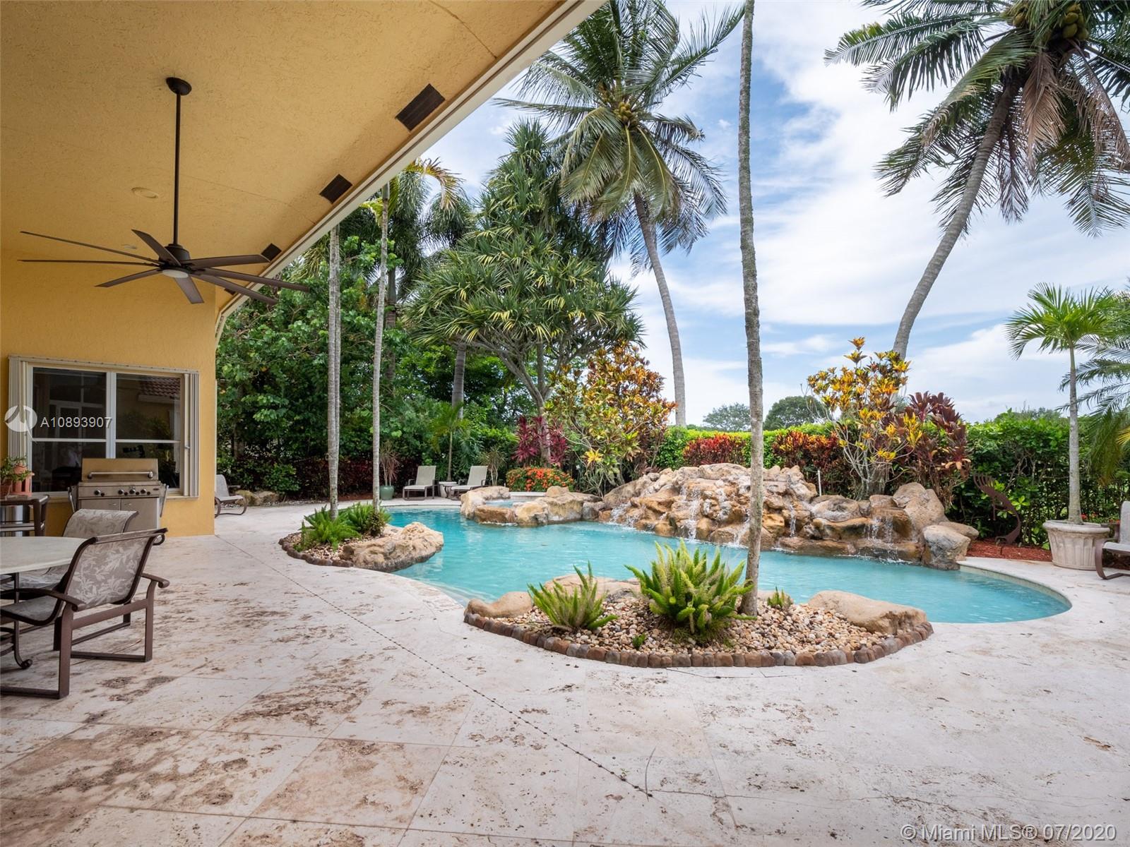 This elegant custom home sits majestically in the gated community of Provence at Weston Hills Country club. Spacious, distinctive Issa designed home. Backyard oasis with waterfall pool and travertine patio, fully fenced and privacy landscaped. Marble and wood flooring flow throughout. Decorative Fireplace wood burning in a formal living room. Gourmet kitchen with Miele Stainless steel appliances, double oven, center island, granite countertops with large walk-in pantry. Owners suite with wood flooring, tray ceilings, and private den for relaxation or second office. 4.5 renovated baths. Enjoy four additional bedrooms plus a playroom/billiard room with a wet bar and an office.