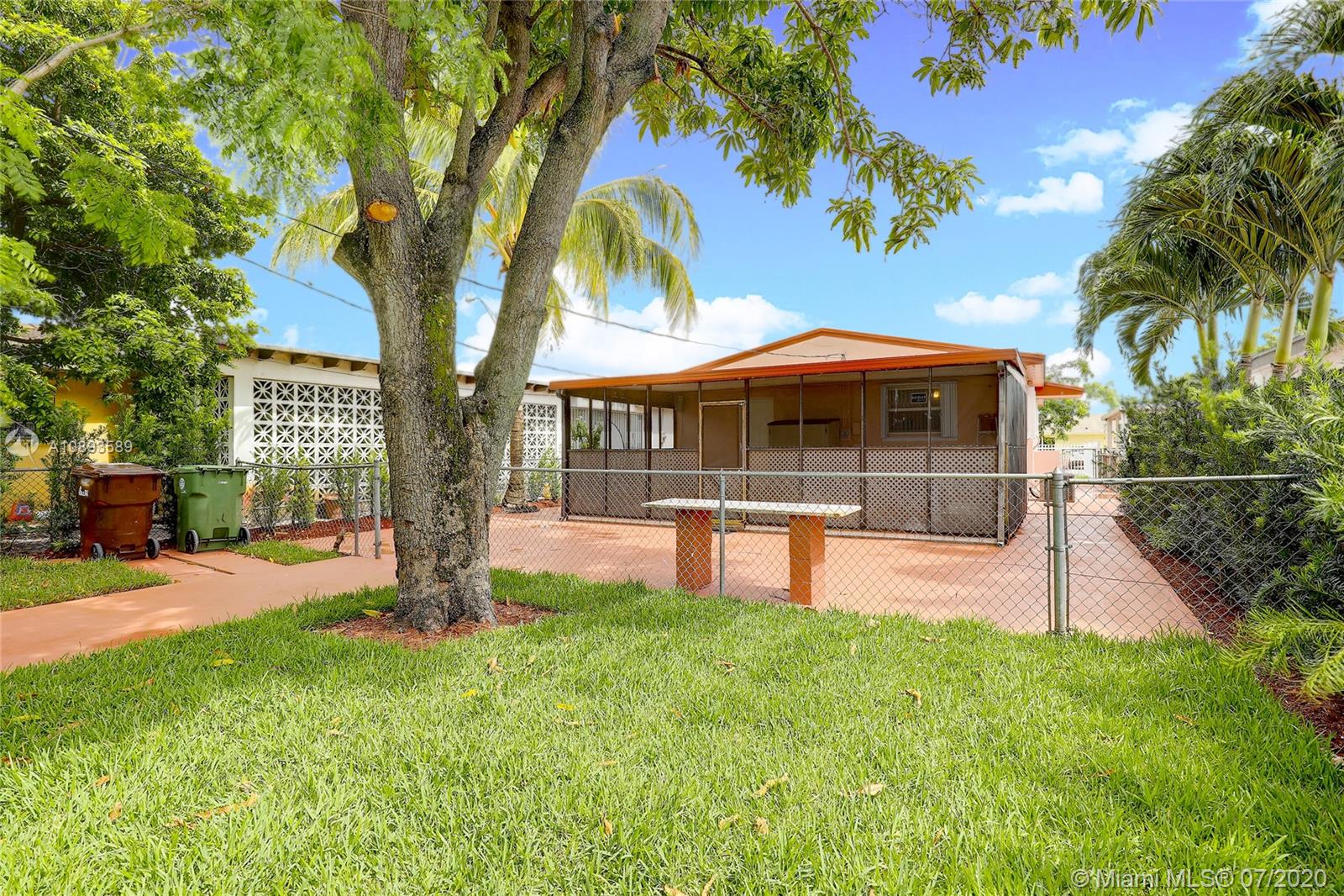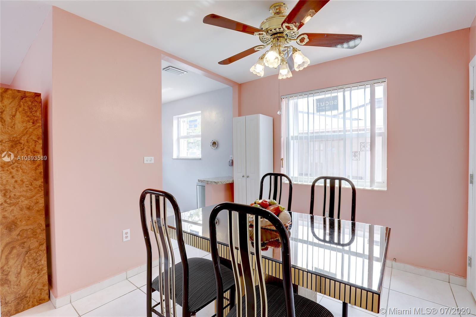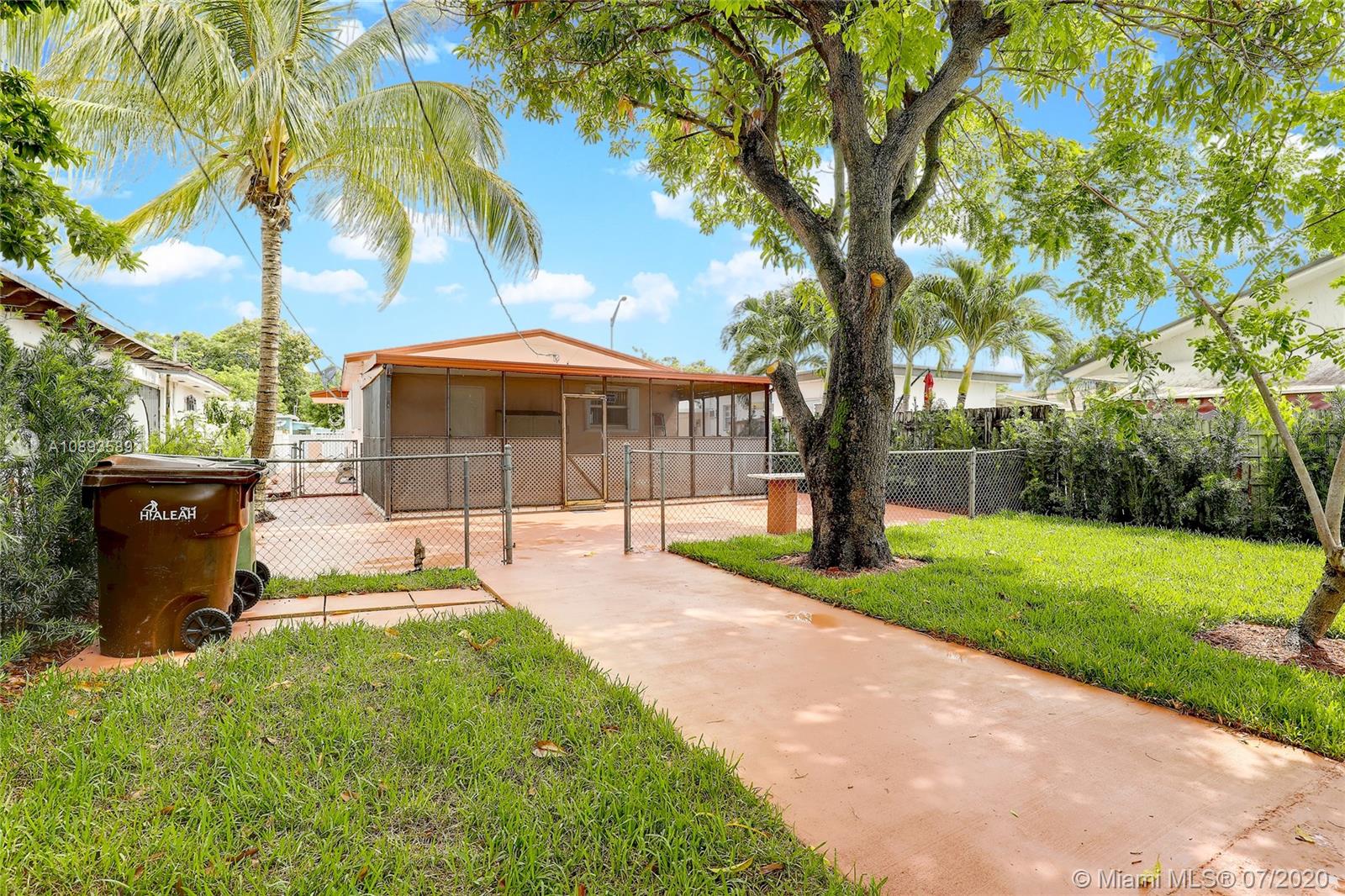 Great home in Hialeah! Central location close to shopping centers, highways, and MIA. This home features a completely updated kitchen with granite countertops, new stainless appliances, and custom cabinets. Brand new windows, accordion shutters, and freshly painted. Terrazzo floors in bedrooms, and throughout home. 3 spacious bedrooms and partially updated bathroom. Home also features oversized laundry room with storage and a new washer and dryer. Large covered patio overlooks spacious backyard with lush grass and mature mango, avocado, and other fruit trees. Great floorplan to make this your own!