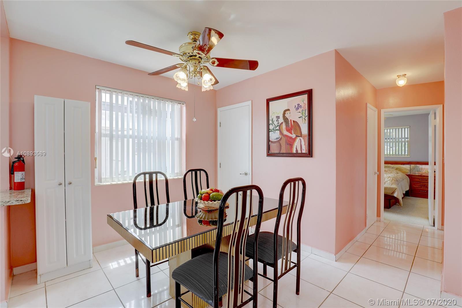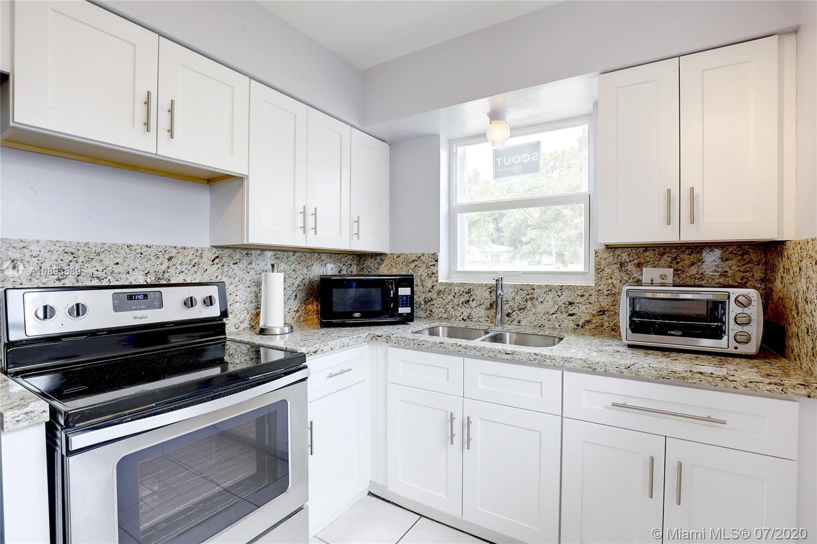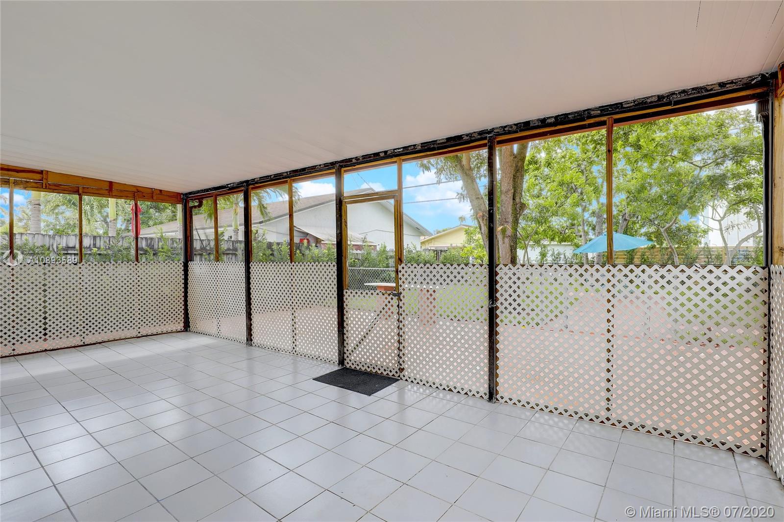 Great home in Hialeah! Central location close to shopping centers, highways, and MIA. This home features a completely updated kitchen with granite countertops, new stainless appliances, and custom cabinets. Brand new windows, accordion shutters, and freshly painted. Terrazzo floors in bedrooms, and throughout home. 3 spacious bedrooms and partially updated bathroom. Home also features oversized laundry room with storage and a new washer and dryer. Large covered patio overlooks spacious backyard with lush grass and mature mango, avocado, and other fruit trees. Great floorplan to make this your own!
