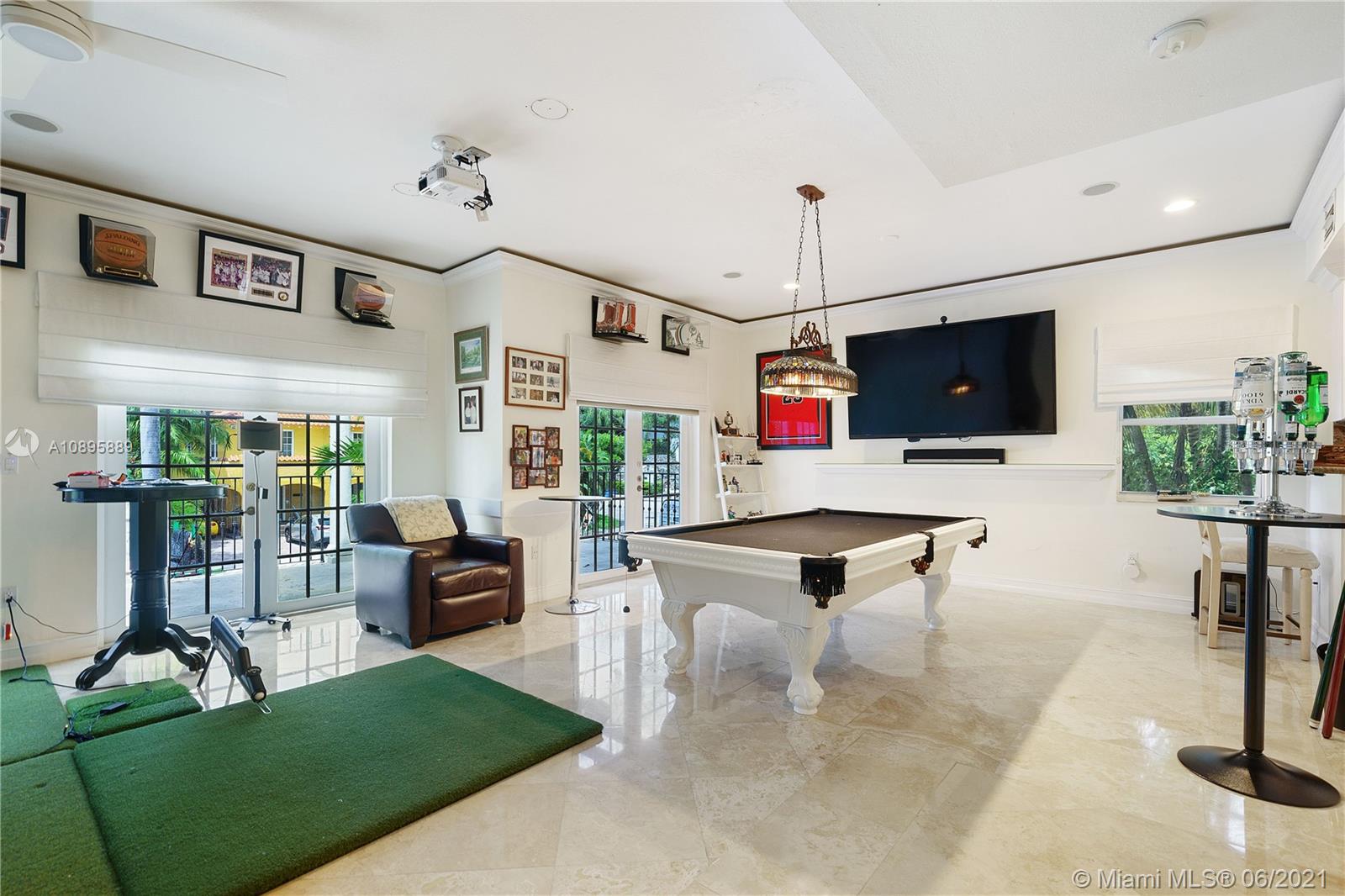Luxurious tri-Level residence in North Coconut Grove near Vizcaya.Move-in condition. Complete smart home with new solar roof panels-Generac. Freshly painted. Brand new Metal roof (2020).Marble floors throughout, all new remodeled kitchen with stainless steel appliances, gas gourmet cooktop, quartz counter top, impact windows & doors, whole house generator. 1st level 3-car garage, storage room can be wine cellar, 1/1 maids room off 1st level or cabana complete, huge covered terrace & pool, sprinkler system. 2nd level,20ft high ceilings,(2)foyers, living room, dining and family room open to kitchen, media room with full bath, wine coolers & (3) on-tap beer dispenser, pool table, theater room & more. 3rd level: Master suite with huge closets & balcony. 3 additional bedrooms/2 bathrooms.