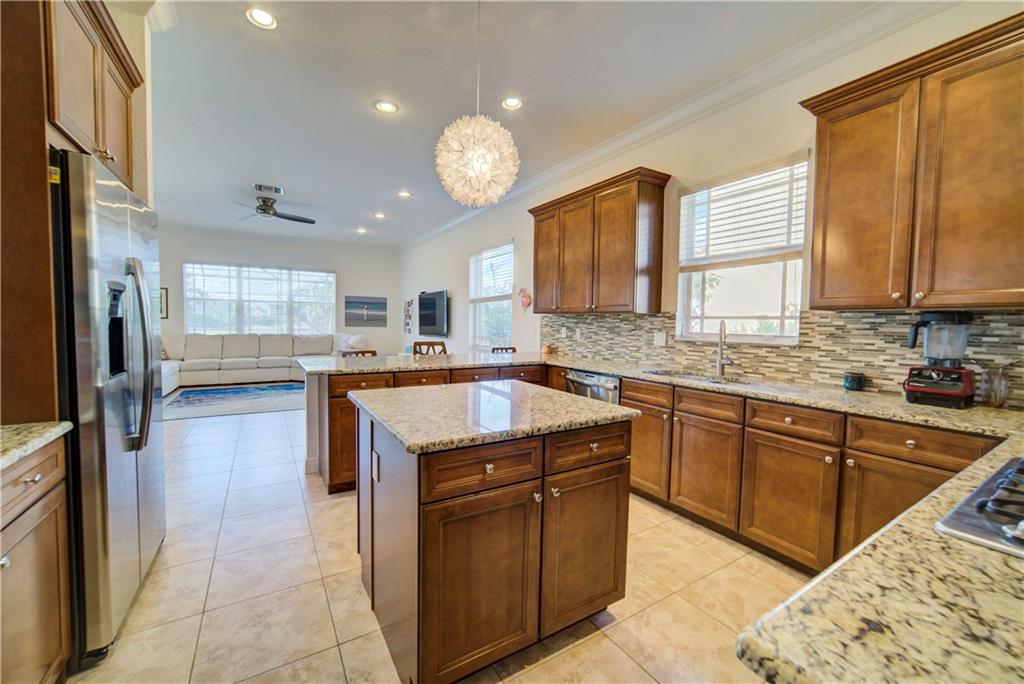 $90,000 In Upgrades! 5 Beds Plus Huge Loft, 4 Baths Waterfront Pool Home! 1 Full Bed & Cabana Bath Downstairs, 4 Beds + Loft Upstairs, Screened-In Patio, Heated Salt Water Pool w/Travertine Deck & Fenced Yard, Built-In Electric Fireplace, Updated Kitchen w/Island, Granite Counters, Stainless Steel Appliances w/Double Oven, Gas Stove, Impact Windows & Doors, Crown Molding, Spacious Formal Dining Room, Wood Floors, Wrought Iron Railing On Stairs, Huge Master Bed w/Sitting Area, Separate Tub & Shower, Dual Sinks, Granite Counters, Walk-In Closets With Built-Ins, Formal Dining, Full Bed & On-Suite Bath Upstairs, A-Schools, Clubhouse w/Resort Style Amenities Including Heated Pool, Spa, Fitness Center, Basketball Courts, Tennis Courts, & More, On-Site Management, & 24-Hour Guard Gated Community.