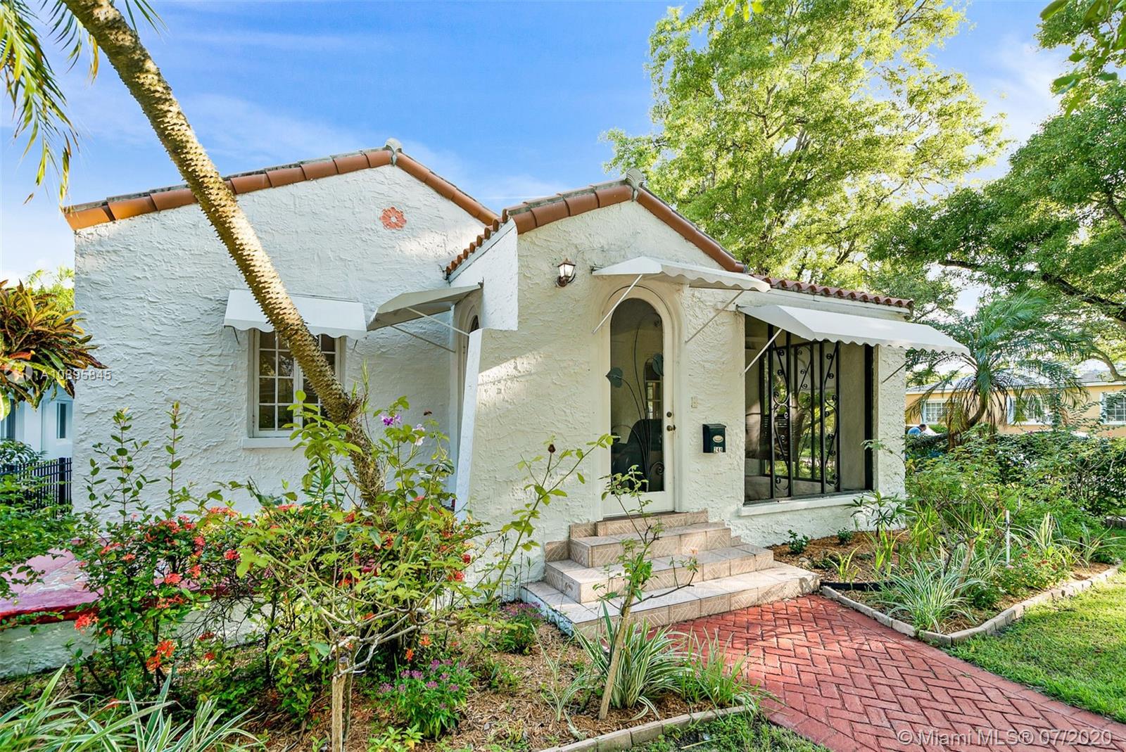 On a quiet tree-lined street in the heart of Coral Gables, you’ll find this charming 1925 Old Spanish. This architectural gem is located in an ideal central location, walking distance to shops & cafes at Merrick Park & Miracle Mile. The classic design features a formal living room, anchored by an elegant fireplace, that leads to the formal dining room. Timeless features include original hardwood floors, rounded archways & a lovely screened-in front porch with original tilework & ironwork. Enjoy a spacious & light-filled kitchen. Plenty of storage w/ large laundry room + one car garage. Newer roof (2010). Imagine sitting on the relaxing front porch enjoying the breeze... Come live a quiet, yet urban lifestyle in the heart of “The City Beautiful”.
