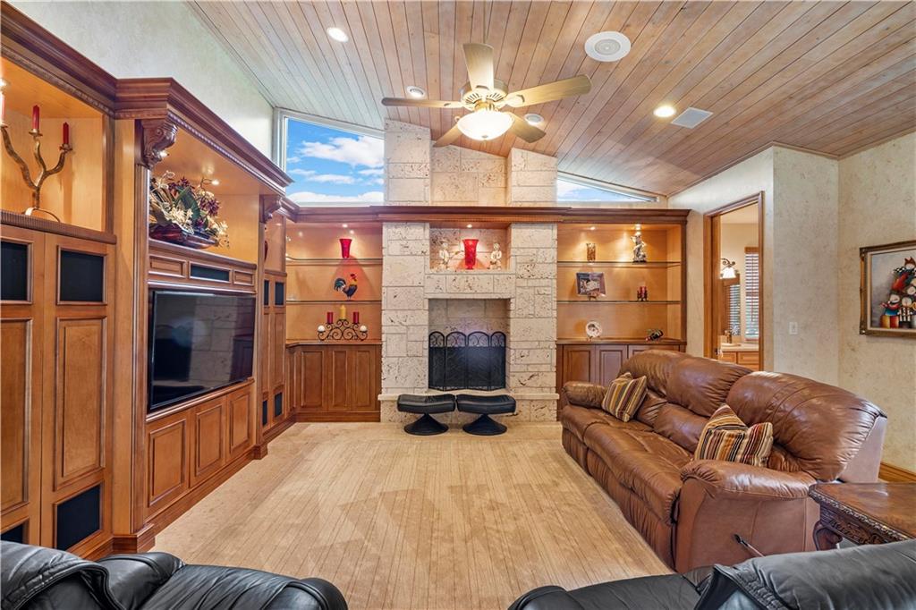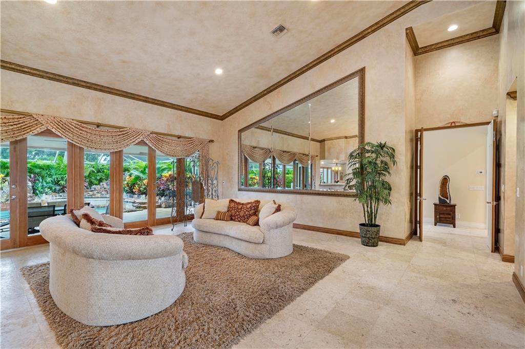 Sprawling Cypress Head home with large circular driveway and separate side driveway with 3 car garage on over 1 acre lot. Full house generator installed 2019 with 1000 gallon propane tank. Accordion Shutters. Double door entry into this tastefully decorated 4 bedroom home plus office with 3 full bathrooms and 2 half baths. Home offers formal dining and living room, wet bar, large family room, chefs kitchen with sub zero refrigerator, center cooking island with granite counters and wood cabinets. Enjoy cuddling in front of a wood burning fireplace. Marble floors throughout and hard wood floors in bedrooms. Lush landscaping with waterfall rock tropical pool and spa.