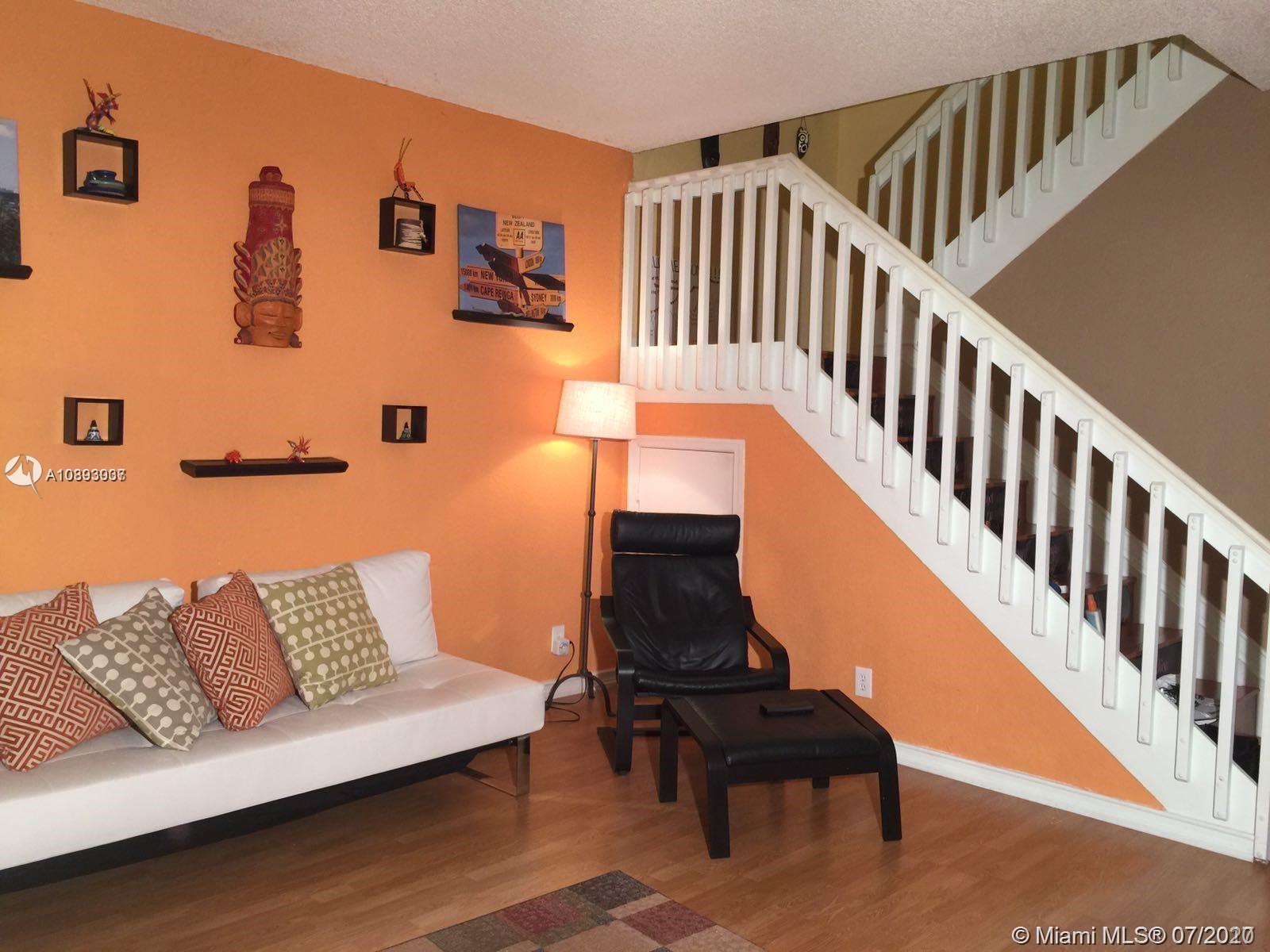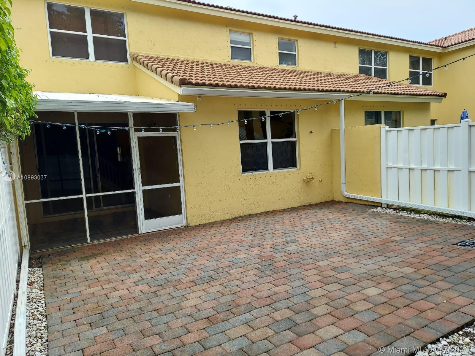 Beautiful townhouse in West Pembroke Pines. 3 bedrooms 2.5 bathrooms with converted garage into additional room, office or STUDY. Huge walk in closet. Beautiful, private, opened fenced patio and an additional covered screened patio. Laminate floors throughout. Very roomy. Lots of closets and ample space for additional storage. Excellent schools. High School is West Broward, one of the few communities south of Pines with this excellent high school. Walking to shopping plaza and close to all shopping. Only 5 min to I-75. (dining room table not included in the sale)