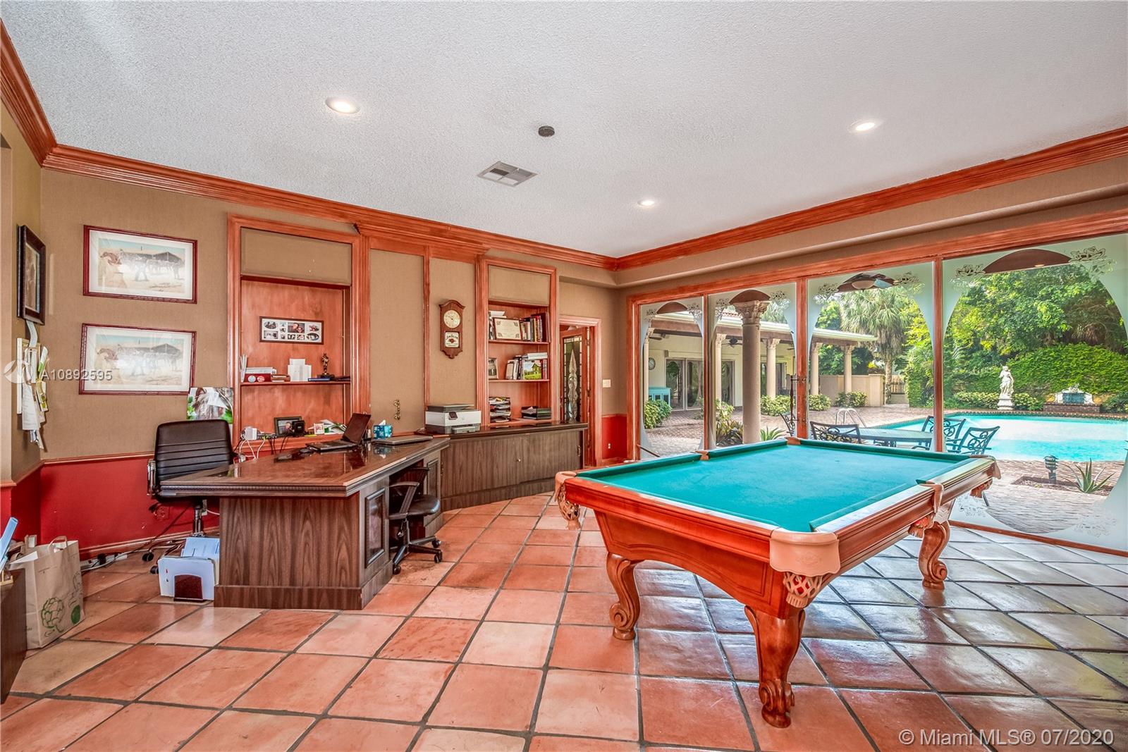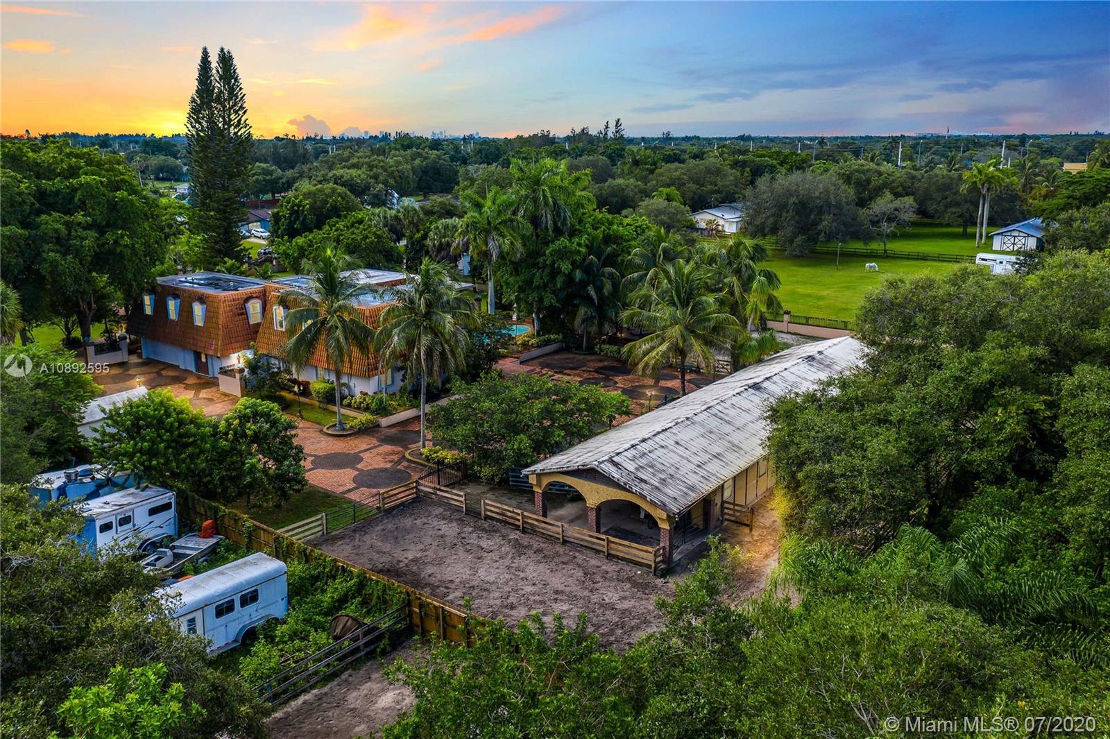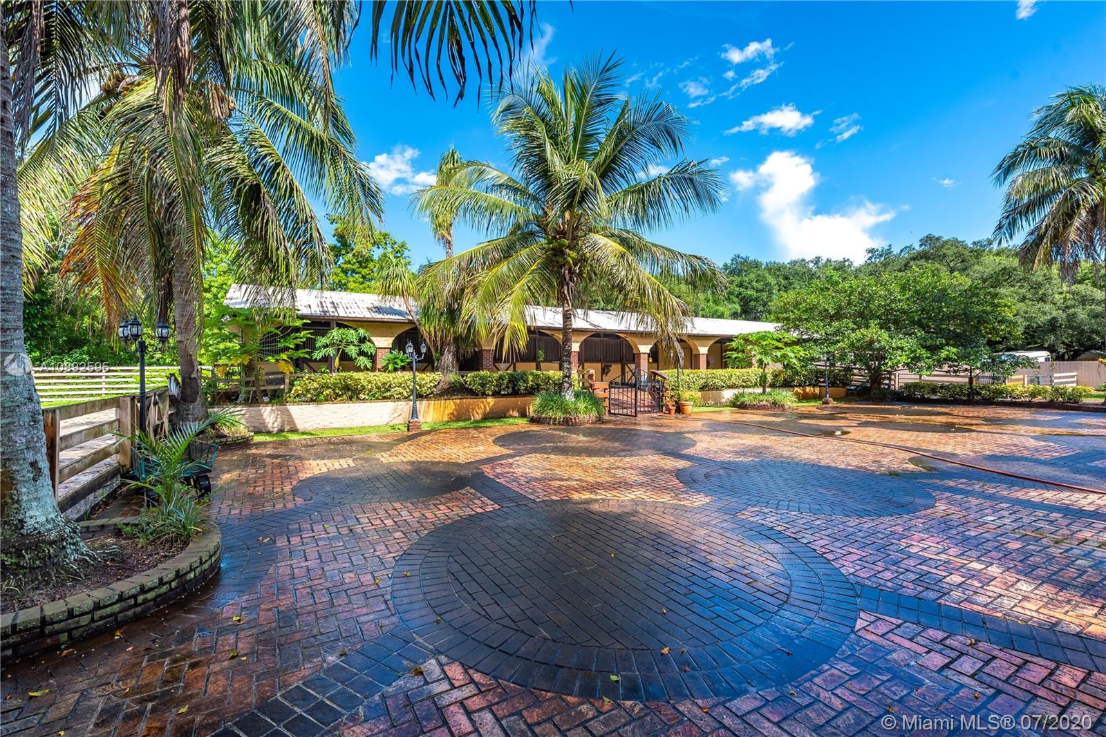 Significant drop in price! Beautiful Davie estate with so much to offer! This main house and guest house features 6 bedrooms and 5 1/2 baths, each with its own master suite. Beyond the beautiful salt system pool, there's a private trellis covered jacuzzi, BBQ pavilion with built-in summer kitchen, 5 stables with tack-room under a hurricane resistant metal roof and private gate access from the property to Tree Tops Park. Temperature controlled wine room, 3-car garage, hurricane impact windows on second floor and hurricane protection for all windows on first floor. Over 1.5 acres, back up generator, fireplace, and great Davie schools as well.